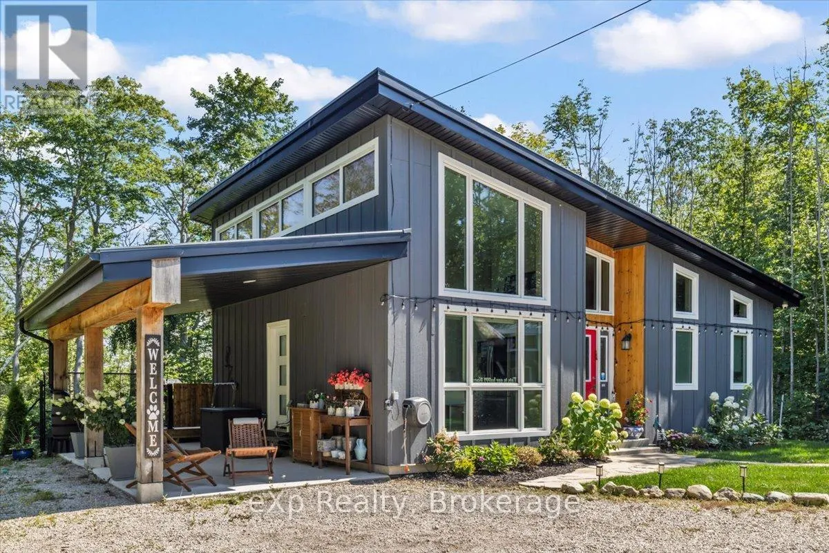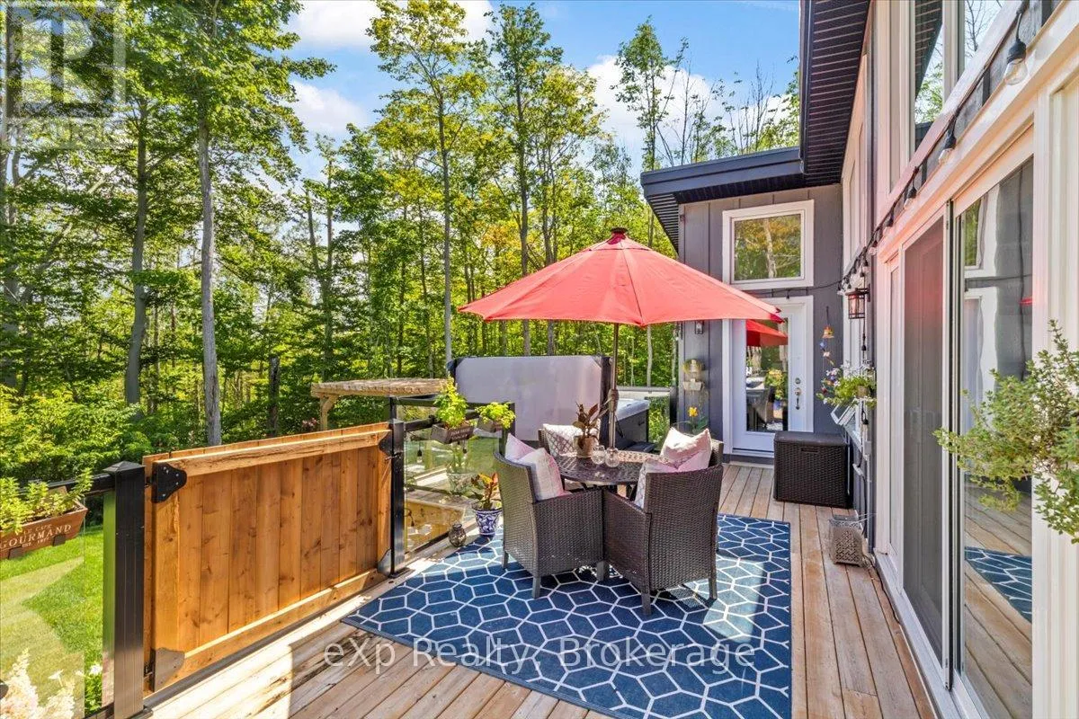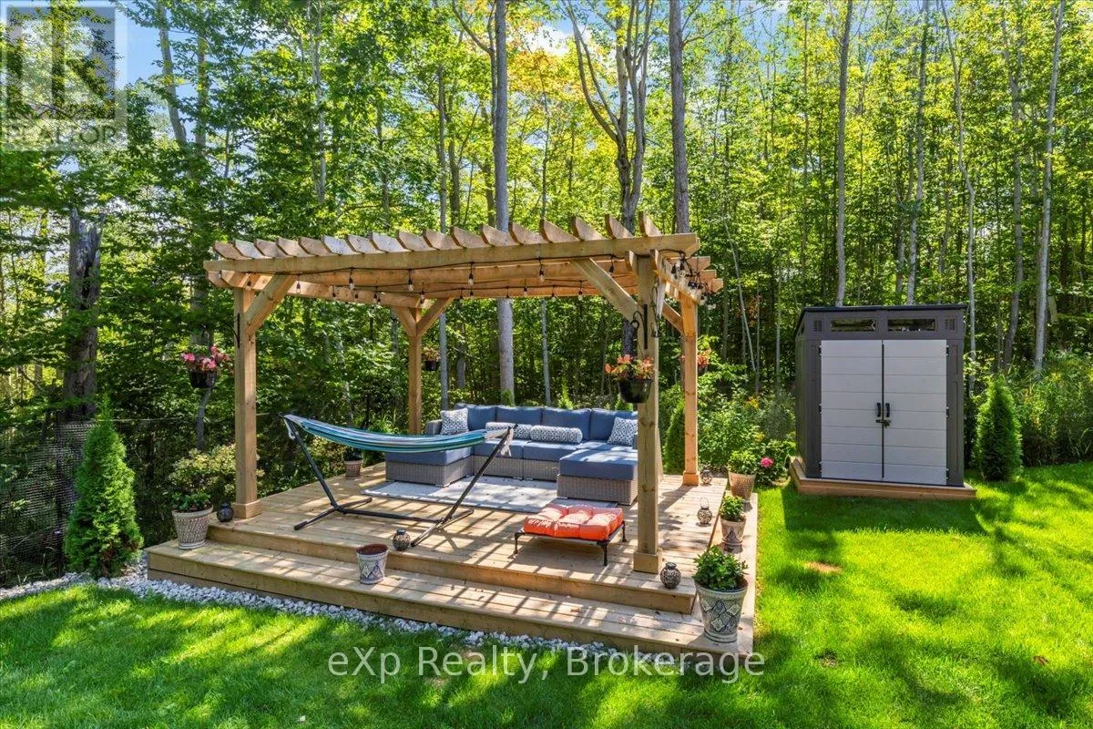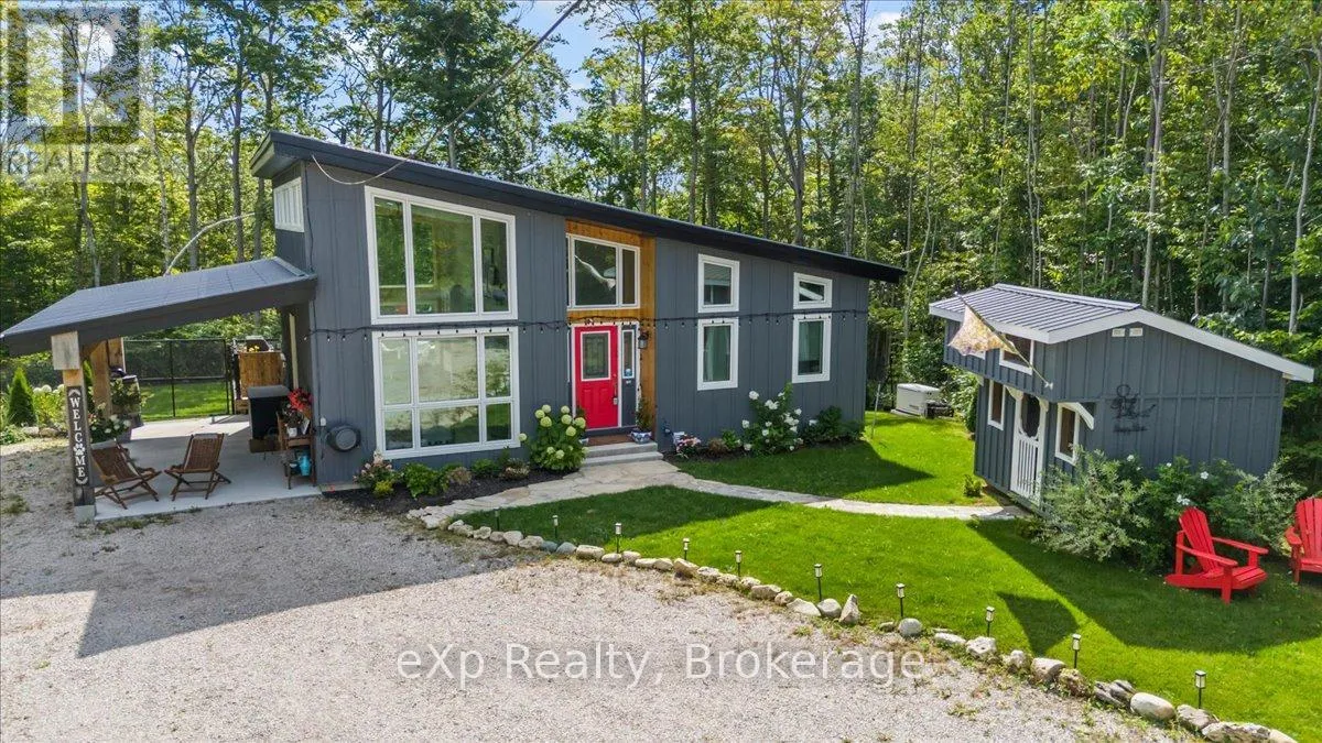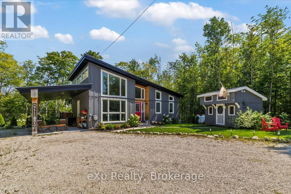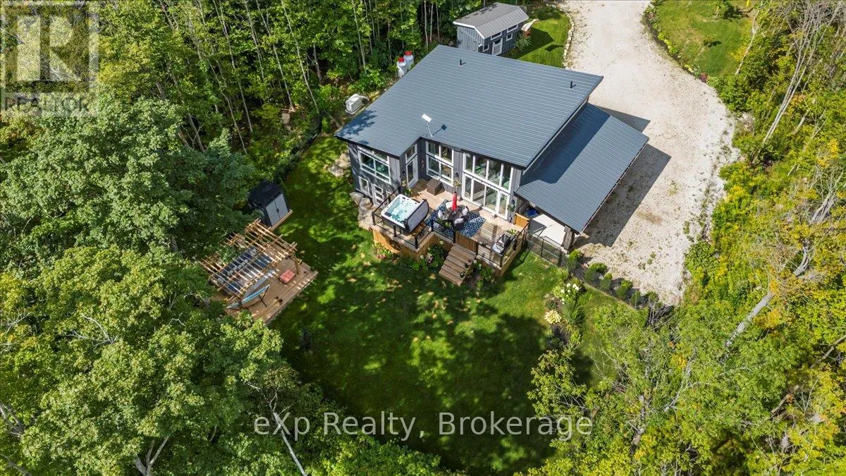 Cross Streets: Hwy 6 and Miller Lake. ** Directions: From Wiarton follow Hwy 6 North to Miller Lake Road. Turn right onto Miller Lake Road. Turn-Key Perfection on a Private Country Half-Acre Oasis. Move right in and start enjoying this meticulously maintained property, offered fully furnished with high-end finishes throughout. Nestled on a serene -acre lot, this bungalow with a walk out basement is designed to blend modern comfort with natural beauty. Step inside to a spacious 2-bedroom, 2-bathroom layout, with the bonus of a third bathroom awaiting your final touches a perfect opportunity to personalize. The craftsmanship is evident in every detail, from the custom cabinetry crafted from solid maple to the hand-built maple staircase that serves as a stunning centerpiece. A wall of windows floods the living spaces with natural daylight, creating a warm and inviting atmosphere year-round.The outdoor spaces are just as impressive. Your very own backyard oasis features a deck with hot tub overlooking a backdrop of peaceful forest. Relax under the pergola, curl up in the hammock, or entertain with ease using the stylish outdoor furniture included with the home. For hobbyists and gardeners, a 12' x 8' bunkie offers convenient storage for lawn and garden tools, while the property's surrounding perennial beds bring color and charm to every season.This home is the complete package turn-key, thoughtfully finished, and ready for you to enjoy. Whether as a year-round residence or private getaway, it offers the perfect blend of style, comfort, and tranquility. Additional information highlighting the unique features of this property can be found in the attached documents. Contact your REALTOR today. (id:27476)