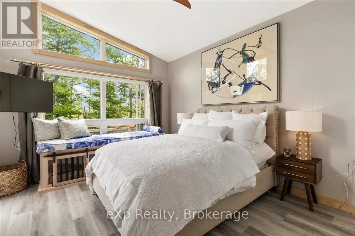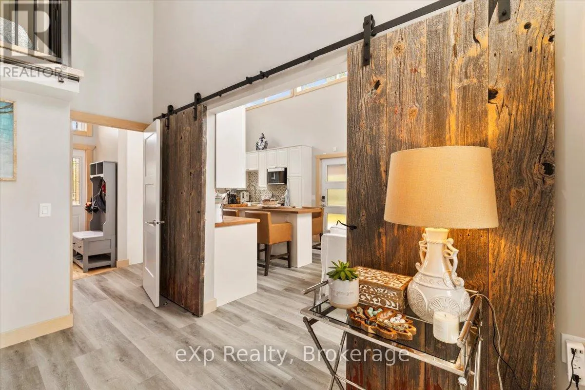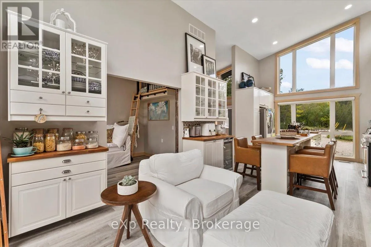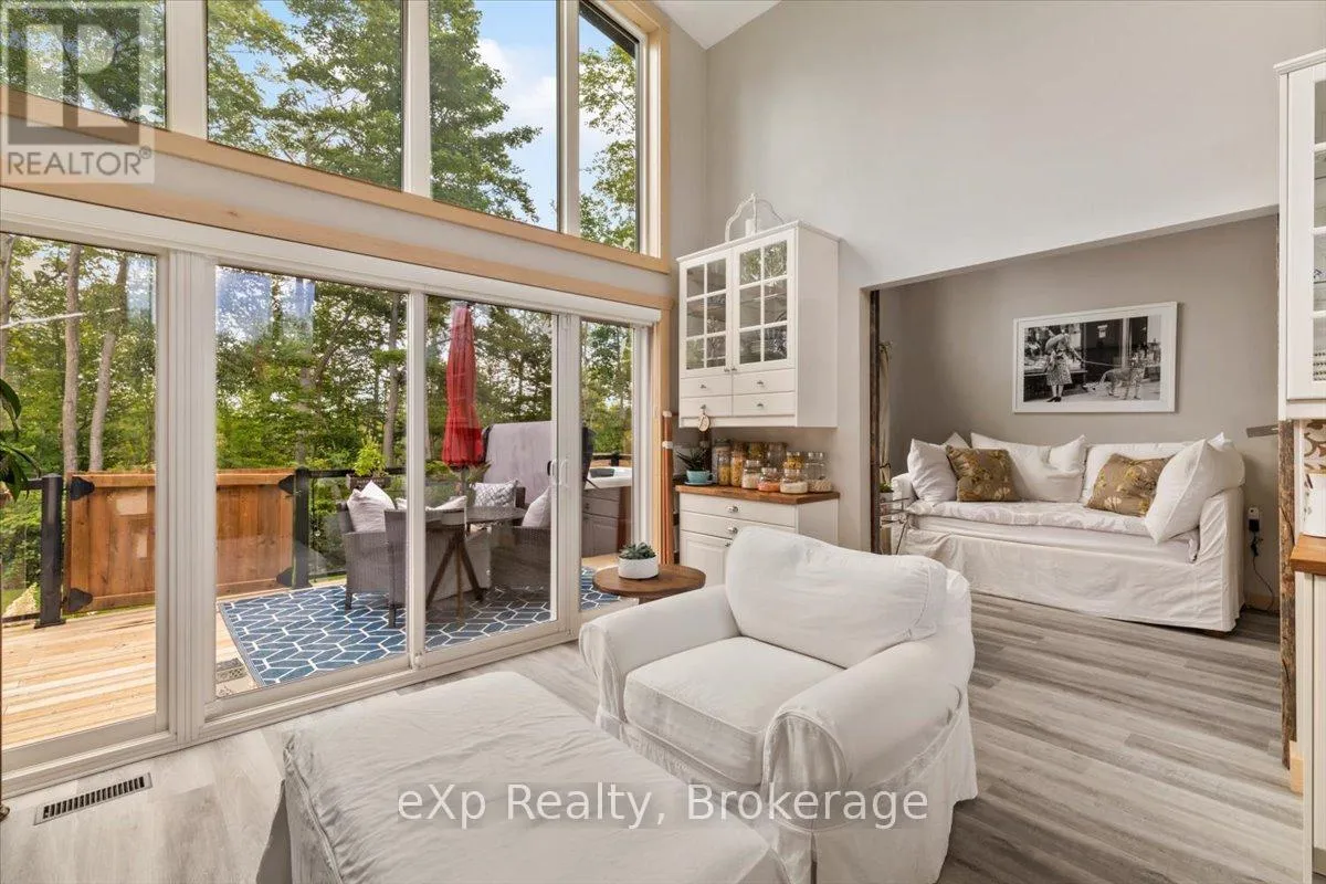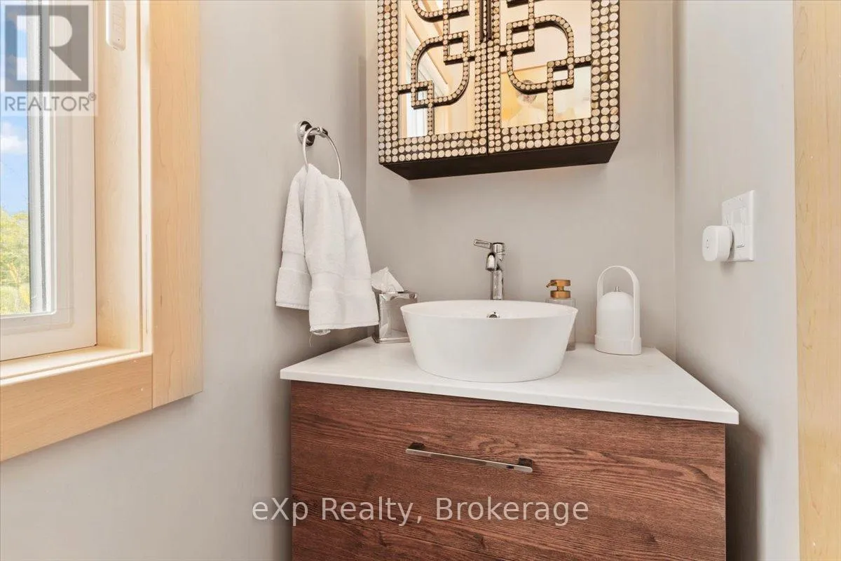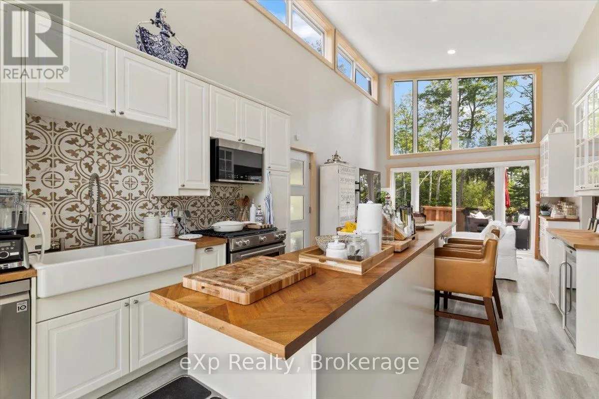 Cross Streets: Hwy 6 and Miller Lake. ** Directions: From Wiarton follow Hwy 6 North to Miller Lake Road. Turn right onto Miller Lake Road. Turn-Key Perfection on a Private Country Half-Acre Oasis. Move right in and start enjoying this meticulously maintained property, offered fully furnished with high-end finishes throughout. Nestled on a serene -acre lot, this bungalow with a walk out basement is designed to blend modern comfort with natural beauty. Step inside to a spacious 2-bedroom, 2-bathroom layout, with the bonus of a third bathroom awaiting your final touches a perfect opportunity to personalize. The craftsmanship is evident in every detail, from the custom cabinetry crafted from solid maple to the hand-built maple staircase that serves as a stunning centerpiece. A wall of windows floods the living spaces with natural daylight, creating a warm and inviting atmosphere year-round.The outdoor spaces are just as impressive. Your very own backyard oasis features a deck with hot tub overlooking a backdrop of peaceful forest. Relax under the pergola, curl up in the hammock, or entertain with ease using the stylish outdoor furniture included with the home. For hobbyists and gardeners, a 12' x 8' bunkie offers convenient storage for lawn and garden tools, while the property's surrounding perennial beds bring color and charm to every season.This home is the complete package turn-key, thoughtfully finished, and ready for you to enjoy. Whether as a year-round residence or private getaway, it offers the perfect blend of style, comfort, and tranquility. Additional information highlighting the unique features of this property can be found in the attached documents. Contact your REALTOR today. (id:27476)