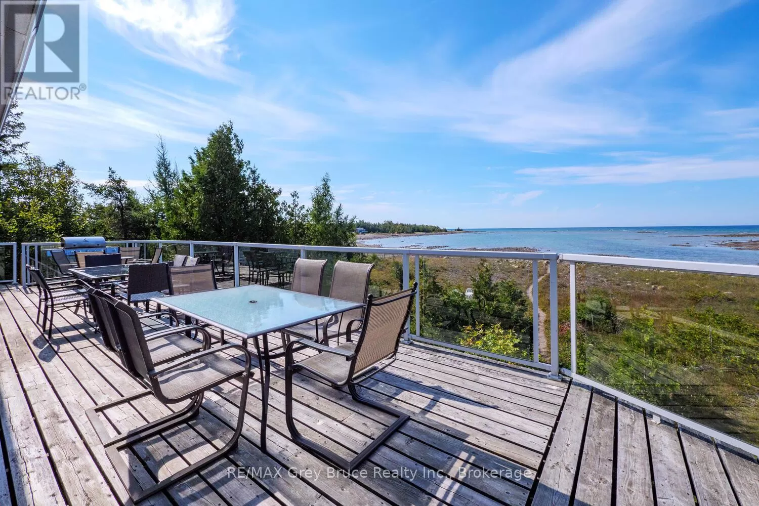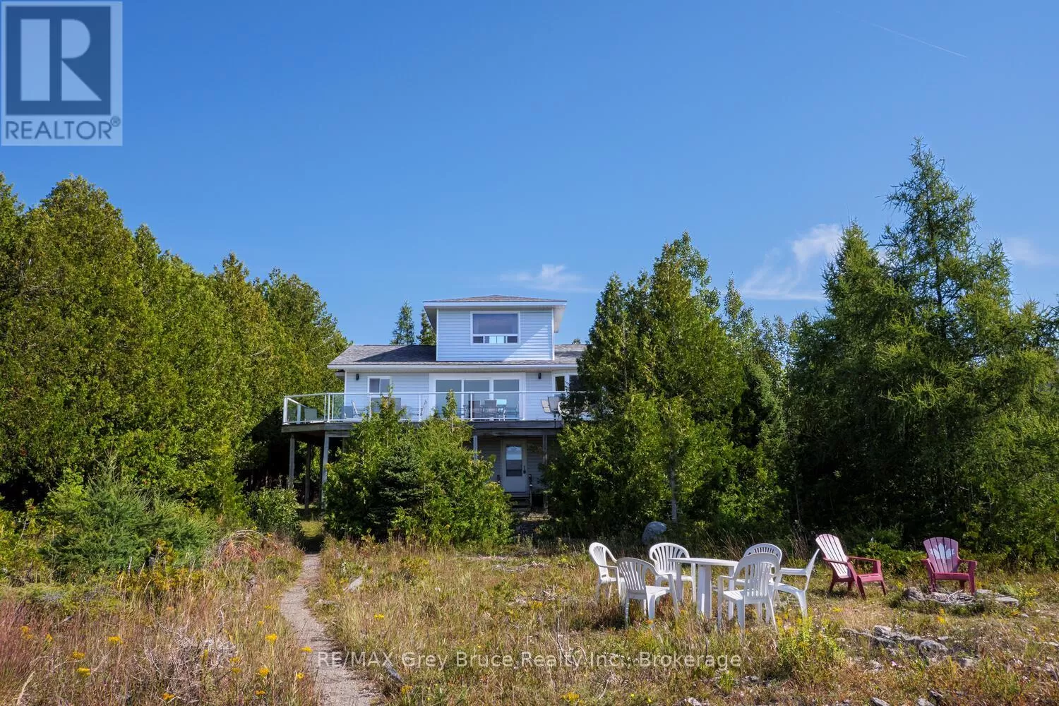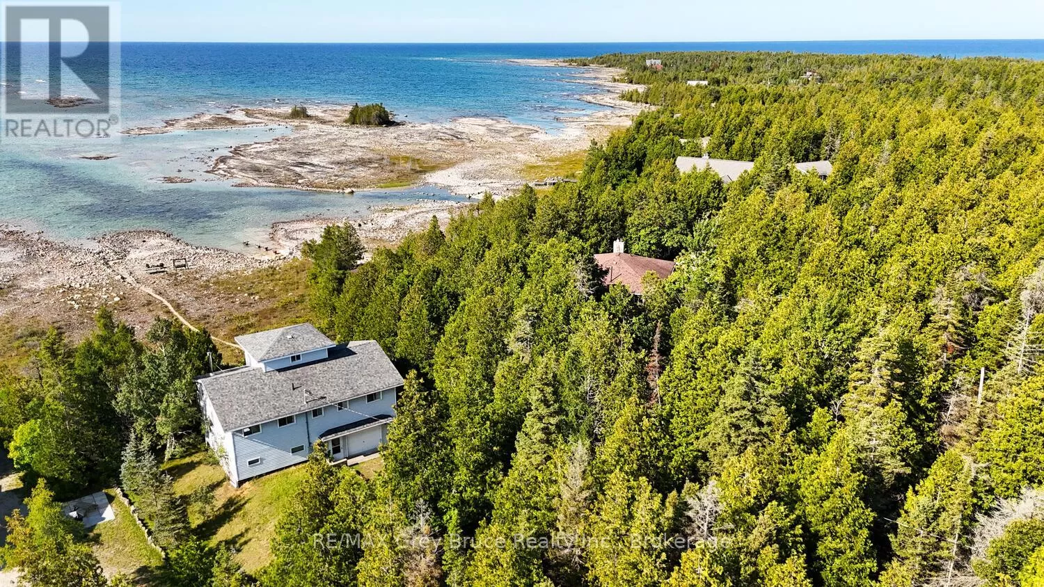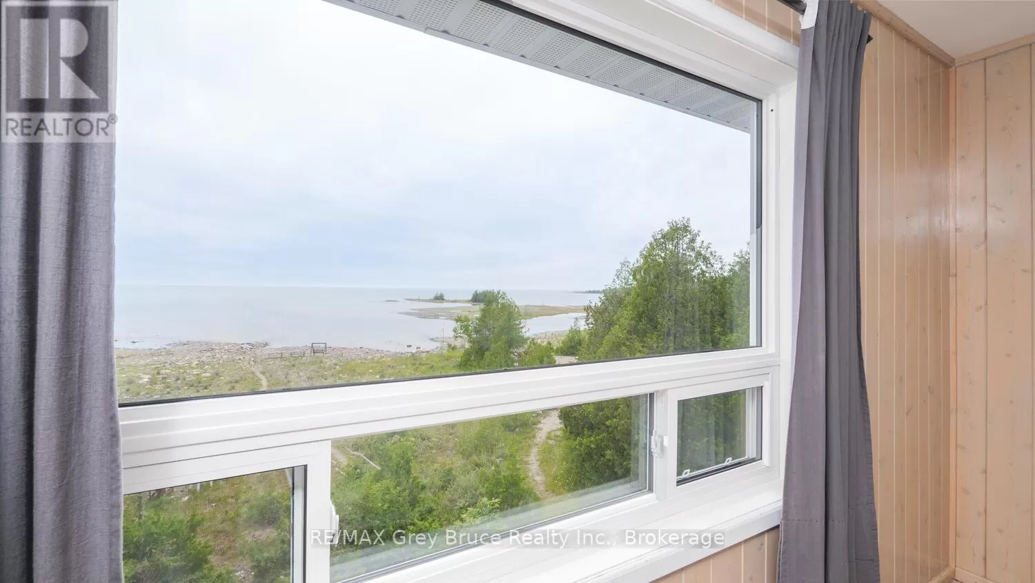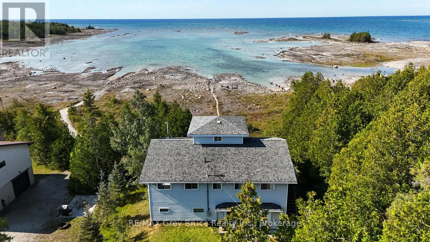 Cross Streets: Johnson Harbour Rd & Dorcas Bay Rd. ** Directions: Head North on Hwy 6 (ON-6). Turn Left onto Johnsons Harbour Road. Turn Right onto Dorcas Bay Road. Destination will be on your Left, look for signs. Oh my, the ocean-like views steal the show in this waterfront home on Dorcas Bay. As you step inside you'll be greeted by the open concept kitchen, dining, and living area creating the perfect place for entertaining family and friends. Expansive windows provide an abundance of natural light that floods the living space. A 14-foot patio door, added recently, leads to a generously sized deck, featuring glass panels and rails which were added in the last few years. You'll never tire from the ever changing, uninterrupted ocean-like views of Lake Huron from both inside and outside of this home. With 4 generously sized bedrooms and 2 bathrooms there is ample space for everyone. The primary bedroom boasts a renovated ensuite bathroom and the main bathroom has also been upgraded. On the upper floor you'll find the 4th bedroom space with a recently installed window providing more stunning water views. The home has seen a number of additional upgrades in the last few years including: new flooring throughout, LED lighting inside and out, new pex plumbing, new hot water tank and UV, and a freshened kitchen. The walk-out lower level currently features a utility area, laundry area and a roughed in bathroom, and provides an open canvas to design and add more living space if desired, while the built-in garage provides oodles of storage. The shoreline with its gradual water entry is ideal for families with smaller children to enjoy water activities. This home comes turnkey with furniture, appliances, pots/pans/cutlery/dishes and more. Conveniently located near Tobermory, Singing Sands Beach, and the Grotto, you and your guests have access to an array of recreational activities, shops and restaurants. This property is currently licensed for STA stays with a proven rental income. (id:27476)
