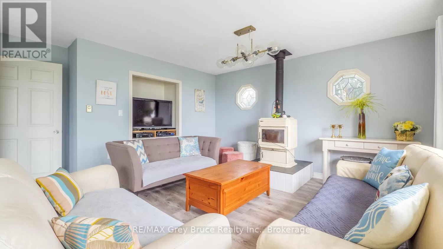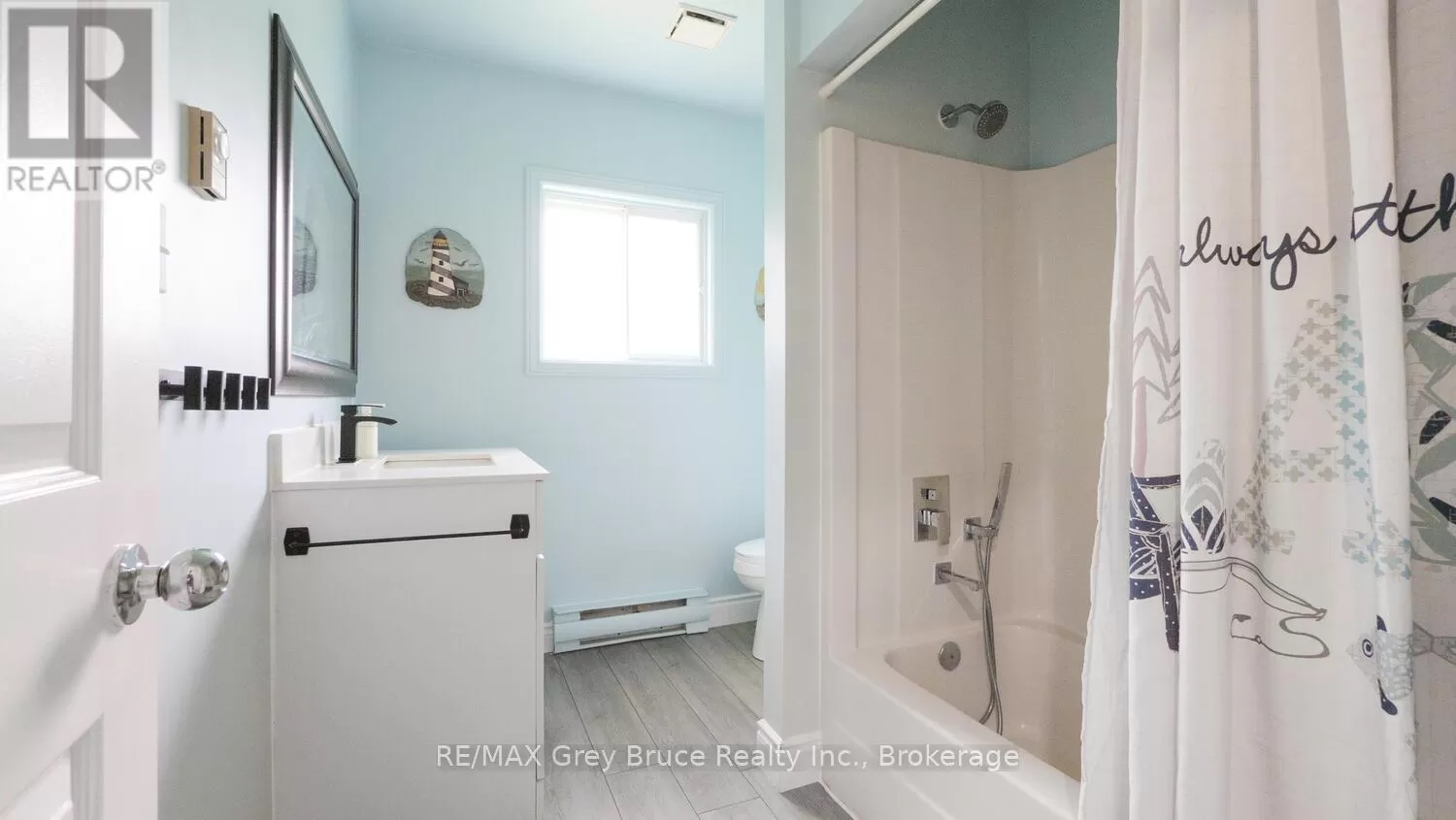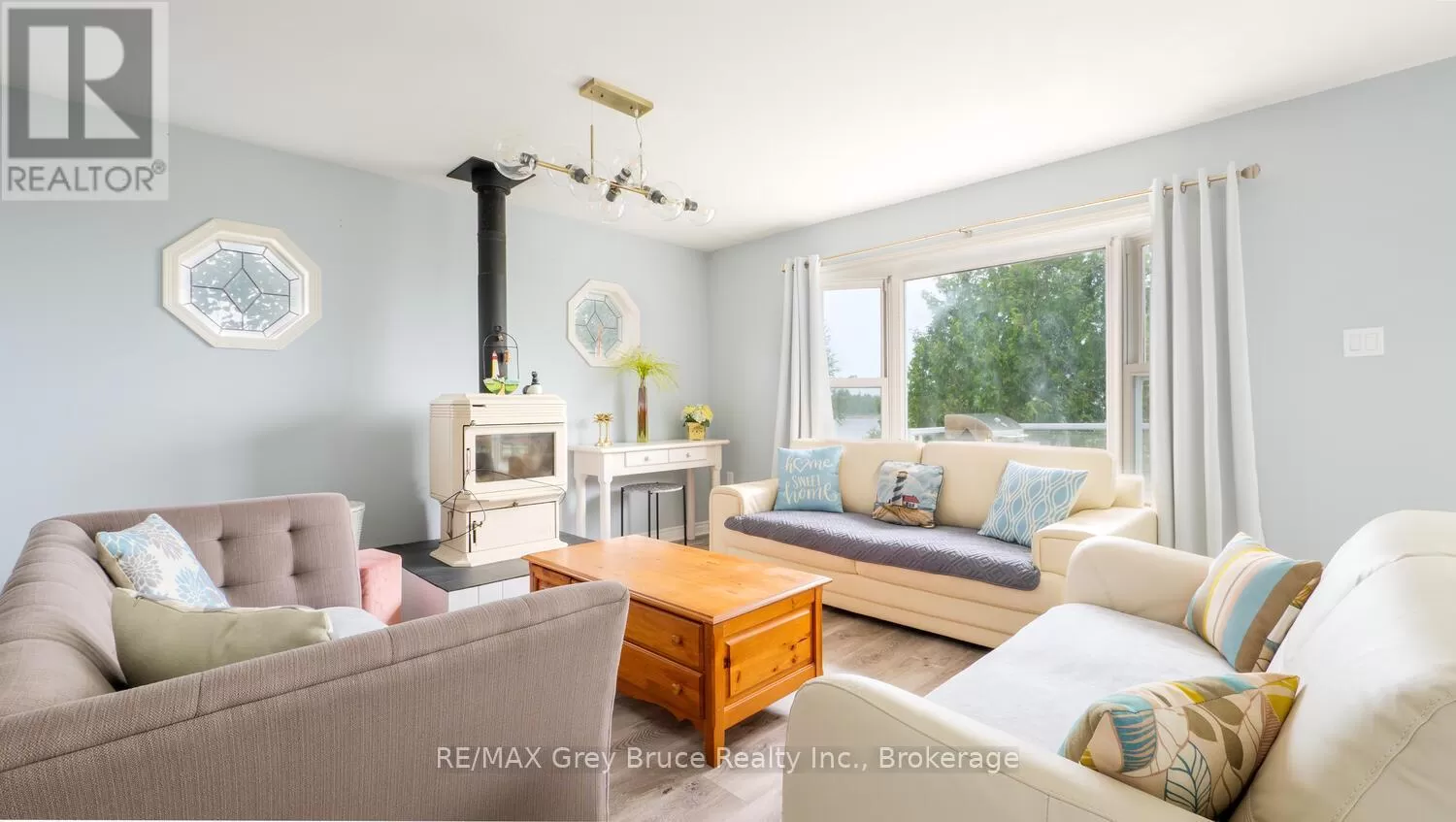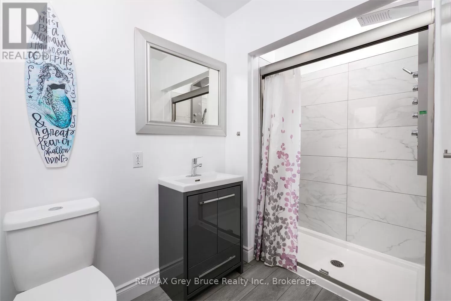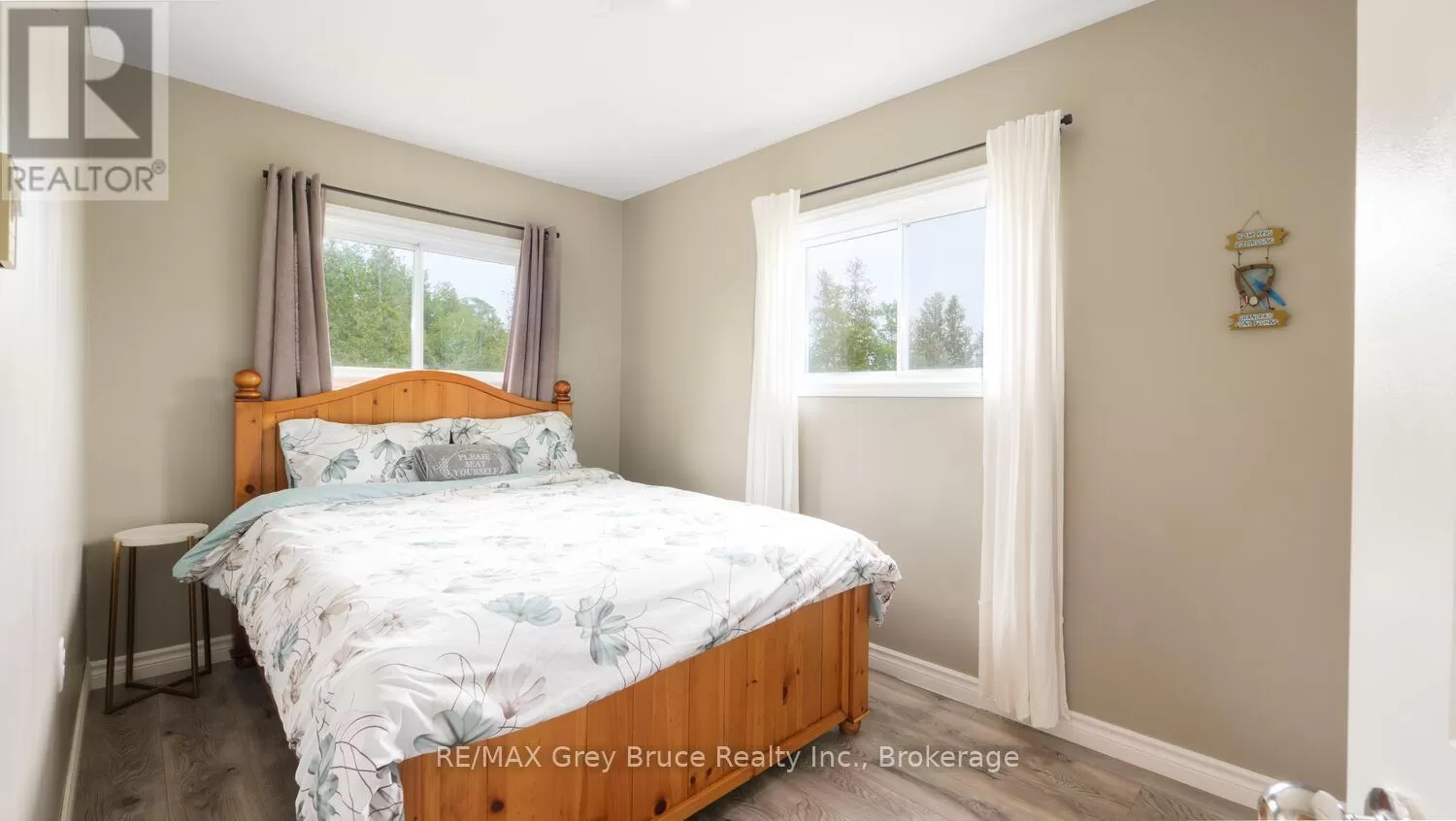 Cross Streets: Johnson Harbour Rd & Dorcas Bay Rd. ** Directions: Head North on Hwy 6 (ON-6). Turn Left onto Johnsons Harbour Road. Turn Right onto Dorcas Bay Road. Destination will be on your Left, look for signs. Oh my, the ocean-like views steal the show in this waterfront home on Dorcas Bay. As you step inside you'll be greeted by the open concept kitchen, dining, and living area creating the perfect place for entertaining family and friends. Expansive windows provide an abundance of natural light that floods the living space. A 14-foot patio door, added recently, leads to a generously sized deck, featuring glass panels and rails which were added in the last few years. You'll never tire from the ever changing, uninterrupted ocean-like views of Lake Huron from both inside and outside of this home. With 4 generously sized bedrooms and 2 bathrooms there is ample space for everyone. The primary bedroom boasts a renovated ensuite bathroom and the main bathroom has also been upgraded. On the upper floor you'll find the 4th bedroom space with a recently installed window providing more stunning water views. The home has seen a number of additional upgrades in the last few years including: new flooring throughout, LED lighting inside and out, new pex plumbing, new hot water tank and UV, and a freshened kitchen. The walk-out lower level currently features a utility area, laundry area and a roughed in bathroom, and provides an open canvas to design and add more living space if desired, while the built-in garage provides oodles of storage. The shoreline with its gradual water entry is ideal for families with smaller children to enjoy water activities. This home comes turnkey with furniture, appliances, pots/pans/cutlery/dishes and more. Conveniently located near Tobermory, Singing Sands Beach, and the Grotto, you and your guests have access to an array of recreational activities, shops and restaurants. This property is currently licensed for STA stays with a proven rental income. (id:27476)