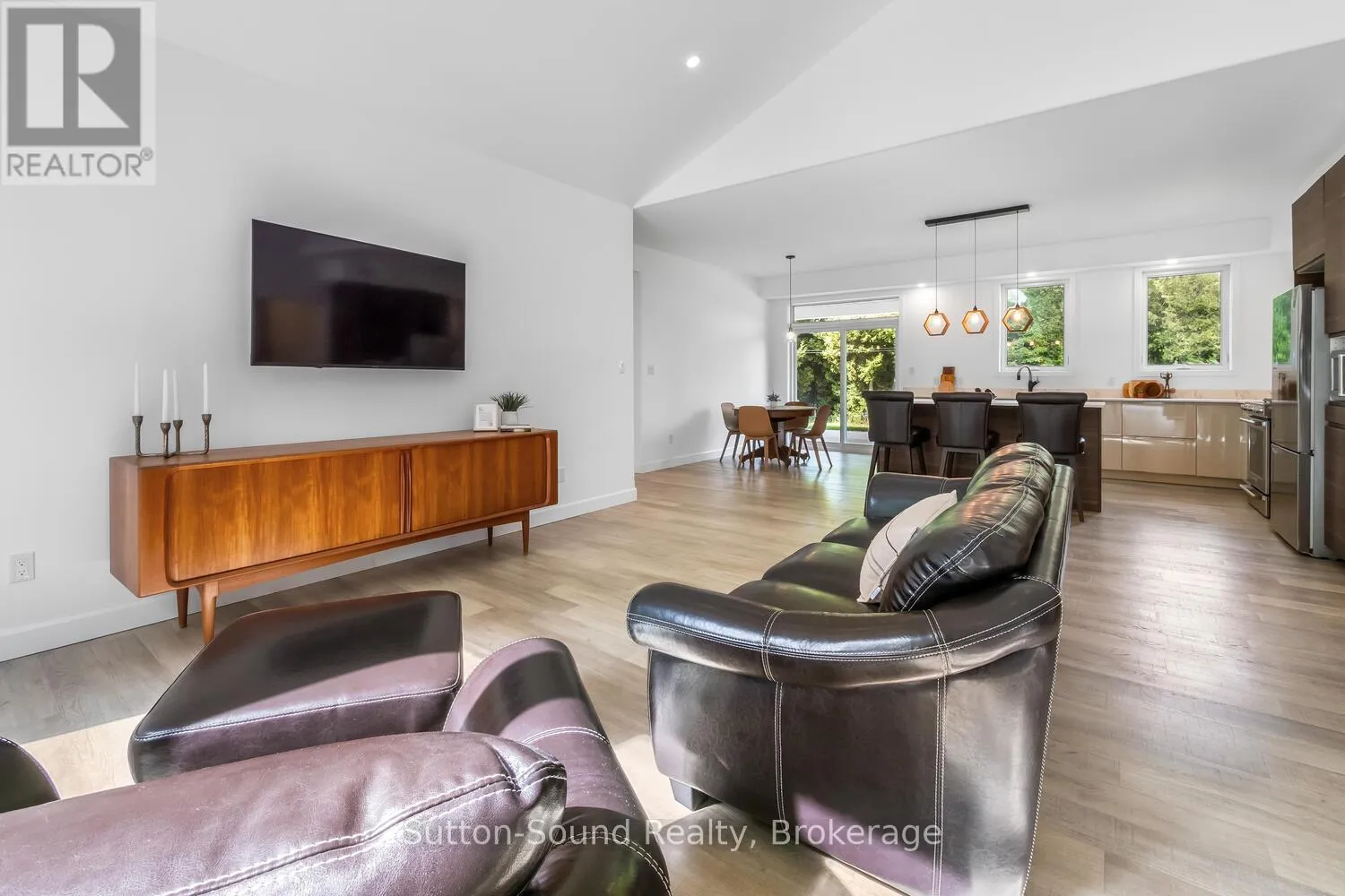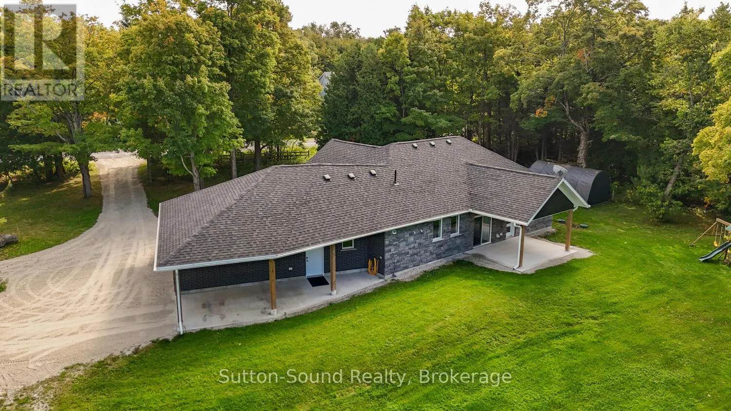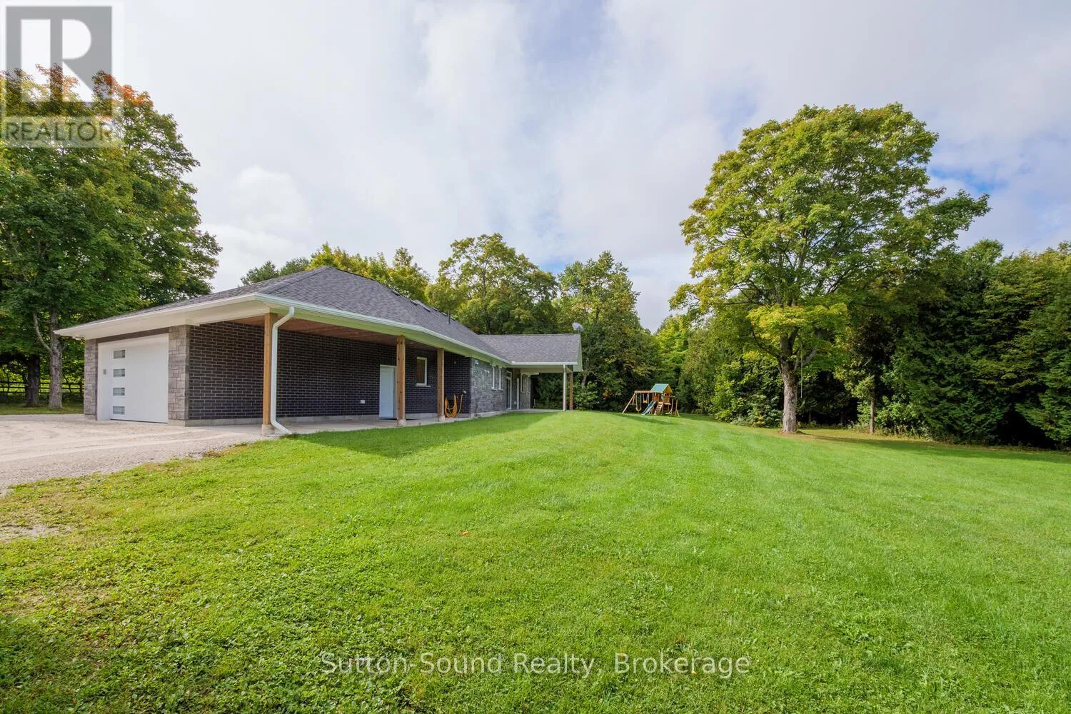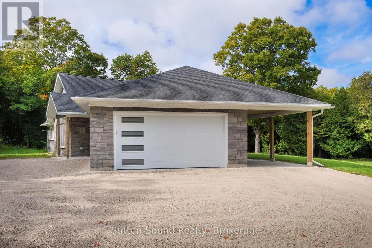 Cross Streets: Everatt Side Rd / Isthmus Bay Rd. ** Directions: From Highway 6, turn East onto Everatt Side Rd, house is on left side before stop sign for Isthmus Bay Rd. Discover this thoughtfully designed 2 bedroom, 1.5 bathroom bungalow, built in 2018 with sturdy stone and brick construction. Offering comfort, style, and convenience all on one level, its an excellent option for retirees or anyone seeking easy living. The covered front entry welcomes you with no steps into the home, ensuring accessibility for everyone. Inside, you'll find yourself at the heart of the home in a spacious open-concept living area, where high ceilings and large windows fill the space with natural light. A cozy propane fireplace adds warmth and charm to the living room, while the modern kitchen boasts stainless steel appliances, a gas stove, and a large island with seating - perfect for gathering with family or friends. The seamless flow of the layout makes it ideal for both everyday living and entertaining. The primary bedroom features ensuite access to a luxurious 4-piece bathroom, complete with a walk-in shower and relaxing soaker tub. Across the hall, the second bedroom overlooks the private backyard. The laundry room, equipped with a Maytag washer and gas dryer, offers a walkout to the covered patio - an inviting space to enjoy the outdoors. Additional conveniences include abundant closet storage and a handy 2-piece bathroom located off the garage, perfect for guests. Radiant in-floor heating throughout the home ensures steady, efficient warmth all year round. Outside, the property offers plenty of space and parking options with an attached 2 car garage, additional carport, and dual driveway access with fresh gravel, allowing for a circular drive. Set on a generous 1-acre lot, this home provides room to relax and enjoy nature, while still being just minutes from the amenities of Lions Head, Georgian Bay, hiking trails, and more. Blending modern design with the ease of one-level living, this home is a welcoming retreat on the beautiful Bruce Peninsula. (id:27476)