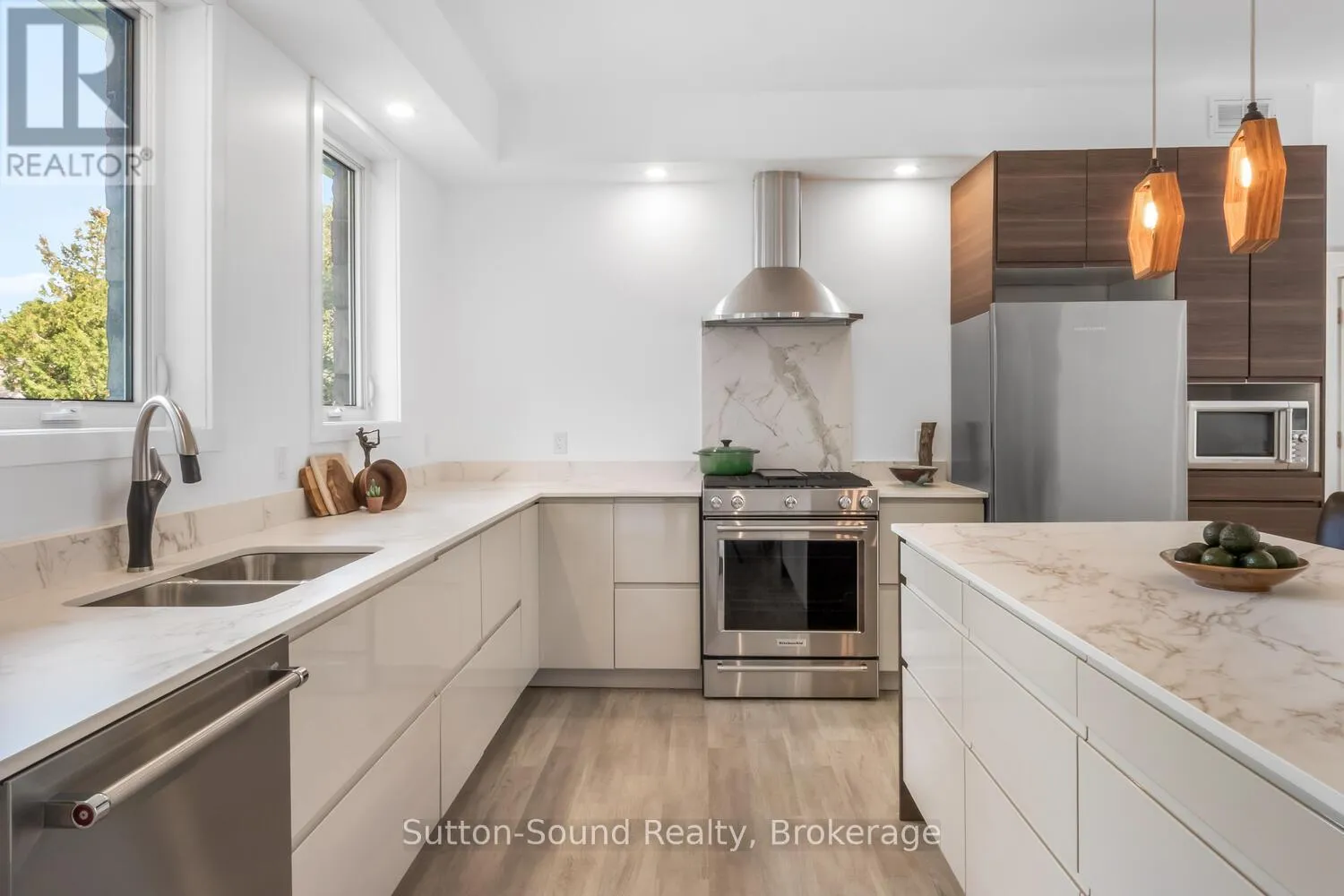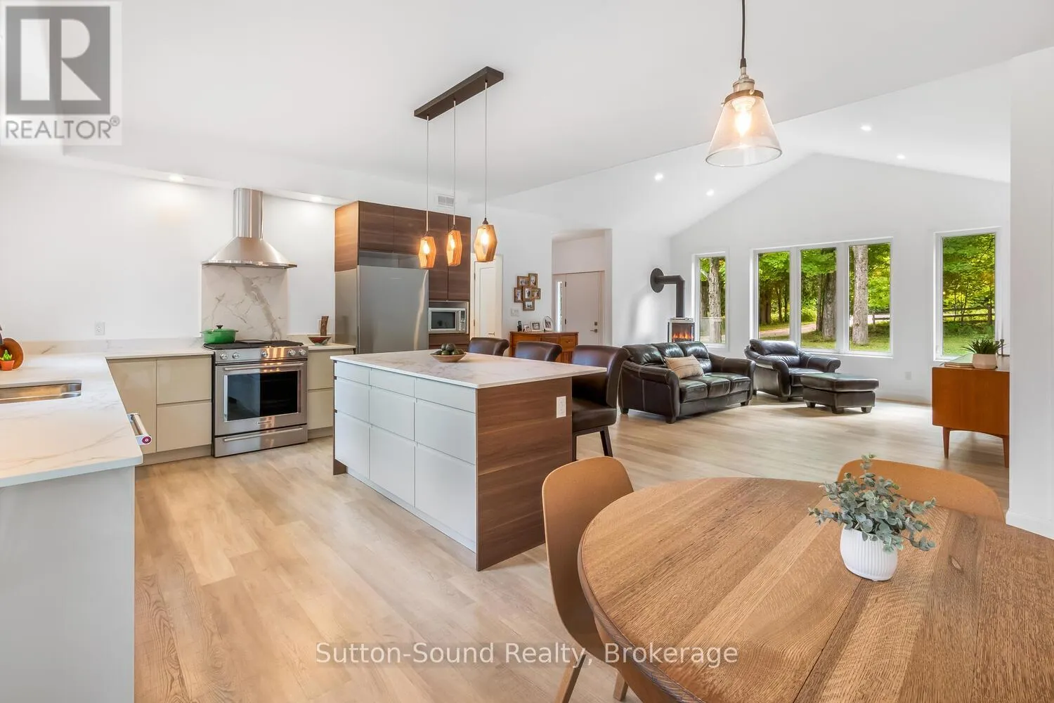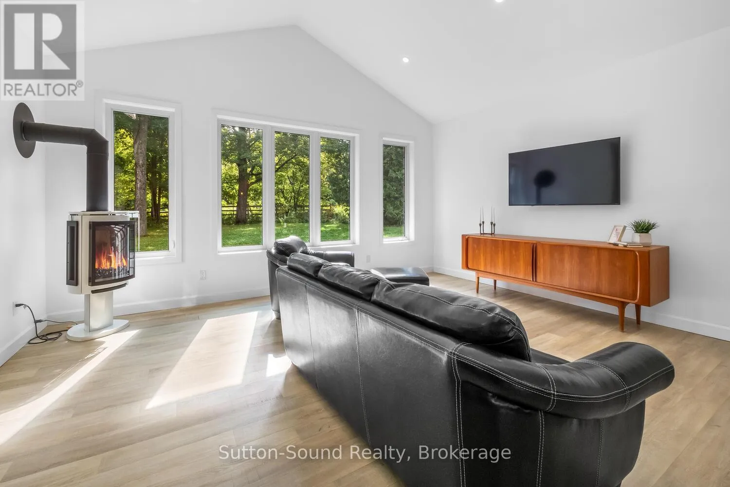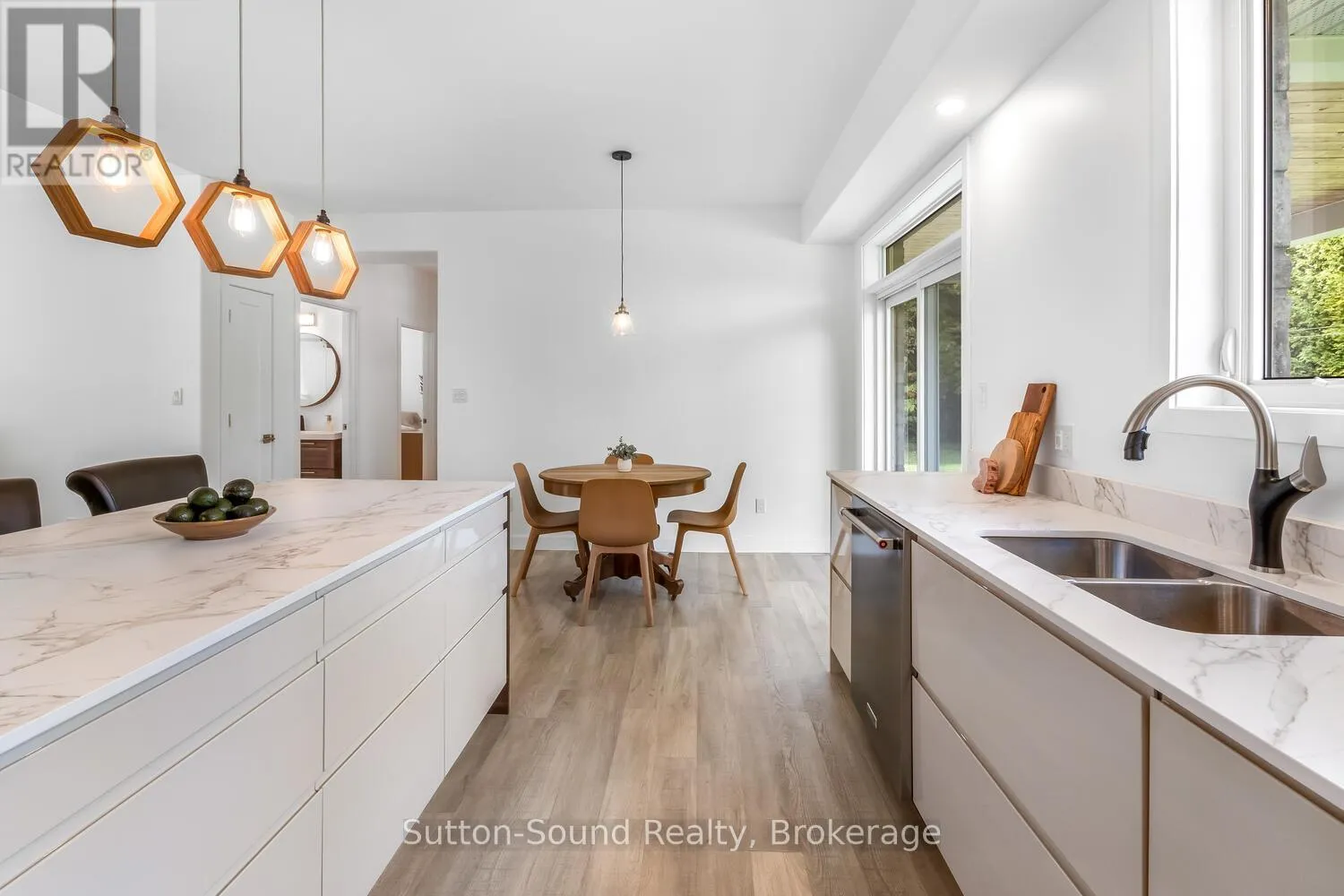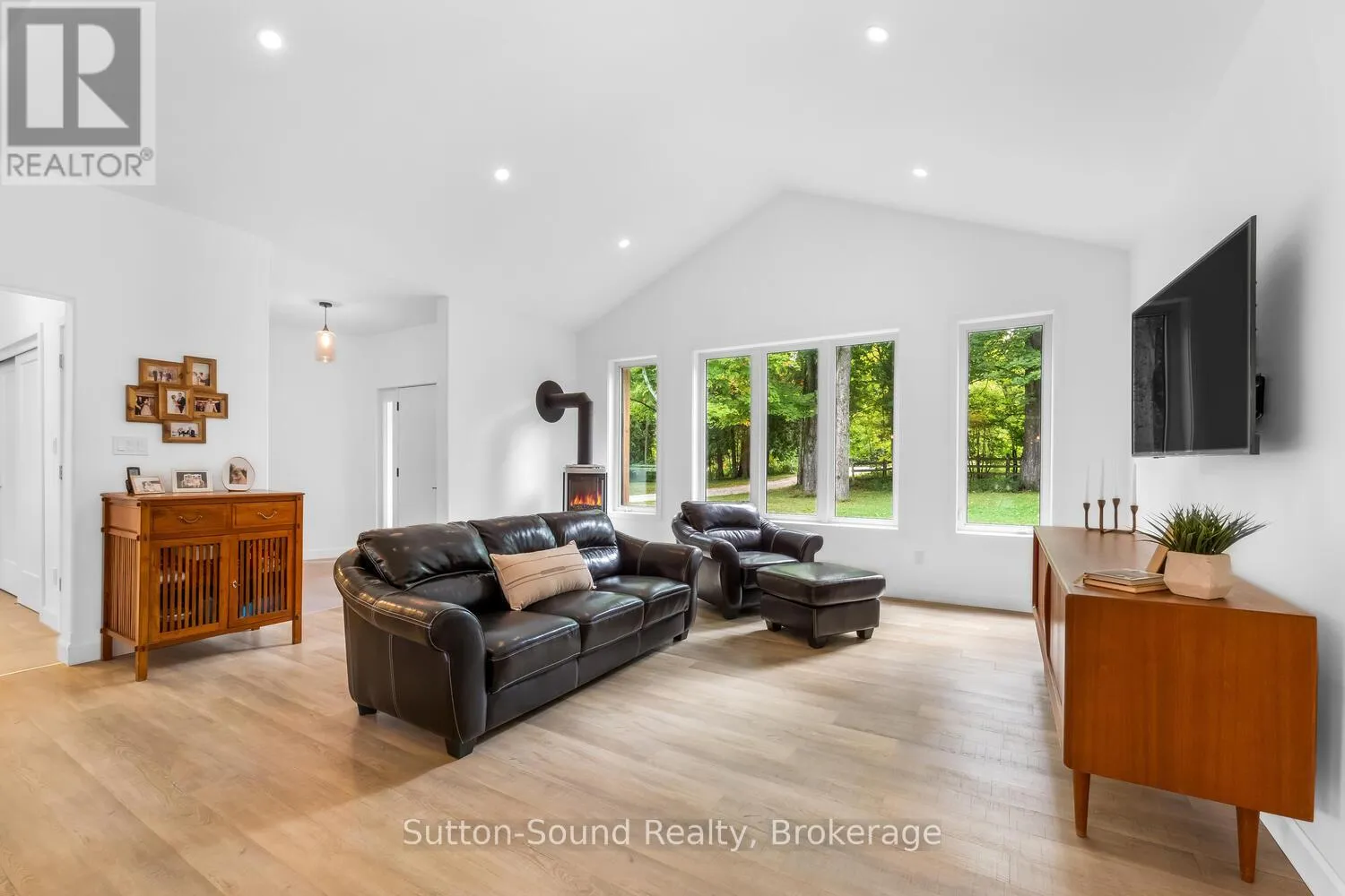 Cross Streets: Everatt Side Rd / Isthmus Bay Rd. ** Directions: From Highway 6, turn East onto Everatt Side Rd, house is on left side before stop sign for Isthmus Bay Rd. Discover this thoughtfully designed 2 bedroom, 1.5 bathroom bungalow, built in 2018 with sturdy stone and brick construction. Offering comfort, style, and convenience all on one level, its an excellent option for retirees or anyone seeking easy living. The covered front entry welcomes you with no steps into the home, ensuring accessibility for everyone. Inside, you'll find yourself at the heart of the home in a spacious open-concept living area, where high ceilings and large windows fill the space with natural light. A cozy propane fireplace adds warmth and charm to the living room, while the modern kitchen boasts stainless steel appliances, a gas stove, and a large island with seating - perfect for gathering with family or friends. The seamless flow of the layout makes it ideal for both everyday living and entertaining. The primary bedroom features ensuite access to a luxurious 4-piece bathroom, complete with a walk-in shower and relaxing soaker tub. Across the hall, the second bedroom overlooks the private backyard. The laundry room, equipped with a Maytag washer and gas dryer, offers a walkout to the covered patio - an inviting space to enjoy the outdoors. Additional conveniences include abundant closet storage and a handy 2-piece bathroom located off the garage, perfect for guests. Radiant in-floor heating throughout the home ensures steady, efficient warmth all year round. Outside, the property offers plenty of space and parking options with an attached 2 car garage, additional carport, and dual driveway access with fresh gravel, allowing for a circular drive. Set on a generous 1-acre lot, this home provides room to relax and enjoy nature, while still being just minutes from the amenities of Lions Head, Georgian Bay, hiking trails, and more. Blending modern design with the ease of one-level living, this home is a welcoming retreat on the beautiful Bruce Peninsula. (id:27476)
