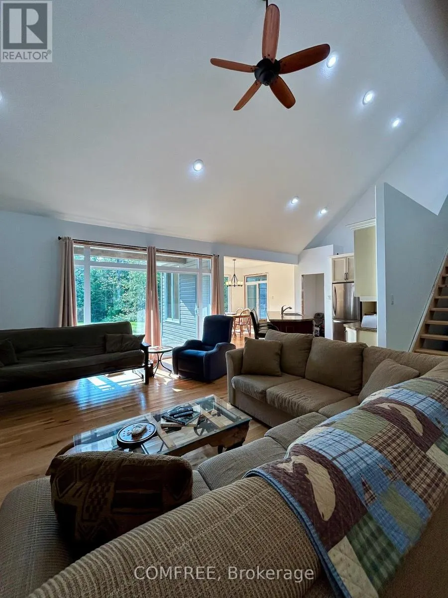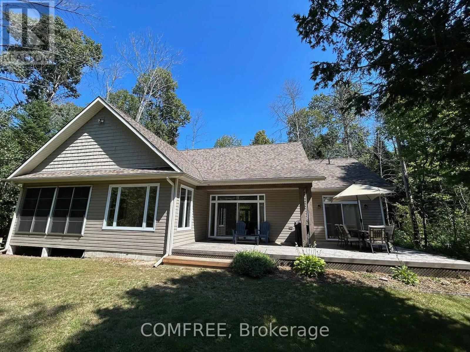 Cross Streets: Pike Bay Rd. and Bell Drive. ** Directions: Pike Bay Rd to Bell Drive. Welcome to this custom-built bungalow with loft area, offering a thoughtfully designed layout and quality finishes throughout. The main floor features soaring vaulted ceilings in the entrance, living area, primary bedroom, and ensuite, complemented by 9-foot ceilings with California stucco texture. A bright 14'3" x 11'5" insulated sunroom with large windows extends from the dining area, creating the perfect space to enjoy views of the private, treed surroundings. The home includes spray foam insulation for comfort and efficiency, a spray-foamed and drywalled attached garage, plus a generator panel for peace of mind. Upstairs, a 210 sq ft loft provides a spacious bonus room, ideal for flexible use. 98% finished ready for your personal touches to complete. Outdoors, the large deck invites you to relax or entertain on the 2.42-acre property. This 3-bedroom home is within walking distance to Lake Huron, a general store with gas, groceries, and lcbo, park, and boat launch blending privacy, convenience, and lifestyle in one exceptional property. (id:27476)