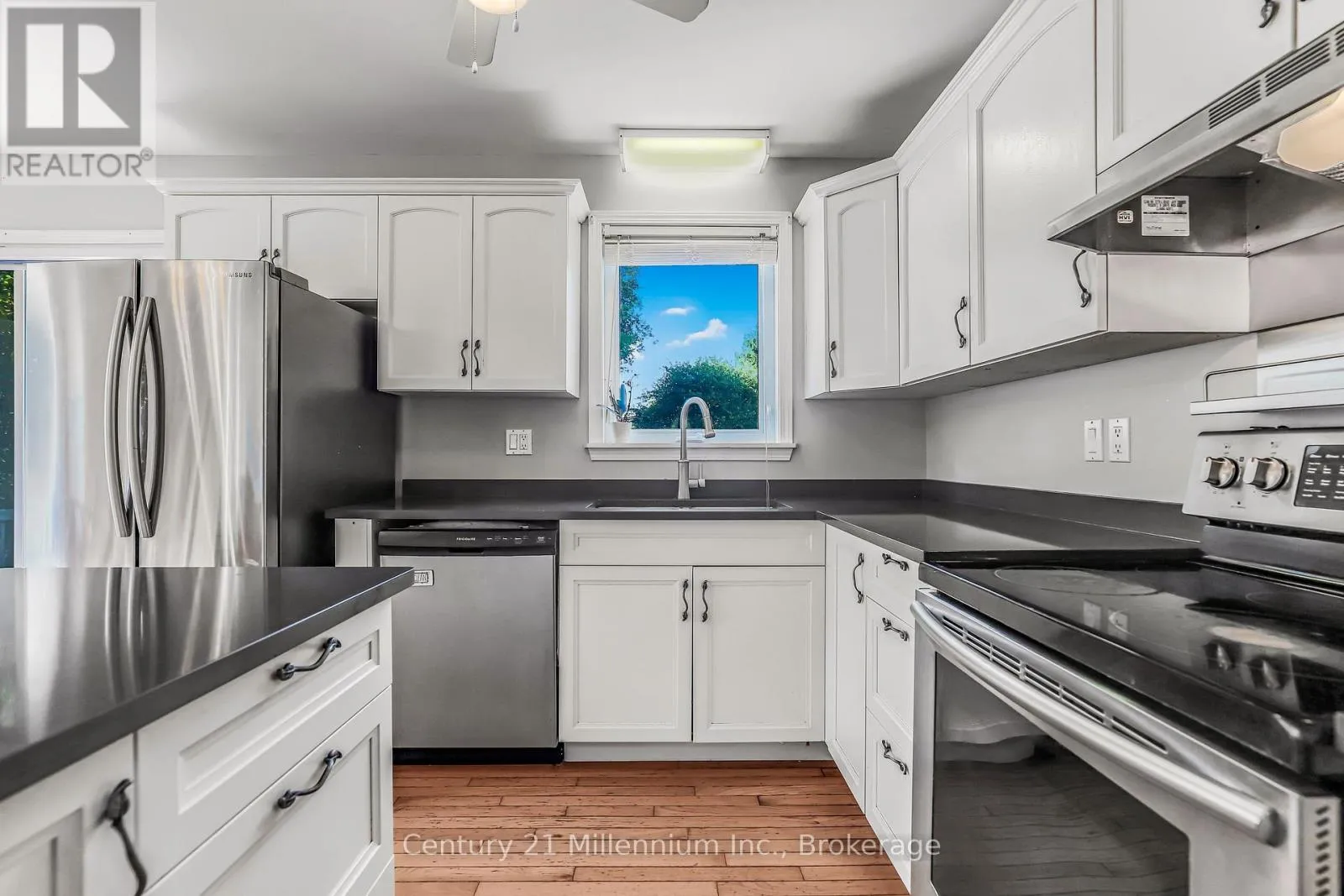 Cross Streets: Scott St. ** Directions: North on Hwy 6 to Ferndale, Turn Right on Bruce Road 9, Left at stop sign to Main St, Follow to #96 past downtown on the left. Just steps from the white sandy beach, marina, park, and local shops, it's a wonderful place to retire, raise a family, or simply enjoy life by the Bay. Cathedral ceilings greet you as you walk in, creating a bright and open feel throughout the main living space. This home offers 3 bedrooms,2 full bathrooms, and two main-floor living areas. The kitchen was updated in 2021 with cabinets, countertops, and a pantry. Enjoy hardwood floors, a main-floor primary bedroom with a walk-in closet, a 3-piece bathroom conveniently located next door, and main-floor laundry for added ease. The main living room is bright and inviting, featuring large windows and a propane fireplace. The second living area, once a garage is now a spacious bonus room, ideal for a family room, library, or hobby space. Prefer parking? It can easily be converted back into a fully insulated garage! Upstairs, you'll find two spacious bedrooms with a large 4-piece bathroom in between, perfect for guests or kids. A new forced-air furnace (2024) adds comfort and efficiency year-round. Need extra space? There's a large attic with great potential to be finished and increase your square footage! Outside, enjoy great curb appeal and a spacious backyard with raised garden beds, ready for growing, relaxing, and entertaining on warm summer evenings. Set right in town, this location puts you within short walking distance of Georgian Bay, world-class hiking, and all local amenities, restaurants, and shops. (id:27476)