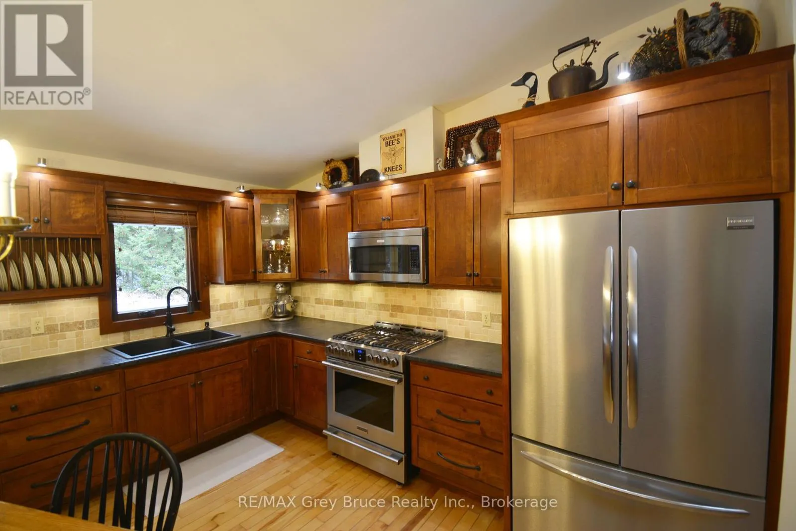 Cross Streets: Highway 6, Cherry Hill Road, Lindsay Road 5, East Road, Cape Chin South Road. ** Directions: Highway 6 North to Lindsay Road 5, turn right, continue to East Road, turn left, then first right on Cape Chin South Road, to Carter Road, to signs at #54 (left hand side). Surrounded by mature evergreens and some hardwood bush, this well maintained year round waterfront home, located on the shores of Georgian Bay in beautiful Cape Chin South. This three bedroom, four piece bathroom home was custom built by the owner and has been meticulously cared for over the years. The property is heavily treed with mature cedar, spruce, pine, ironwood, maple and birch and is beautifully landscaped with gardens throughout. There are custom stone patios, pergolas, a mini basketball court, seven seating areas, a covered pavilion, a firepit at the water's edge to enjoy the fabulous cape to cape views that the bay has to offer. The interior of the home is warm and inviting that features an open concept living area, with Birch hardwood flooring; walkout to spacious deck from living area. There is a cozy propane fireplace with stone surround and space for overhead media. The propane fireplace easily heats the home and there is electric baseboard heat for the bedrooms. The eat-in kitchen area has lovely cherry-finished cabinetry, travertine stone backsplash, two ventilating skylights which provide plenty of natural light and with a walkout to patio. The bedrooms are of good size; the primary bedroom has a walk-in closet; the four piece (recently renovated) bathroom has in-floor heat. Separate laundry room. The exterior of the home is cedar siding, the roof was re-shingled in 2007 with 40 year premium asphalt shingles over ice-block wrapping and double plywood sheathing. There is a wired Generac that powers the home in case of a power outage. Property is located on a year round municipal road. The trails are nearby. If you're looking for a great waterfront escape, surrounded by nature, here's a good place to make this your home or cottage getaway. Taxes: $4534.00. The property is a pleasure to show! Please do not enter the property without an appointment. (id:27476)