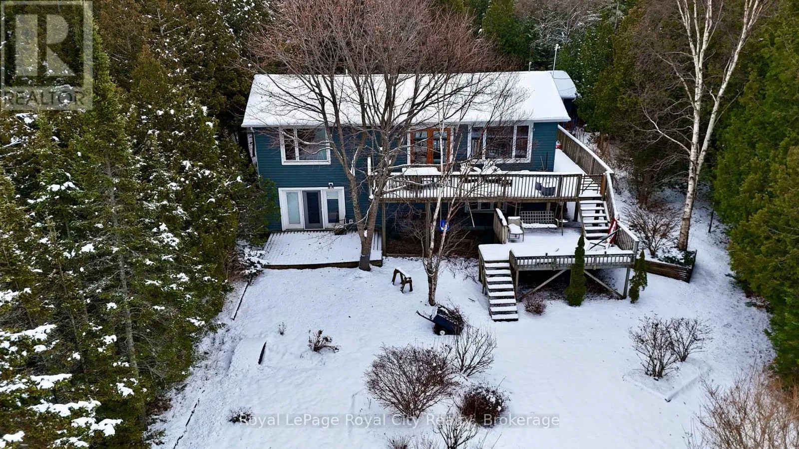 Cross Streets: Highway 6 & Cape Hurd Road. ** Directions: Heading North on Hwy 6, turn left onto Cape Hurd Rd. Stay on Cape Hurd road until Zorra drive, then turn left onto Zorra Drive. The property will be on your right. Experience the best sunsets Ontario has to offer with this beautiful waterfront cottage, located on a quiet street a short drive from the hub of Tobermory! Enjoy lakeside views from the living room and the open concept layout of the main floor, made cozy by the propane fireplace. Enjoy a morning coffee and the sound of waves from Lake Huron on the large porch! Down the hallway, you'll find two comfortable bedrooms, including a primary bedroom with a spacious walk-in closet and a show-stopping view of the lake through the bedroom window! A charming library is located on the lower floor of the home, a bookworm's haven with plenty of shelf-space and another cozy fireplace. The lower floor also features a sizeable storage room and a three piece bathroom. Outside, the property contains lots of parking and an adorable bunk house for guests! Don't miss out on this fantastic opportunity to make this piece of Northern Bruce Peninsula paradise your own! (id:27476)