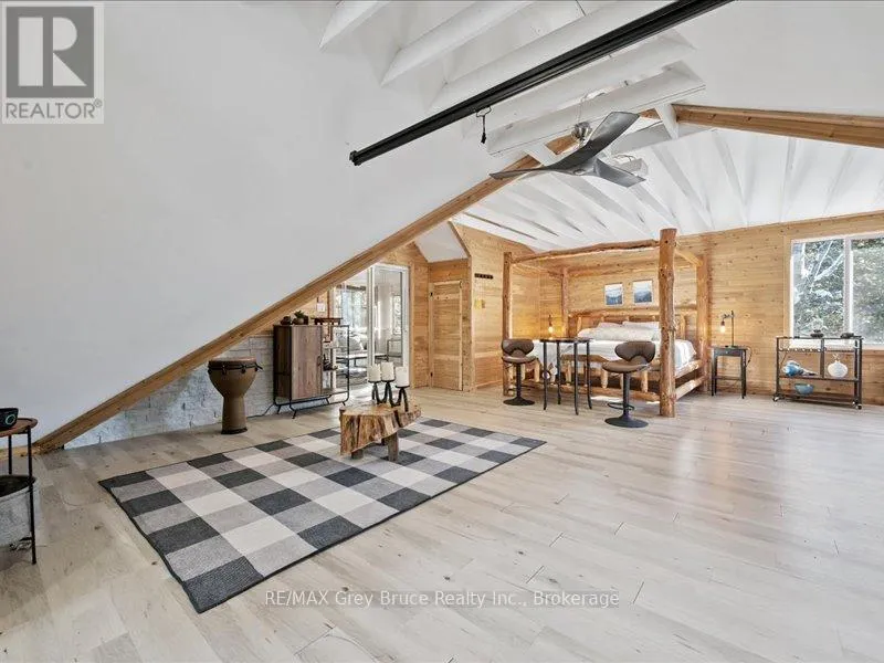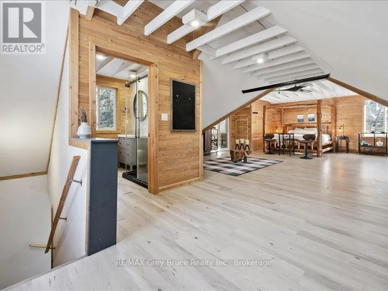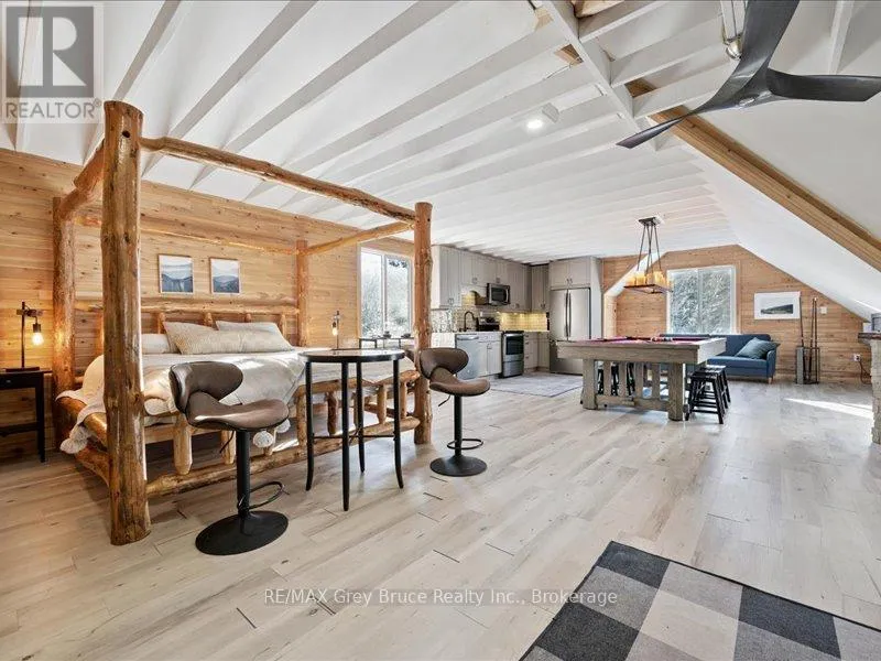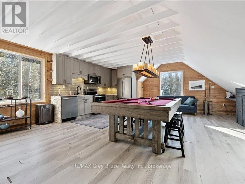 Cross Streets: East Road. ** Directions: From Wiarton: head north on Hwy 6 N Turn right onto Cherry Hill Rd Turn right onto Lindsay Road Turn left onto Turn right onto Cape Chin North Rd Destination will be on the right. Welcome to 102 Cape Chin North Road. Thoughtfully positioned away from the main residence, the loft provides a strong sense of independence while remaining immersed in nature. The suite features two bedrooms, 1.5 bathrooms, a full kitchen, main-floor laundry, and generous living spaces filled with natural light. Warm wood finishes, vaulted ceilings, and curated furnishings create an environment that feels both refined and restorative. Below, the massive heated garage, complete with a separate inlet garage, offers outstanding flexibility-ideal for secure vehicle storage, gear, hobbies, or creative pursuits. Outdoors, enjoy a private backyard carved from the forest, featuring a hot tub, two-level deck, and an upper screened-in porch-perfect for quiet mornings and evenings under the stars.In addition, the property includes access to a shared cabin, thoughtfully designed as a common retreat space. Ideal for family spillover during visits, gaming, writing, or simply stepping away, the cabin offers a flexible environment that supports creativity, connection, and moments of calm-without intruding on the privacy of the main suite. Offered fully furnished with utilities included, this executive lease is truly turnkey. Whether working remotely, transitioning between homes, or seeking a longer-term Peninsula retreat, this residence delivers a rare balance of comfort, discretion, and connection to nature.Located minutes from the Bruce Trail, Georgian Bay, Lion's Head, and Tobermory, this is an opportunity to experience the Bruce Peninsula not as a visitor-but as a resident.Available as an Executive Lease. Inquiries by appointment only. (id:27476)