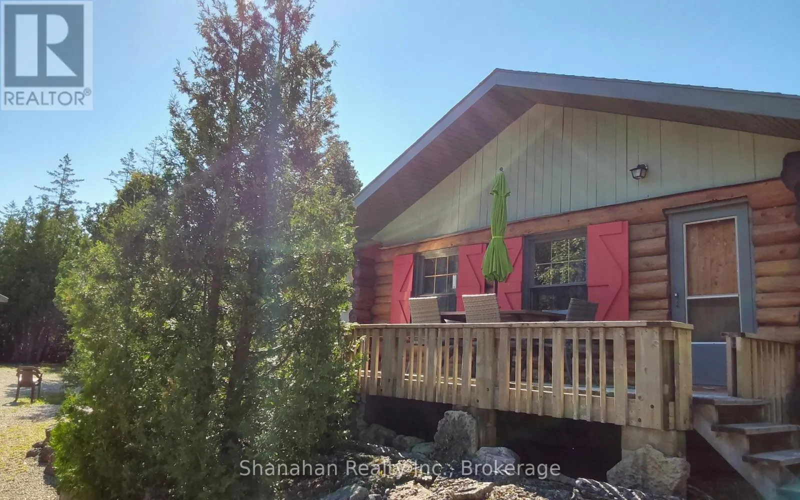 Cross Streets: Zorra Dr. and Myles Dr. ** Directions: Hwy 6 North to Tobermory, Turn left onto Cape Hurd Rd directly across from Tobermory Sign. Property on Left. Showings by appointment ONLY. Don't go down driveway without Agent and appointment. Private home with video surveillance and watch dogs. 91 acres of serene and quiet privacy on the shore of Lake Huron with no neighbours anywhere in site. Offers great investment potential for licensed STA rentals or a bed and breakfast. Tucked far back in the woods is a beautiful hand crafted log home with over 2000 sq ft of living space. 3 spacious bedrooms offer plenty of space for a family or visitors. Two updated bathrooms have granite top vanities and ceramic backsplash. One has a large shower and the other a large refinished antique soaking tub. Updated porcelain floors complete these beautiful baths. Enter through the back door after tending the garden into a spacious mudroom with plenty of space for boots shoes and all your winter gear. The large laundry room has washer, dryer laundry tub and extra chest freezer. Access to a huge 13' x 5' walk in pantry. Open concept kitchen and dining area has new porcelain flooring, new granite on counters and island and includes all appliances. Tons of storage in the hand made pine cabinets. Elmira wood stove is WETT certified as is the wood burning stone fireplace with new insert in the living room. All flooring throughout is pine and porcelain. Patio doors lead to the back deck with water views. Oversize double garage and multiple outbuildings offer unlimited possibilities. Walk the path to the shore line for stunning views and enjoy a campfire under the stars. Land currently registered with the Conservation Land Tax Incentive Program, ask for details. An exceptional property for Buyers with discerning taste, there is no other place on the Peninsula that compares. Appointments must be booked ahead of time. Please don't enter the driveway without your agent and appointment. Owners live here year round and watch dogs on site when no appointments are booked. If you want complete privacy, waterfront, acres of natural forest, a stream and multiple trails to hike, and always dreamed of living in a log home, then this is the one. (id:27476)