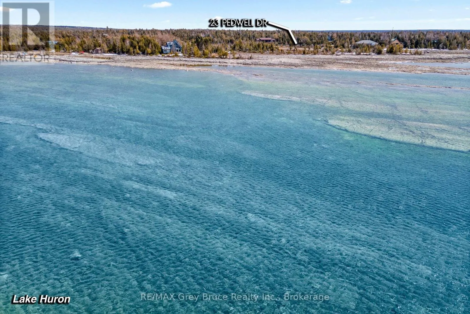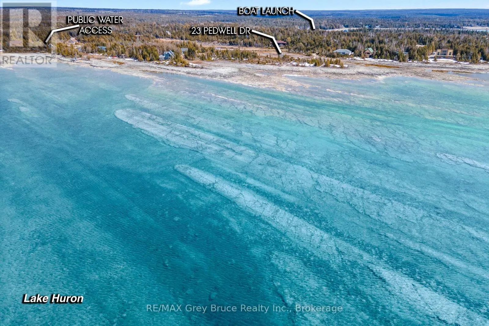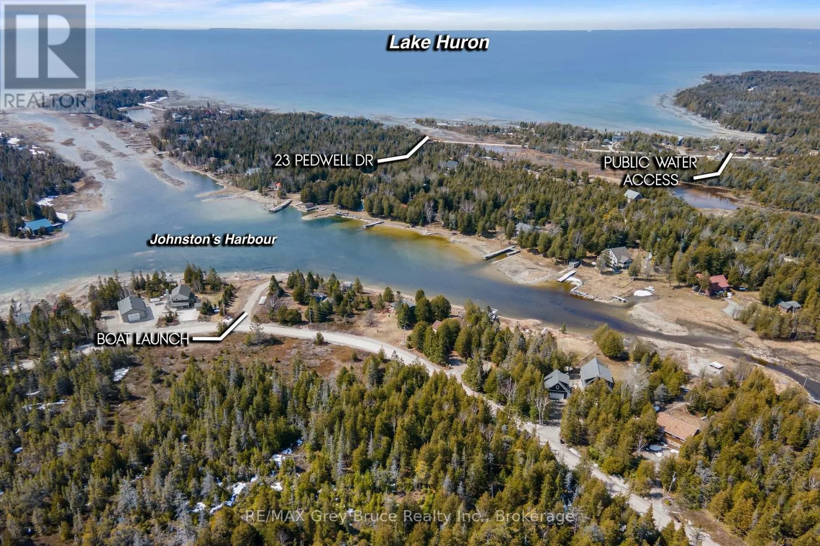Cross Streets: Pedwell Point Drive. ** Directions: Head North on Hwy 6 (ON-6), turn left onto Johnsons Harbour Road, turn left onto Pedwell Drive. Destination will be on the right. Look for signs. Experience the ultimate in waterfront living on the shores of Lake Huron! This exceptional property offers 100 feet of pristine, gradual-entry shoreline with sought-after northwestern exposure - perfect for soaking in breathtaking sunsets, expansive water views, and panoramic skies. Watch the sun melt into the horizon as vibrant colours reflect across the lake, then enjoy remarkably clear, star-filled nights beside the crackle of a campfire. Whether you're planning to build a year-round residence or a seasonal retreat, this waterfront lot comes with an approved Site Plan and Drainage Plan, saving you valuable time and effort! The generous 100 ft. x 440 ft. lot is located on a municipally maintained year-round road with hydro available. The roadside is naturally treed for privacy, while the waterside opens to showcase uninterrupted lake vistas - offering the perfect balance of seclusion and scenery. Outdoor enthusiasts will appreciate the nearby public boat launch for easy access to boating, swimming, fishing, and snorkelling in the clear waters of Lake Huron. Situated just 30 minutes from Tobermory, you'll enjoy convenient access to hiking trails, shops, and exploring one of Ontario's most celebrated natural destinations. Stroll along Tobermory Harbour, take in the charming waterfront atmosphere, and enjoy local dining and attractions. Whether you envision a permanent lakeside home or a peaceful weekend escape, this stunning parcel offers a rugged and inspiring canvas to bring your dream to life. (id:27476)