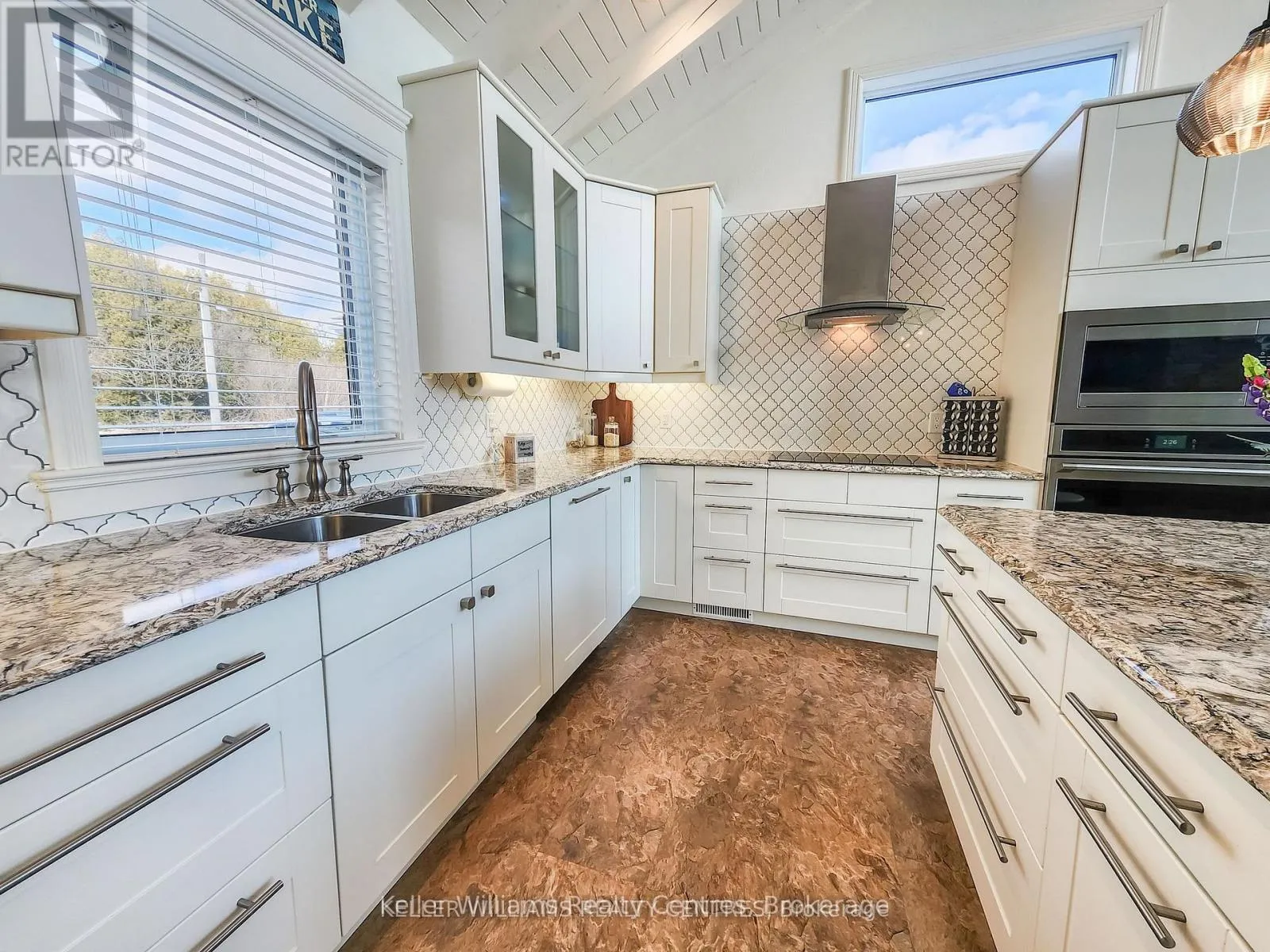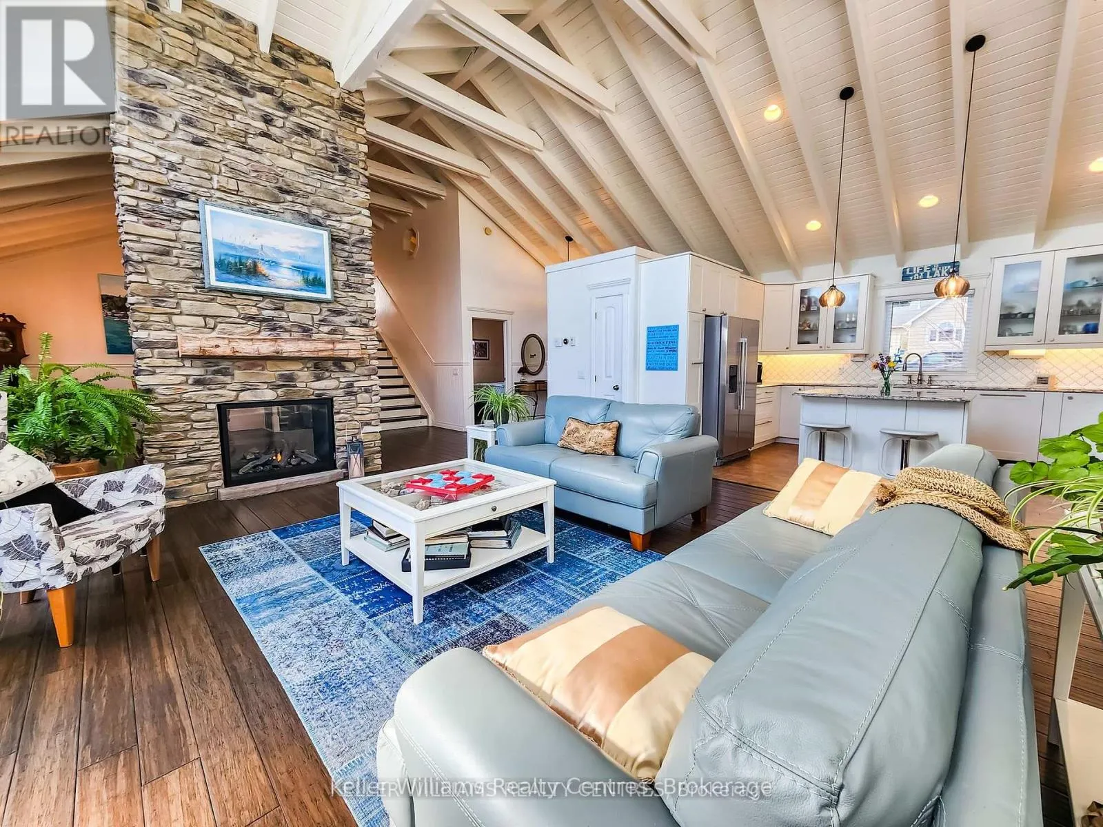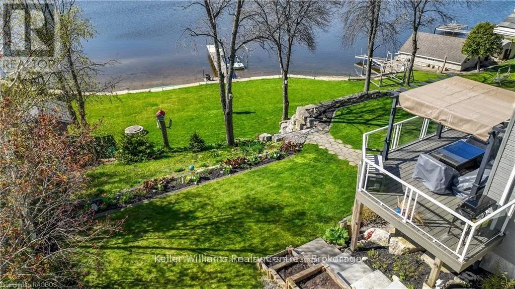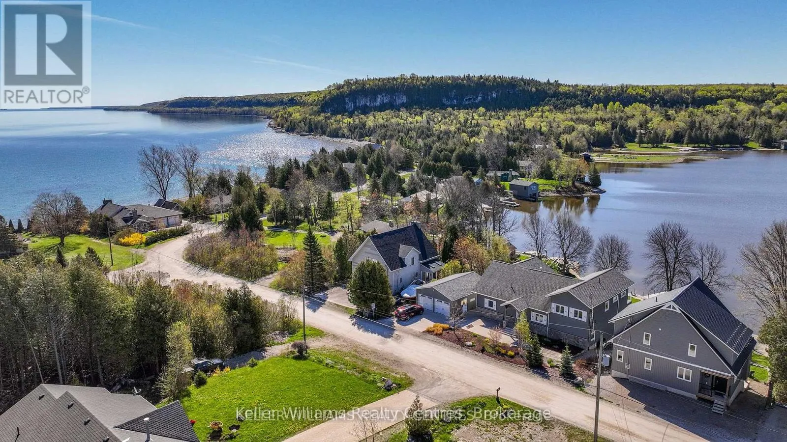Cross Streets: Channel Rd and North Shore Road. ** Directions: #74 North Shore Road, North Bruce Peninsula. Discover the pinnacle of waterfront luxury on the Bruce Peninsula with this exquisite custom-built home, crafted in 2014. This property epitomizes elegance, set against the tranquil backdrop of Little Lake with 100 ft of pristine shoreline. Ideal for swimming and boating, it comes fully equipped with dock sections, ensuring a premium waterfront experience with direct access to Georgian Bay through a dredged channel and described as a "safe harbor" by our OPP. Spanning 3,621 sq. ft. across three finished levels, the home offers three bedrooms, three bathrooms, 2 kitchens and unparalleled living spaces. Interior highlights include bamboo flooring, Cambria quartz countertops, and a comprehensive stainless steel appliance package. The layout is thoughtfully designed for both privacy and entertainment, featuring 20 ft high ceilings on the main floor with beams that evoke a very nautical feel, adding to the home's unique charm. At the heart of this home is a majestic stone, floor-to-ceiling, see-through propane fireplace. The primary bedroom suite boasts sweeping water views, a private balcony with composite decking, and glass railings. The outdoor living space is equally impressive, featuring a partially covered deck that overlooks the water, offering breathtaking views. The property includes a cozy TV room with water vistas, a spacious lower level walkout with a second kitchen, and ample space for recreational activities, perfect for extended family or guests. Less than a year old Continental furnace. Additionally, a 22x30 detached garage and abundant storage cater to all seasonal needs. Nestled in the delightful community of Barrow Bay, this home is not just a residence but a retreat, offering a lifestyle where serene beauty meets luxury. Experience a new standard of living in this waterfront gem, where every detail is meticulously crafted for comfort and elegance. (id:27476)