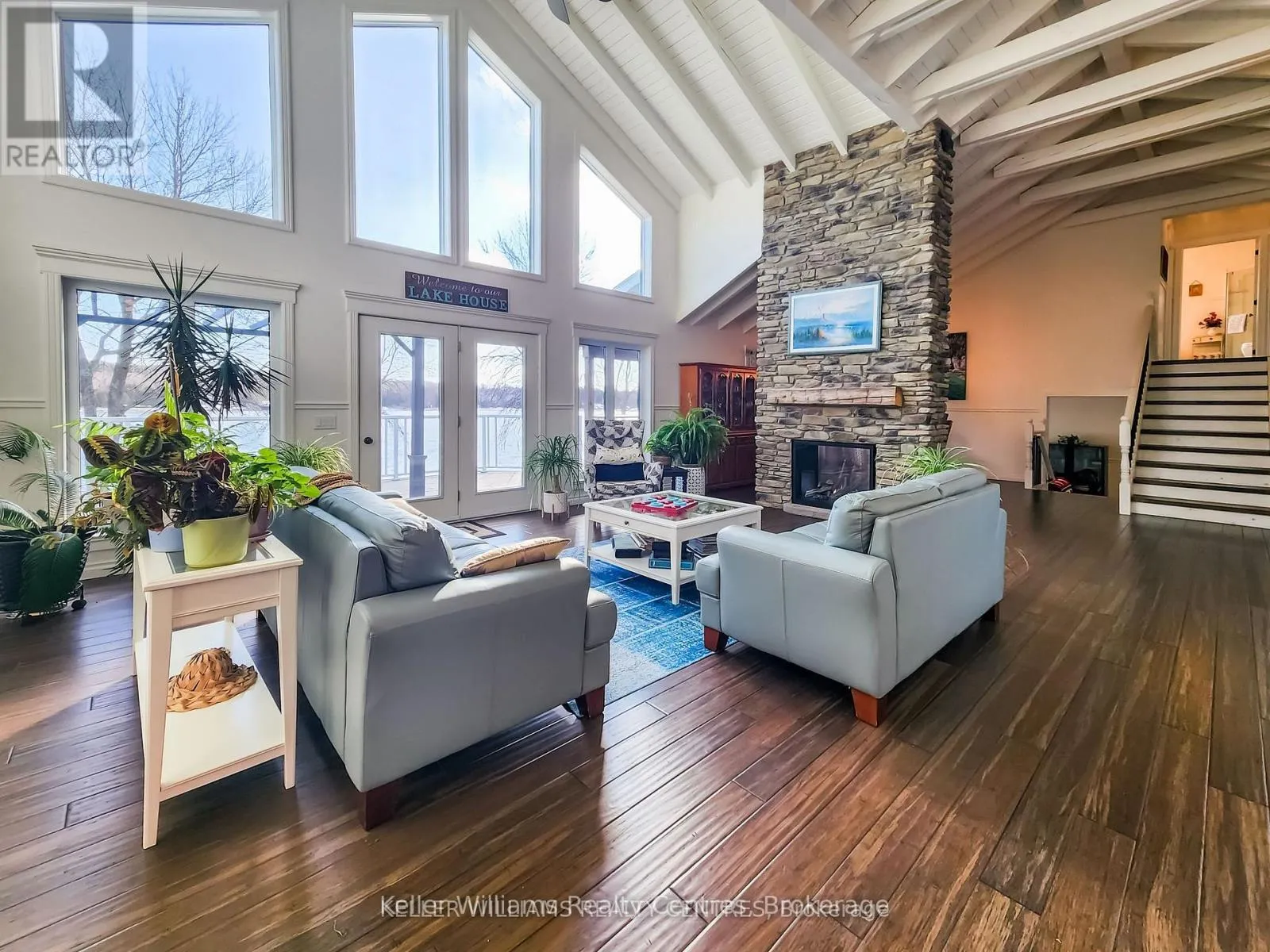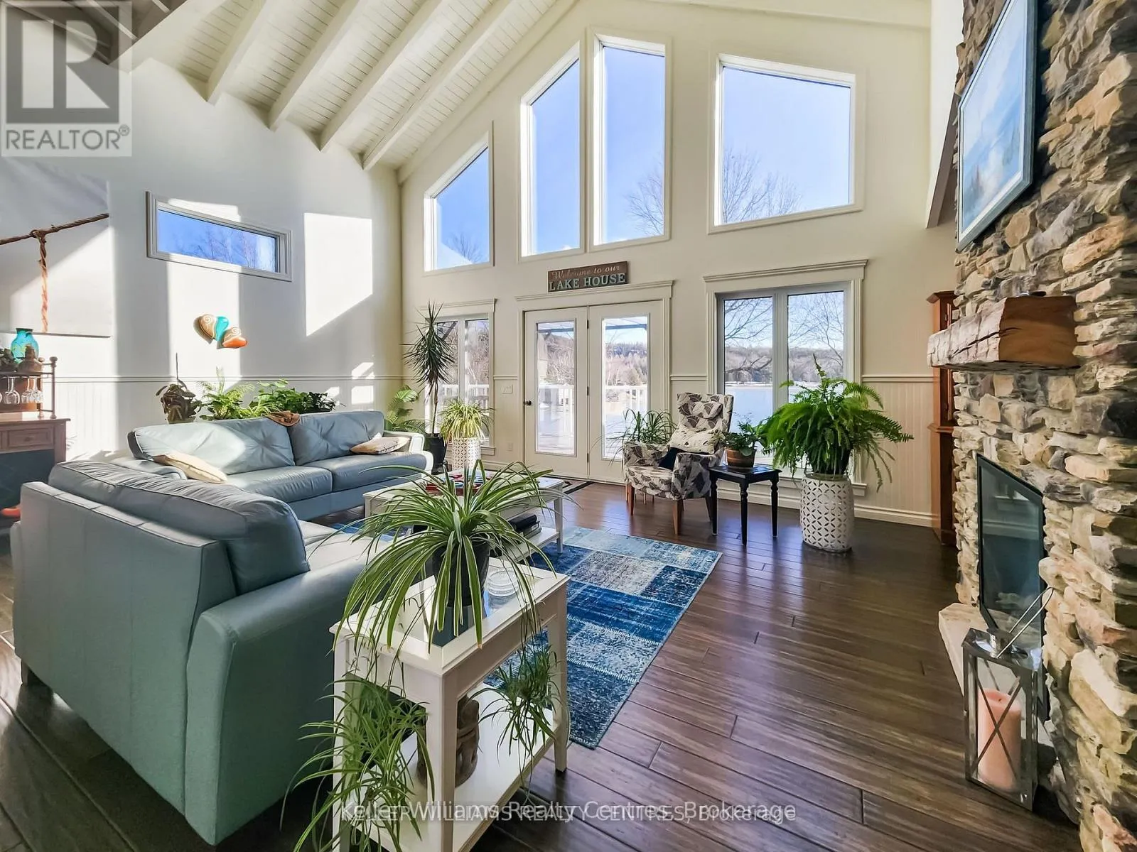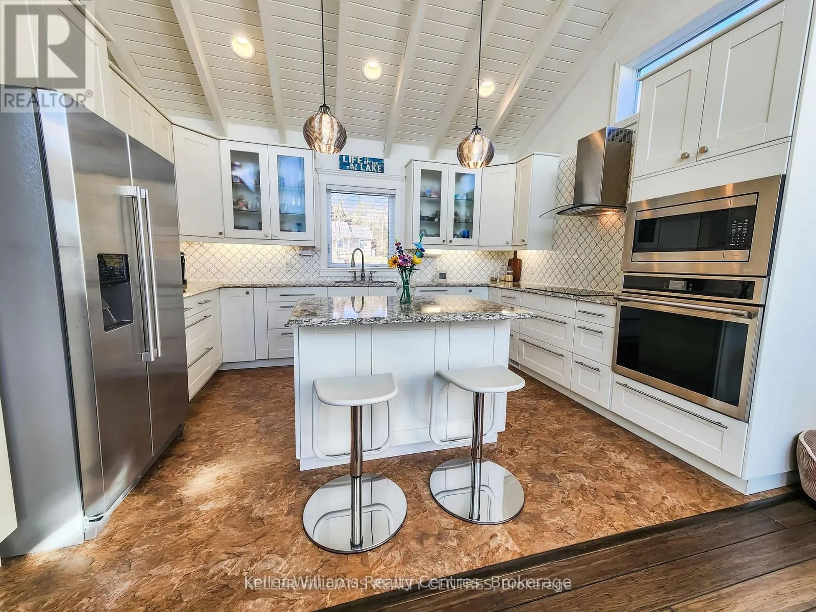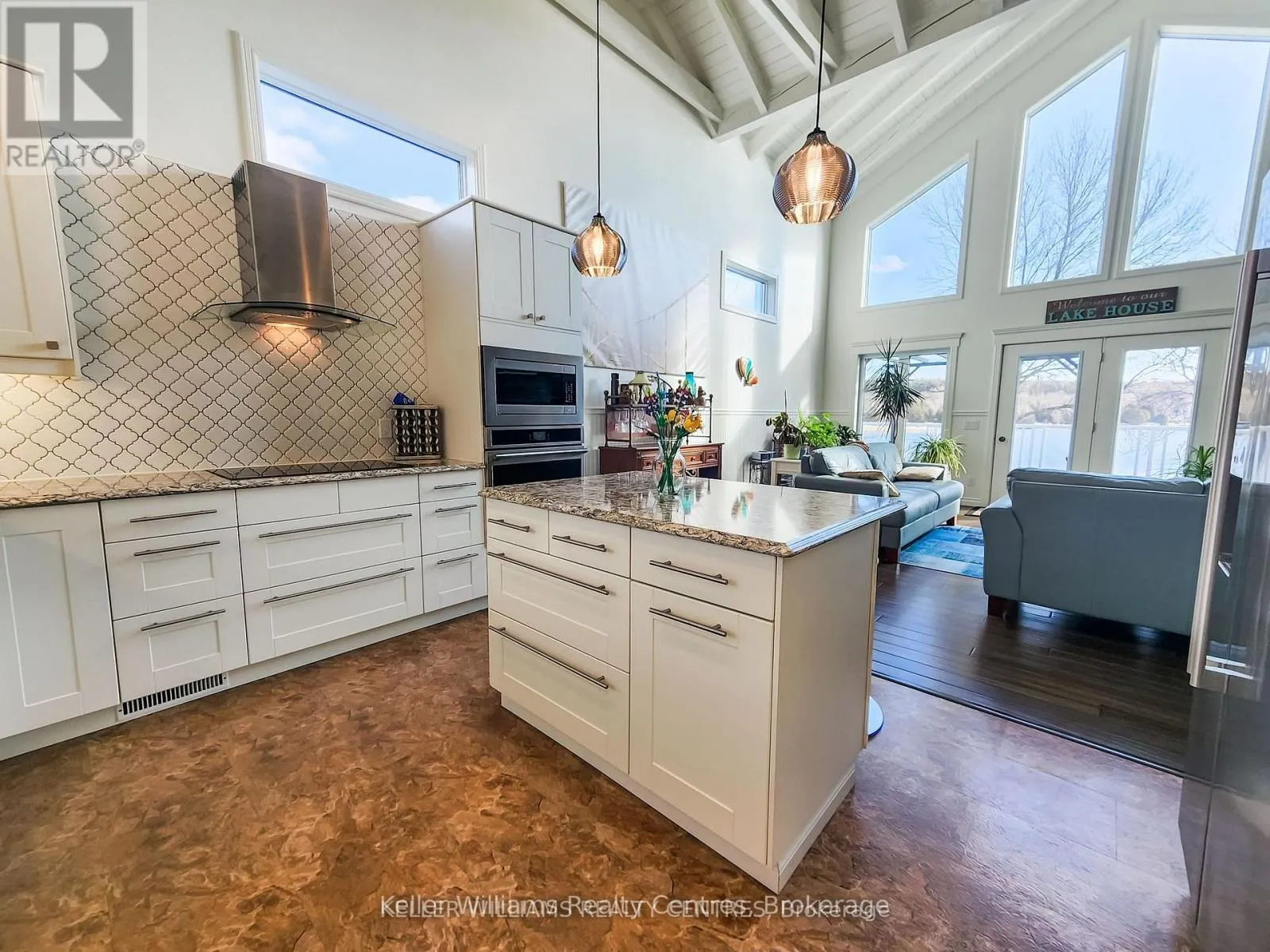 Cross Streets: Channel Rd and North Shore Road. ** Directions: #74 North Shore Road, North Bruce Peninsula. Discover the pinnacle of waterfront luxury on the Bruce Peninsula with this exquisite custom-built home, crafted in 2014. This property epitomizes elegance, set against the tranquil backdrop of Little Lake with 100 ft of pristine shoreline. Ideal for swimming and boating, it comes fully equipped with dock sections, ensuring a premium waterfront experience with direct access to Georgian Bay through a dredged channel and described as a "safe harbor" by our OPP. Spanning 3,621 sq. ft. across three finished levels, the home offers three bedrooms, three bathrooms, 2 kitchens and unparalleled living spaces. Interior highlights include bamboo flooring, Cambria quartz countertops, and a comprehensive stainless steel appliance package. The layout is thoughtfully designed for both privacy and entertainment, featuring 20 ft high ceilings on the main floor with beams that evoke a very nautical feel, adding to the home's unique charm. At the heart of this home is a majestic stone, floor-to-ceiling, see-through propane fireplace. The primary bedroom suite boasts sweeping water views, a private balcony with composite decking, and glass railings. The outdoor living space is equally impressive, featuring a partially covered deck that overlooks the water, offering breathtaking views. The property includes a cozy TV room with water vistas, a spacious lower level walkout with a second kitchen, and ample space for recreational activities, perfect for extended family or guests. Less than a year old Continental furnace. Additionally, a 22x30 detached garage and abundant storage cater to all seasonal needs. Nestled in the delightful community of Barrow Bay, this home is not just a residence but a retreat, offering a lifestyle where serene beauty meets luxury. Experience a new standard of living in this waterfront gem, where every detail is meticulously crafted for comfort and elegance. (id:27476)