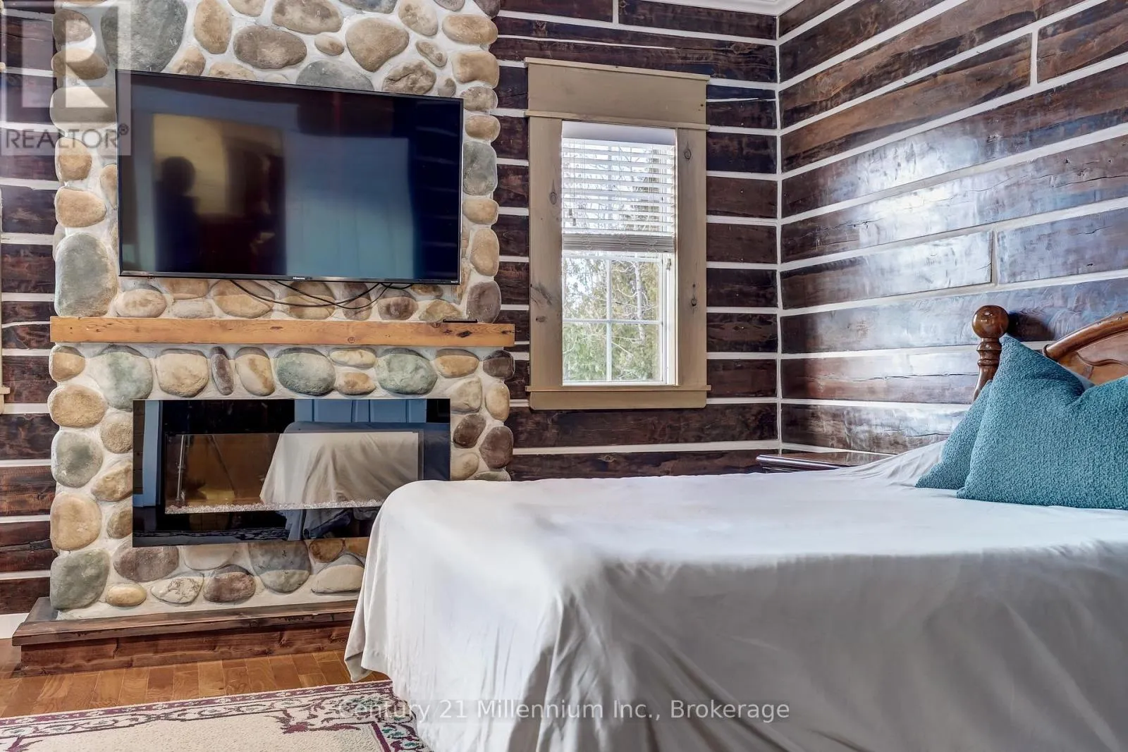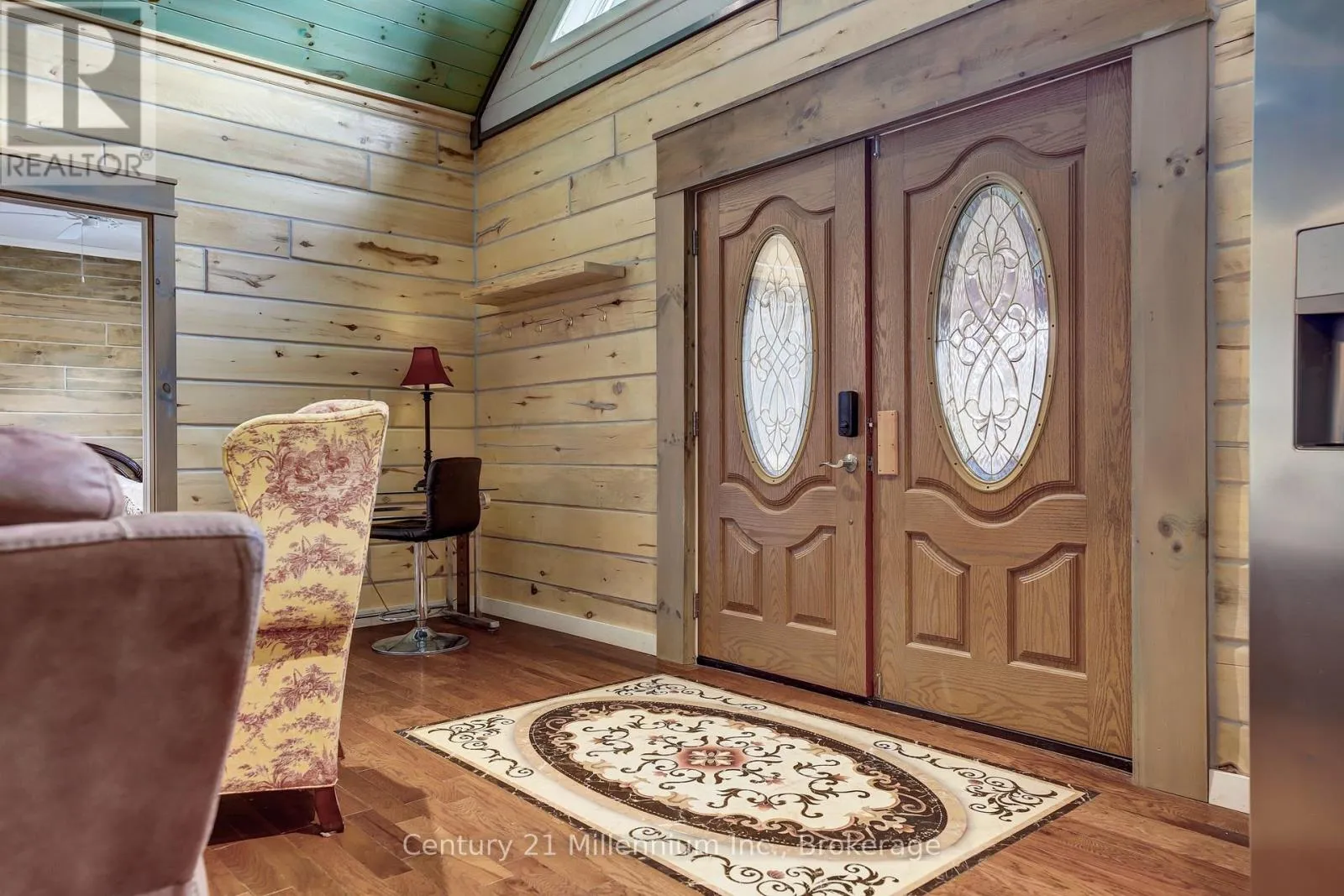Cross Streets: Highway 6. ** Directions: North on Hwy 6 to Tobermory, East on Maple Golf Crescent, #25 on Left. Welcome to 25 Maple Golf Crescent! This log home, built in 2019 on a solid ICF foundation, sits on just over an acre, offering privacy and space in a sought-after Tobermory location. Set back from the road, the property provides a quiet retreat while still being just minutes from local attractions. A screened porch and back deck give you plenty of space to enjoy the outdoors. Inside, high ceilings, unique wood features, and an open-concept layout make one-floor living feel effortless.The primary bedroom suite sits on one side of the house, featuring a river rock floor-to-ceiling feature wall and a cupola that adds character and light. On the other side, two guest bedrooms share a convenient 2-piece bathroom, creating separation and privacy for everyone. The kitchen is equipped with granite countertops and stainless steel appliances, opening to the family room and living area, which features a propane fireplace. The main bathroom includes a freestanding tub and walk-in glass shower. There is a large removable garage structure with hydro, perfect for hobbies, gardening, or extra workspace. Just 20 minutes to the Grotto, 5 minutes to Signing Sands Beach, and a short drive to downtown Tobermory, this property combines privacy with easy access to everything the area has to offer! (id:27476)