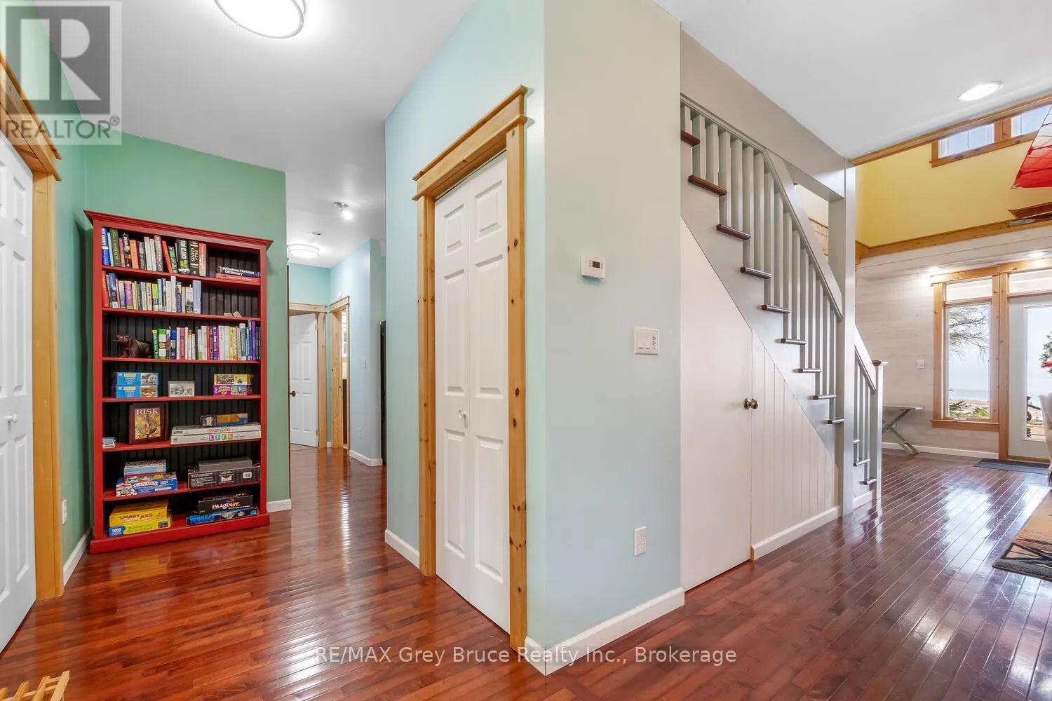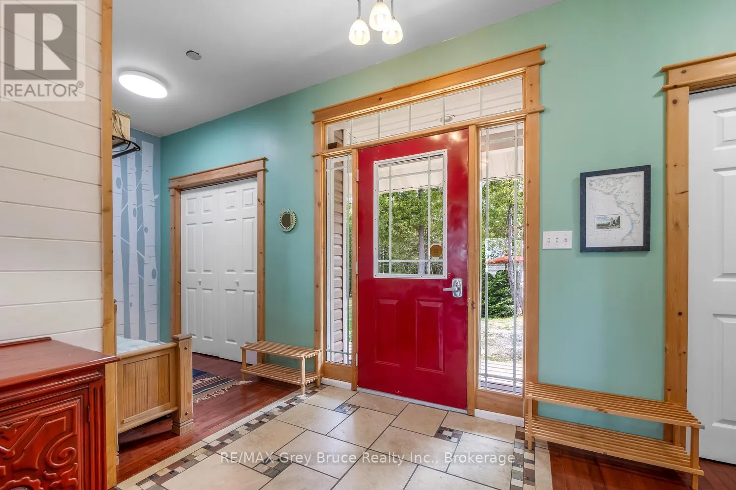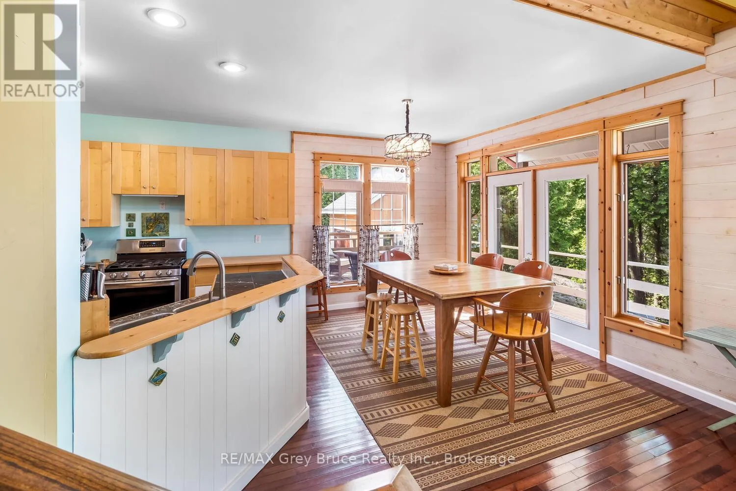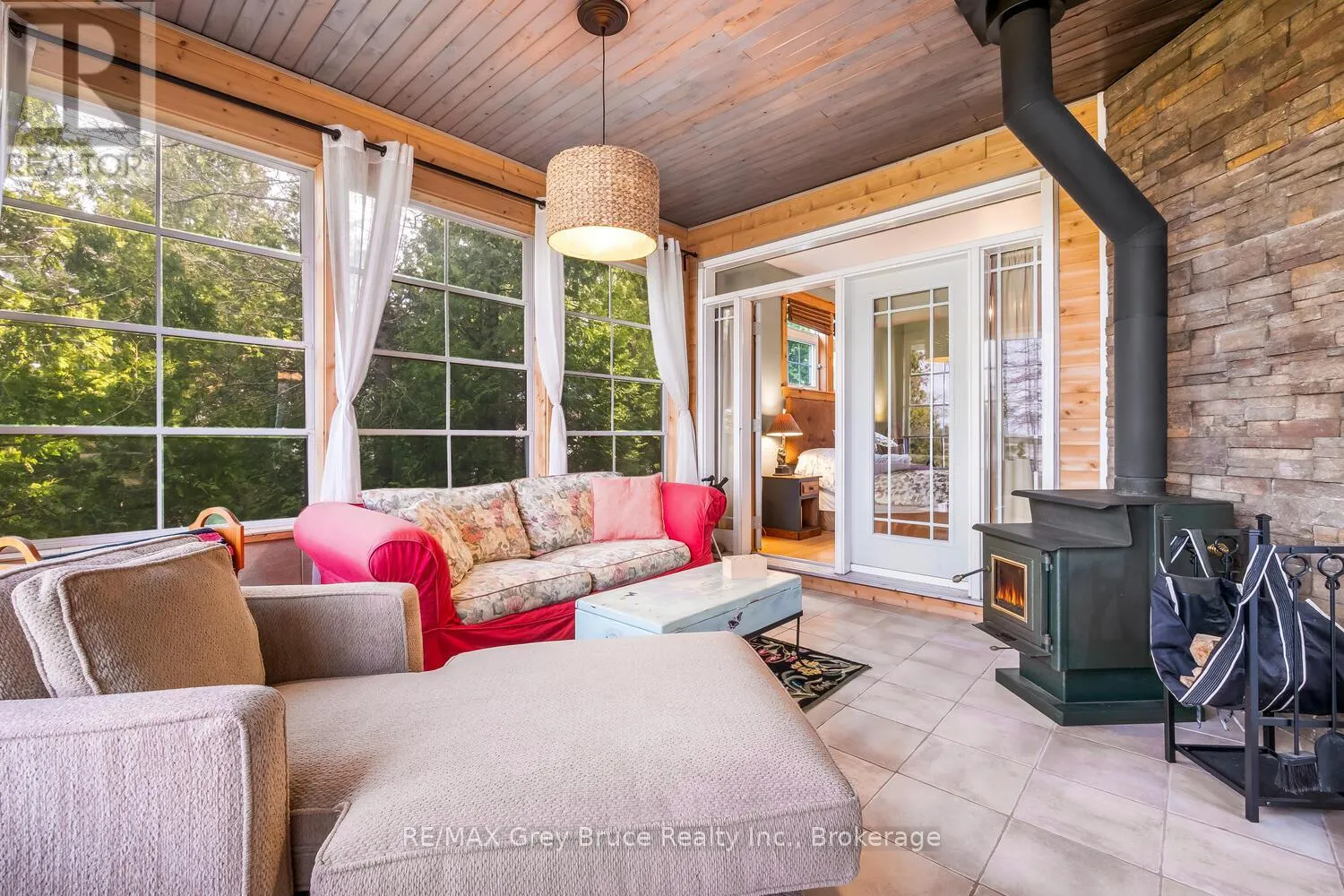 Cross Streets: Warner Bay Rd & Eagle Rd. ** Directions: Travel North on Highway 6, Turn Left on Warner Bay Rd, Follow to the T. Turn Left onto Eagle Rd. Property will be on the Right. #205. Turn-key Lakefront Home/Cottage with Sandy Shoreline! Your Bruce Peninsula retreat near Tobermory awaits. Offering a rare sandy beach shoreline in a protected cove, this property is perfect for family getaways, weekend retreats or retirement living. Sited a short drive to Tobermory and directly across from the Bruce Peninsula National Park, this property delivers the ultimate four-season recreational lifestyle. Arrive via a winding, tree-lined driveway and step into a serene setting with panoramic lake views and spectacular sunsets. Enjoy outdoor living with expansive decks, a stone waterfront patio, and covered porches - ideal for relaxing, entertaining, or soaking in the natural surroundings. The clean, sandy-bottom waterfront offers easy entry for all ages-perfect for swimming, kayaking, paddleboarding, and endless summer fun. Evenings are made for campfires by the shore, with the gentle sound of waves completing the experience. Inside, this thoughtfully designed 3 bedroom, 2-bathroom home/cottage features a bright kitchen, dining, and living area with vaulted ceilings. A double-sided fireplace adds warmth and ambiance to both the living room and primary bedroom retreat. The main floor includes a spacious secondary bedroom, a full bath, plus a private primary suite with ensuite and walkout to a screened three-season sunroom. A perfect getaway for morning coffee or quiet evenings by the woodstove. The loft-style bedroom is a dream for kids, with space for bunk beds and play, or consider use as a home office, taking in the elevated lake views. Additional features include a detached garage with loft space for storage. Offered fully furnished (turnkey), this is a ready-to-enjoy waterfront property in one of Ontario's premier cottage country destinations. Close to hiking the Bruce Trail, the Grotto, Georgian Bay, and Lake Huron - this is your gateway to adventure and relaxation. (id:27476)