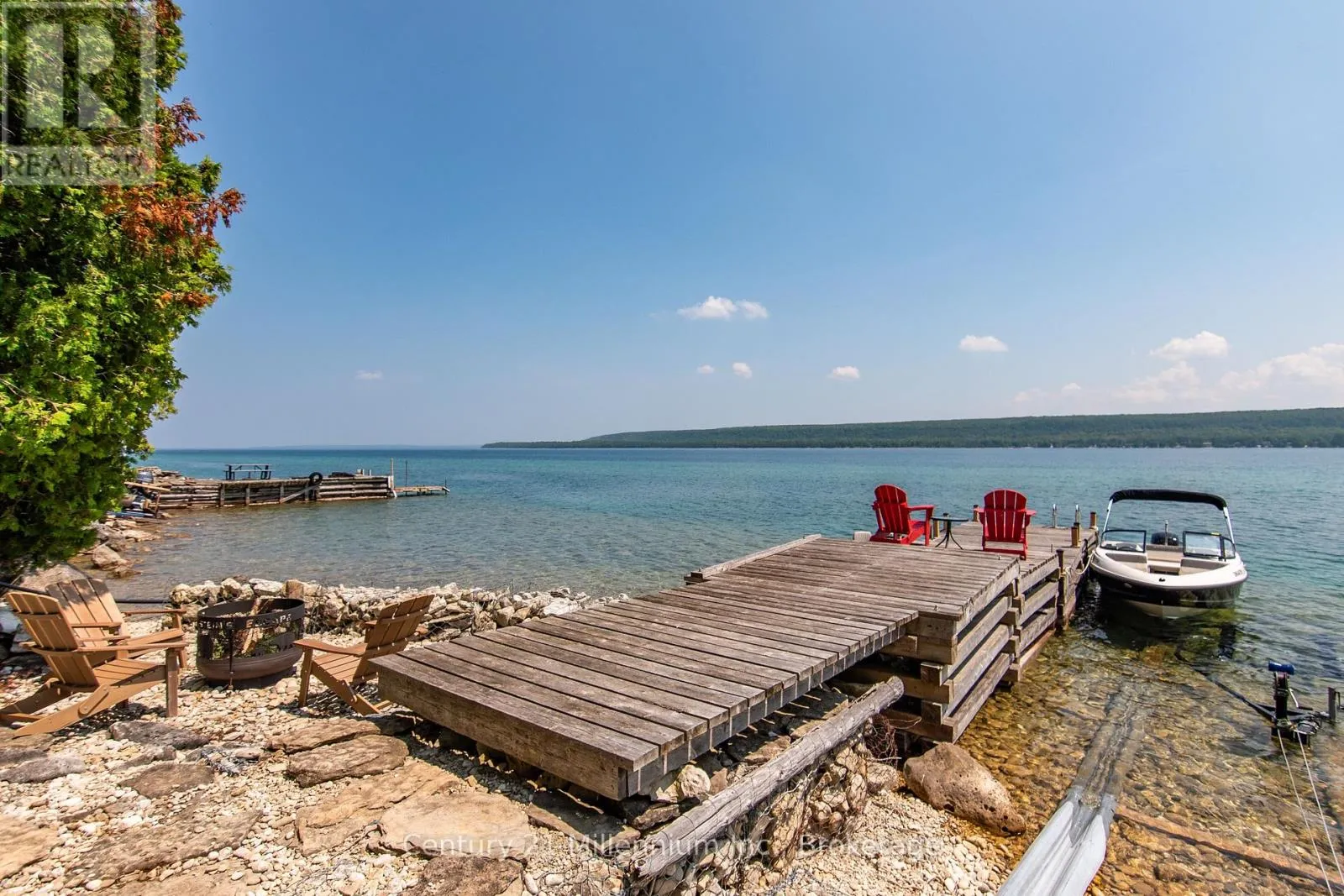 Cross Streets: Beech St. ** Directions: North on Hwy 6 past Wiarton, Merge right on Bruce Road 9, Follow North to Hope Bay and turn right, Bottom of the hill turn Left on Water St, Follow to public parking on the left. Walk along Water St and take the very accessible trail. Cottage life is calling! Come experience why Hope Bay is one of the Bruce Peninsula's most beautiful locations. Welcome to your private, turnkey waterfront escape on the sparkling shores of Hope Bay, where natural beauty surrounds you in every direction. Access is simple, scenic, and part of the charm. From the parking area, enjoy a short, peaceful walk (under 10 min) along a beautiful, well-established trail that leads you right to your cottage. Prefer the water? Aluminum boat w/ 20HP Yamaha power tilt motor is included, an easy launch at the parking area-making it just a 1-min ride along the shore to your dock. It's effortless, flexible, and adds to the sense of true getaway privacy. Perched above the trees with sweeping views of the bay and escarpment, this cottage captures everything you imagine in a classic Canadian retreat-peaceful, charming, and naturally stunning. Rebuilt in 2016, the cottage is a true showstopper. Expansive windows and a wraparound deck bring the outdoors in, perfect for soaking in sunrise coffees, sunset views, and easy summer entertaining. Inside, warm pine finishes, hardwood floors, and soaring ceilings create an inviting atmosphere. A pellet stove set into a beautiful stone feature wall adds the perfect cozy touch for cooler evenings. The open-concept layout is ideal for gathering, and the thoughtfully designed kitchen blends seamlessly with the natural surroundings. With three separate sleeping spaces-the main bedroom, loft, and charming bunkie, there's plenty of room for family and guests. The cottage and bunkie are fully insulated with heating and cooling, extending your enjoyment well beyond the summer months. Down at the shoreline, you'll find a solid 50-foot crib dock-no seasonal hassle-plus two boat rails for easy access on and off the water.The generous 100 x 300 ft lot offers exceptional privacy, along with direct access to the Bruce Trail, putting world-class hiking right at your doorstep. Accessible in all seasons! (id:27476)