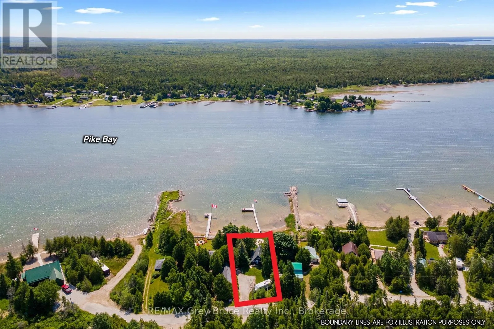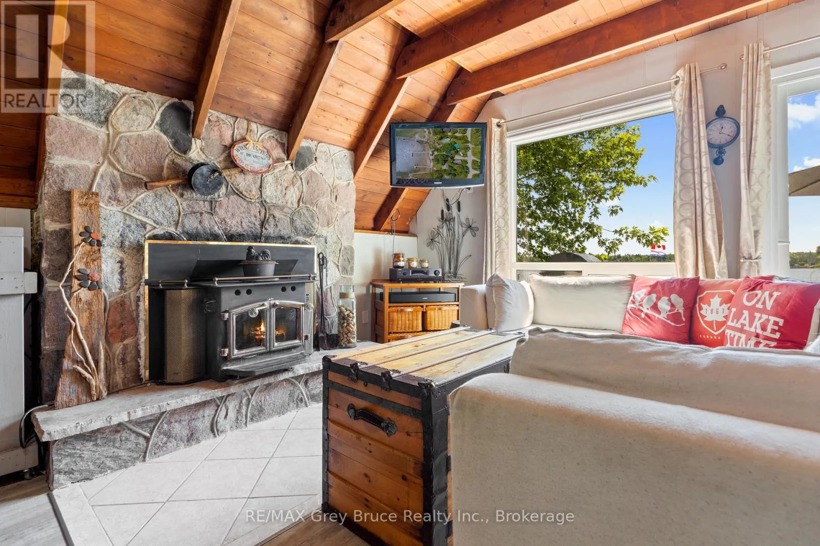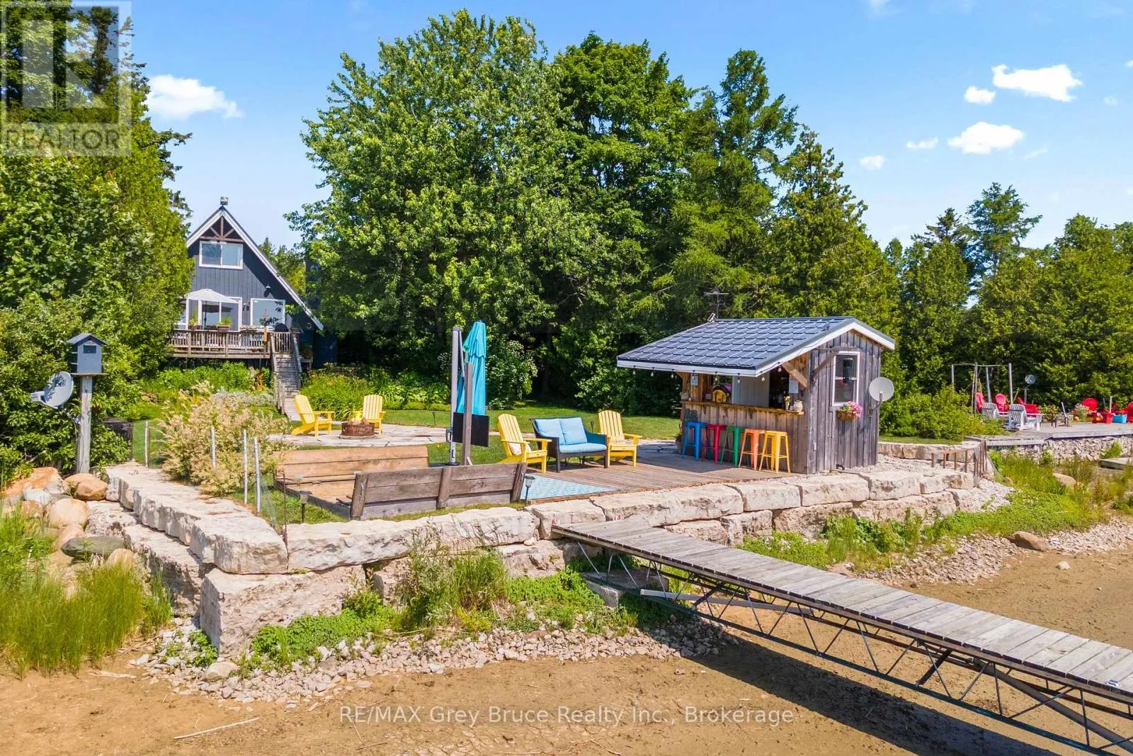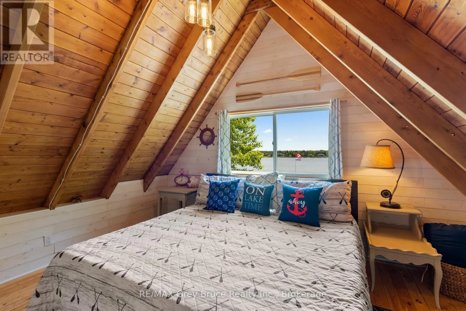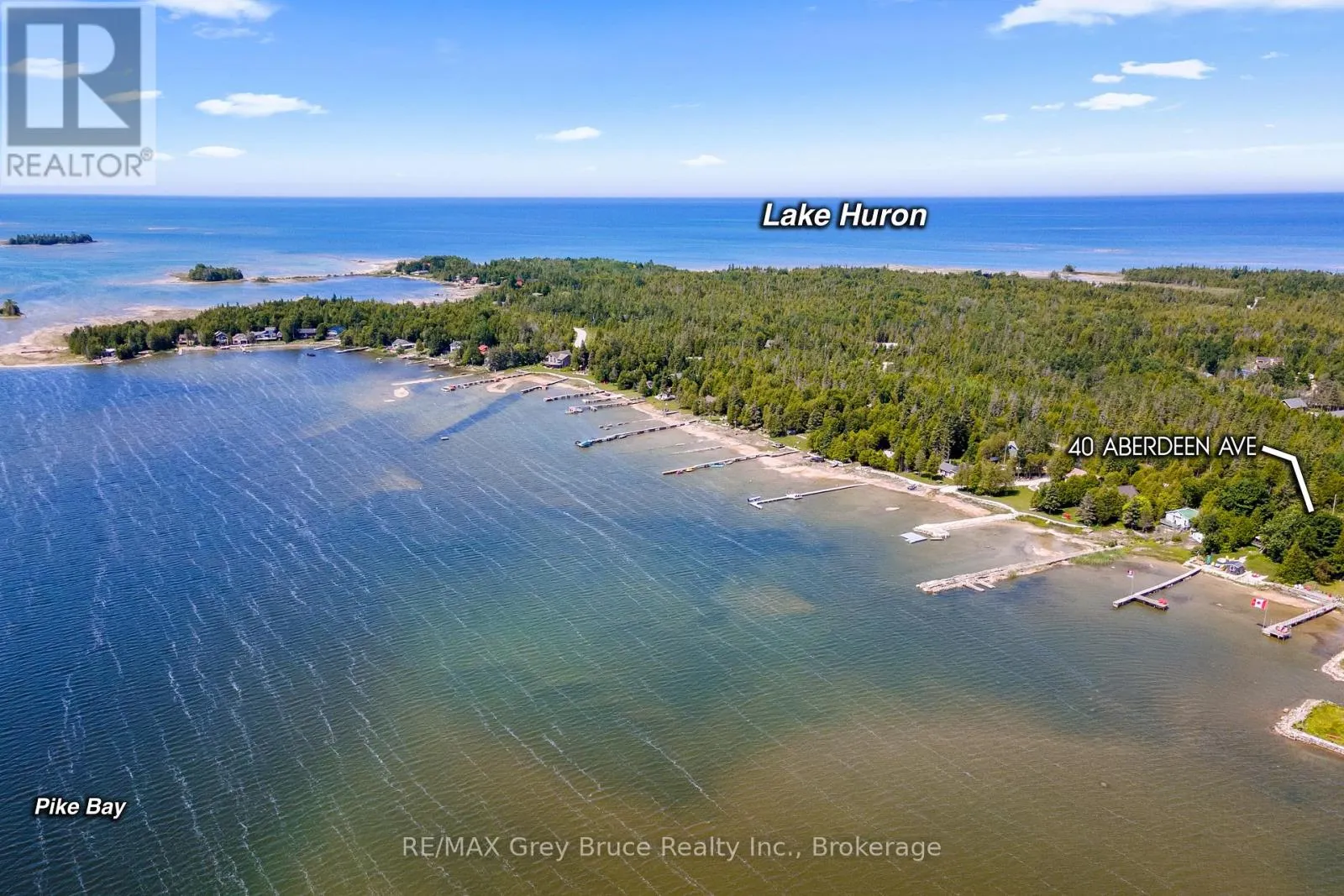 Cross Streets: Widgeon Cove Rd & Aberdeen Ave. ** Directions: Head North on Hwy 6, Turn Left on Pike Bay Rd, Turn Left to stay on Pike Bay Rd, Turn Right on Widgeon Cove Rd, Turn Left on Aberdeen Ave., Look for Signs. Welcome to 40 Aberdeen Avenue a beautifully updated 3-bedroom, 1-bathroom home-away-from-home tucked along the north shore of Pike Bay. Both the property and cottage feature many new updates including but not limited to; new septic system (2025), new steel roof (2019), upgraded insulation (ceiling & walls in 2019, crawl space fully insulated 2026), professional Armour Stone landscaping (2020), new kitchen island and countertops (2024), updated bathroom (2024), refinished floors (2018 on 2nd floor & 2024 for main floor), and much more! The waterfront is an entertainers dream, featuring a Tiki Bar (with power and water), large flagstone fire pit, long wooden dock, private boat launch, water-side deck, and even a sand pit for the kids! Located near the end of a quiet road this private retreat offers a blend of comfort, character, and thoughtful upgrades! The perfect place for relaxing getaways and memory-filled adventures. Inside the chalet / A-frame style layout features a cozy open-concept living area anchored by a beautiful stone fireplace and sweeping views of Lake Huron. Upstairs has spacious bedrooms featuring refinished floors, shiplap walls, and live-edge shelving, creating a warm and rustic feel with modern style. The property is well treed offering lots of privacy! The cottage is being offered fully furnished and move-in ready, here is your chance to enjoy the best of Bruce Peninsula! (id:27476)