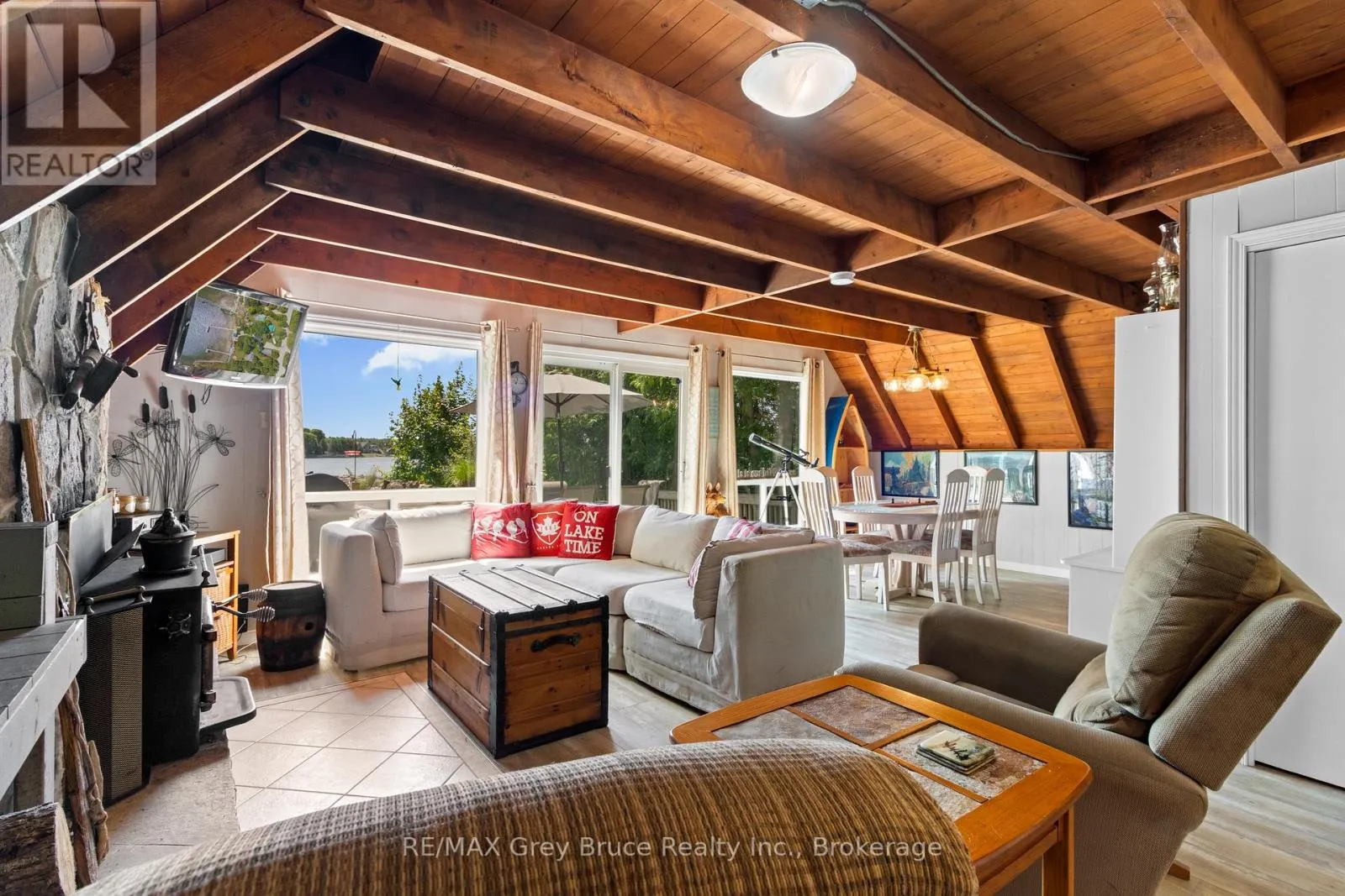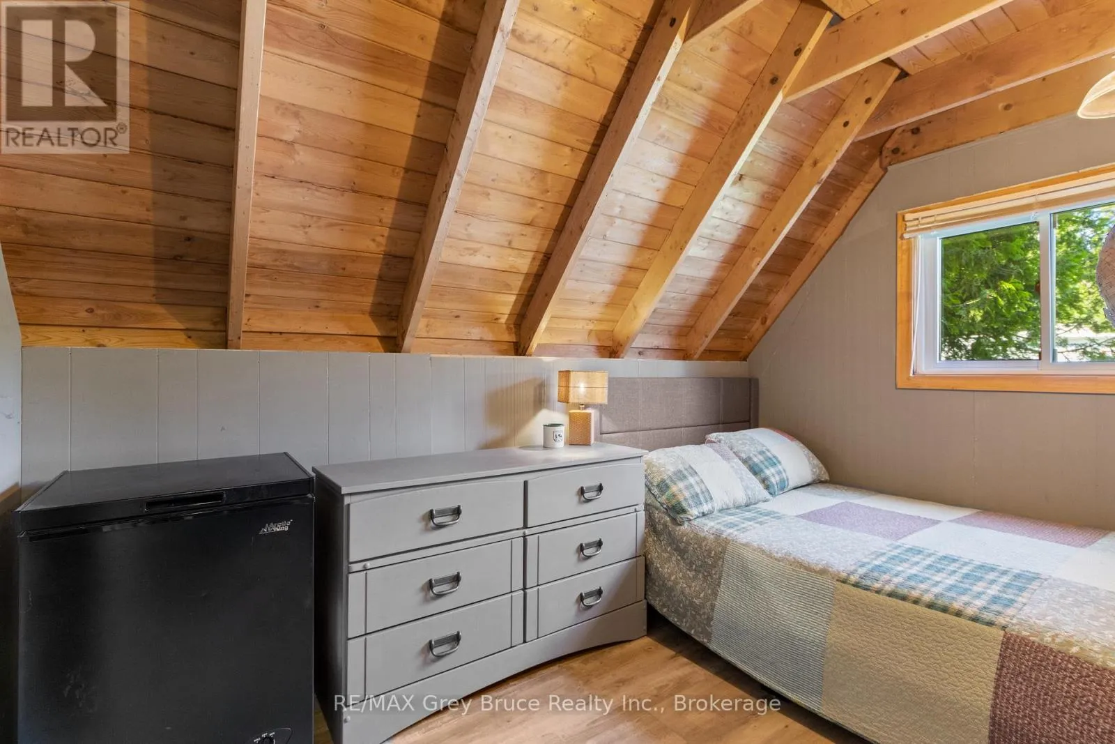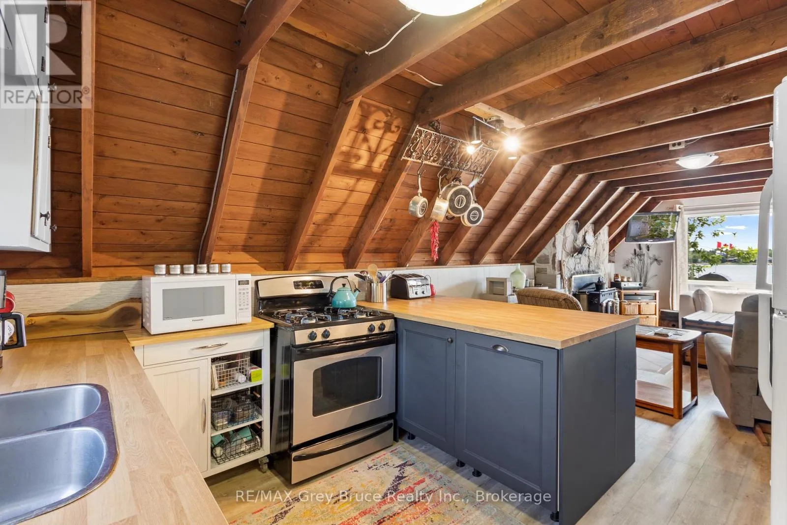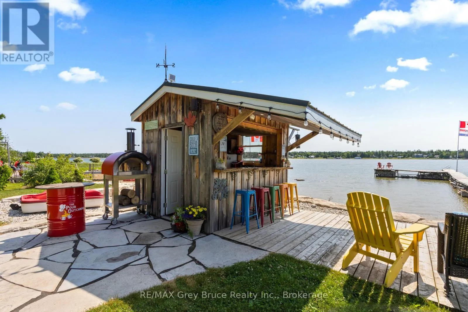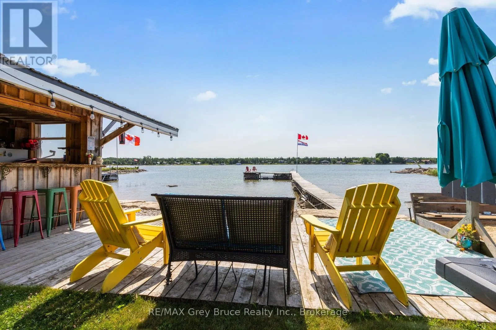 Cross Streets: Widgeon Cove Rd & Aberdeen Ave. ** Directions: Head North on Hwy 6, Turn Left on Pike Bay Rd, Turn Left to stay on Pike Bay Rd, Turn Right on Widgeon Cove Rd, Turn Left on Aberdeen Ave., Look for Signs. Welcome to 40 Aberdeen Avenue a beautifully updated 3-bedroom, 1-bathroom home-away-from-home tucked along the north shore of Pike Bay. Both the property and cottage feature many new updates including but not limited to; new septic system (2025), new steel roof (2019), upgraded insulation (ceiling & walls in 2019, crawl space fully insulated 2026), professional Armour Stone landscaping (2020), new kitchen island and countertops (2024), updated bathroom (2024), refinished floors (2018 on 2nd floor & 2024 for main floor), and much more! The waterfront is an entertainers dream, featuring a Tiki Bar (with power and water), large flagstone fire pit, long wooden dock, private boat launch, water-side deck, and even a sand pit for the kids! Located near the end of a quiet road this private retreat offers a blend of comfort, character, and thoughtful upgrades! The perfect place for relaxing getaways and memory-filled adventures. Inside the chalet / A-frame style layout features a cozy open-concept living area anchored by a beautiful stone fireplace and sweeping views of Lake Huron. Upstairs has spacious bedrooms featuring refinished floors, shiplap walls, and live-edge shelving, creating a warm and rustic feel with modern style. The property is well treed offering lots of privacy! The cottage is being offered fully furnished and move-in ready, here is your chance to enjoy the best of Bruce Peninsula! (id:27476)