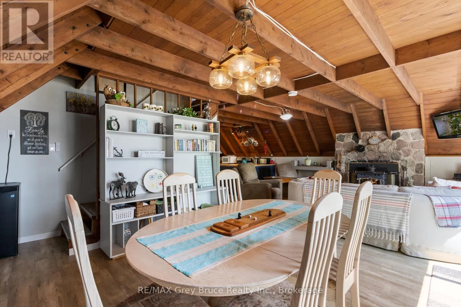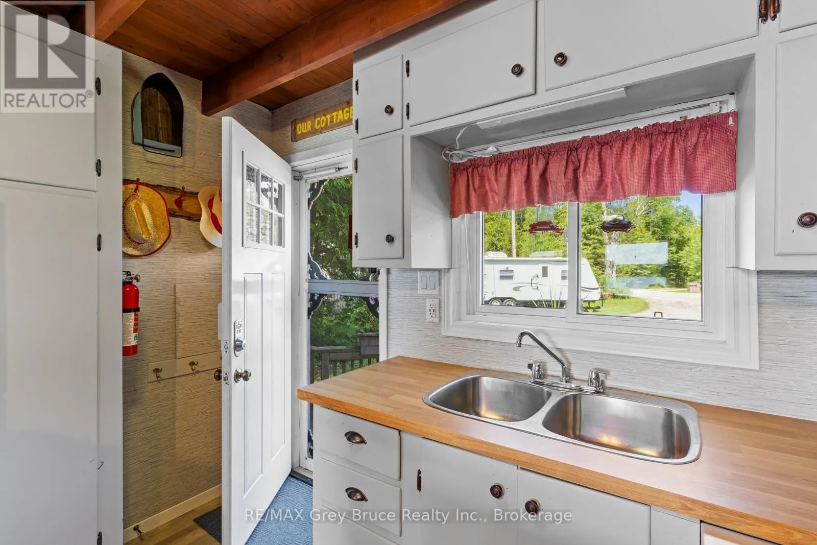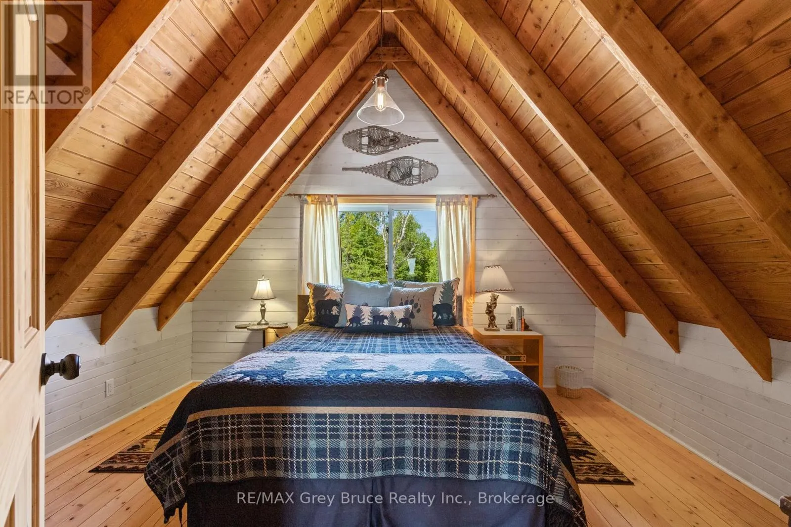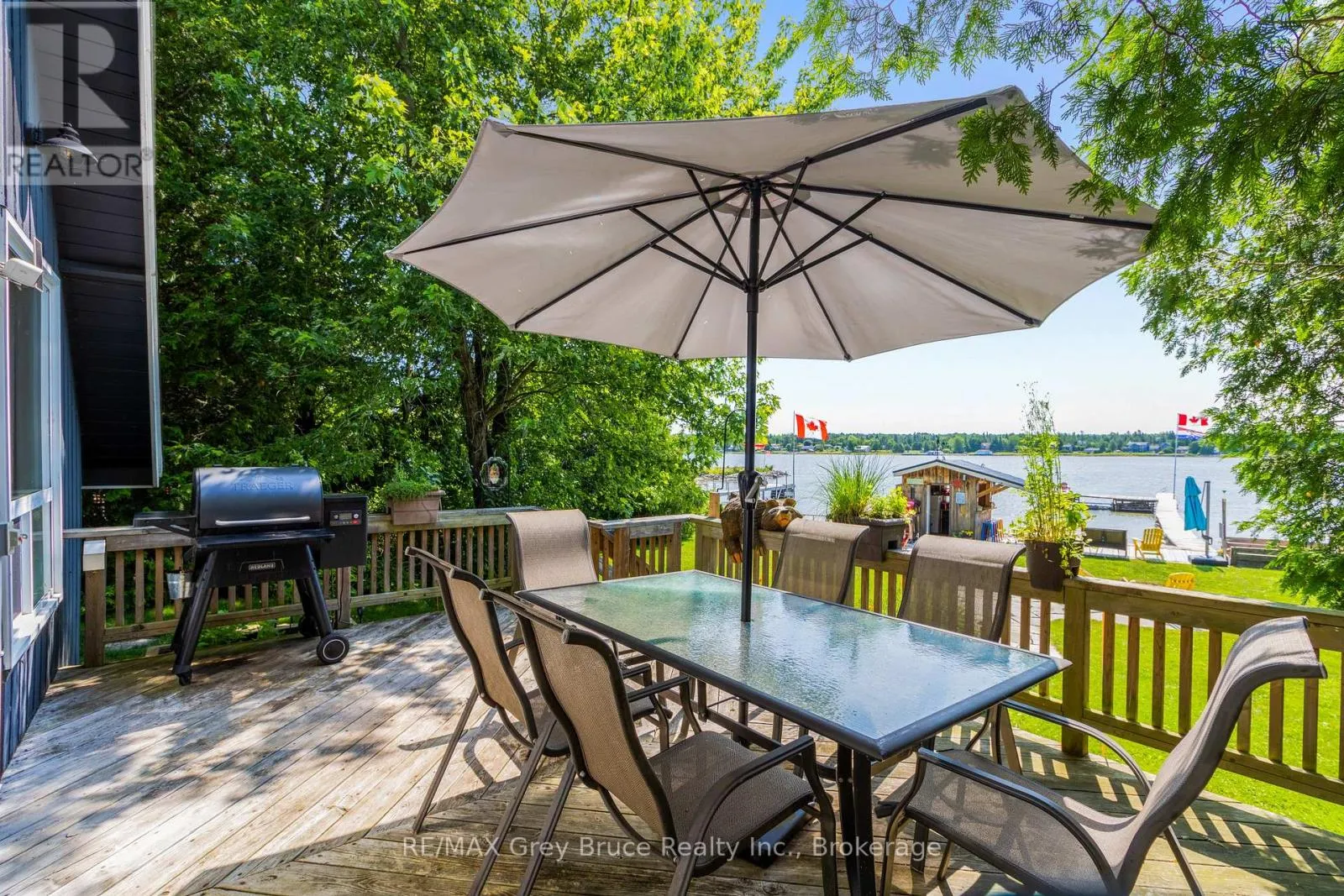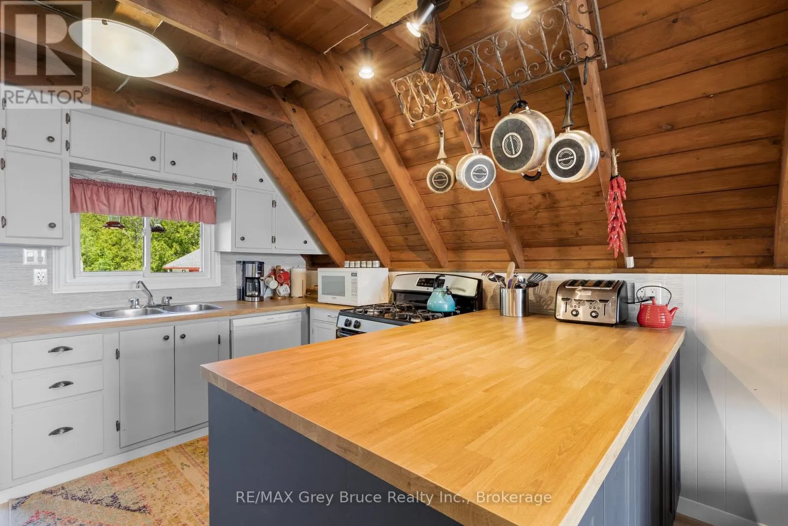Cross Streets: Widgeon Cove Rd & Aberdeen Ave. ** Directions: Head North on Hwy 6, Turn Left on Pike Bay Rd, Turn Left to stay on Pike Bay Rd, Turn Right on Widgeon Cove Rd, Turn Left on Aberdeen Ave., Look for Signs. Welcome to 40 Aberdeen Avenue a beautifully updated 3-bedroom, 1-bathroom home-away-from-home tucked along the north shore of Pike Bay. Both the property and cottage feature many new updates including but not limited to; new septic system (2025), new steel roof (2019), upgraded insulation (ceiling & walls in 2019, crawl space fully insulated 2026), professional Armour Stone landscaping (2020), new kitchen island and countertops (2024), updated bathroom (2024), refinished floors (2018 on 2nd floor & 2024 for main floor), and much more! The waterfront is an entertainers dream, featuring a Tiki Bar (with power and water), large flagstone fire pit, long wooden dock, private boat launch, water-side deck, and even a sand pit for the kids! Located near the end of a quiet road this private retreat offers a blend of comfort, character, and thoughtful upgrades! The perfect place for relaxing getaways and memory-filled adventures. Inside the chalet / A-frame style layout features a cozy open-concept living area anchored by a beautiful stone fireplace and sweeping views of Lake Huron. Upstairs has spacious bedrooms featuring refinished floors, shiplap walls, and live-edge shelving, creating a warm and rustic feel with modern style. The property is well treed offering lots of privacy! The cottage is being offered fully furnished and move-in ready, here is your chance to enjoy the best of Bruce Peninsula! (id:27476)