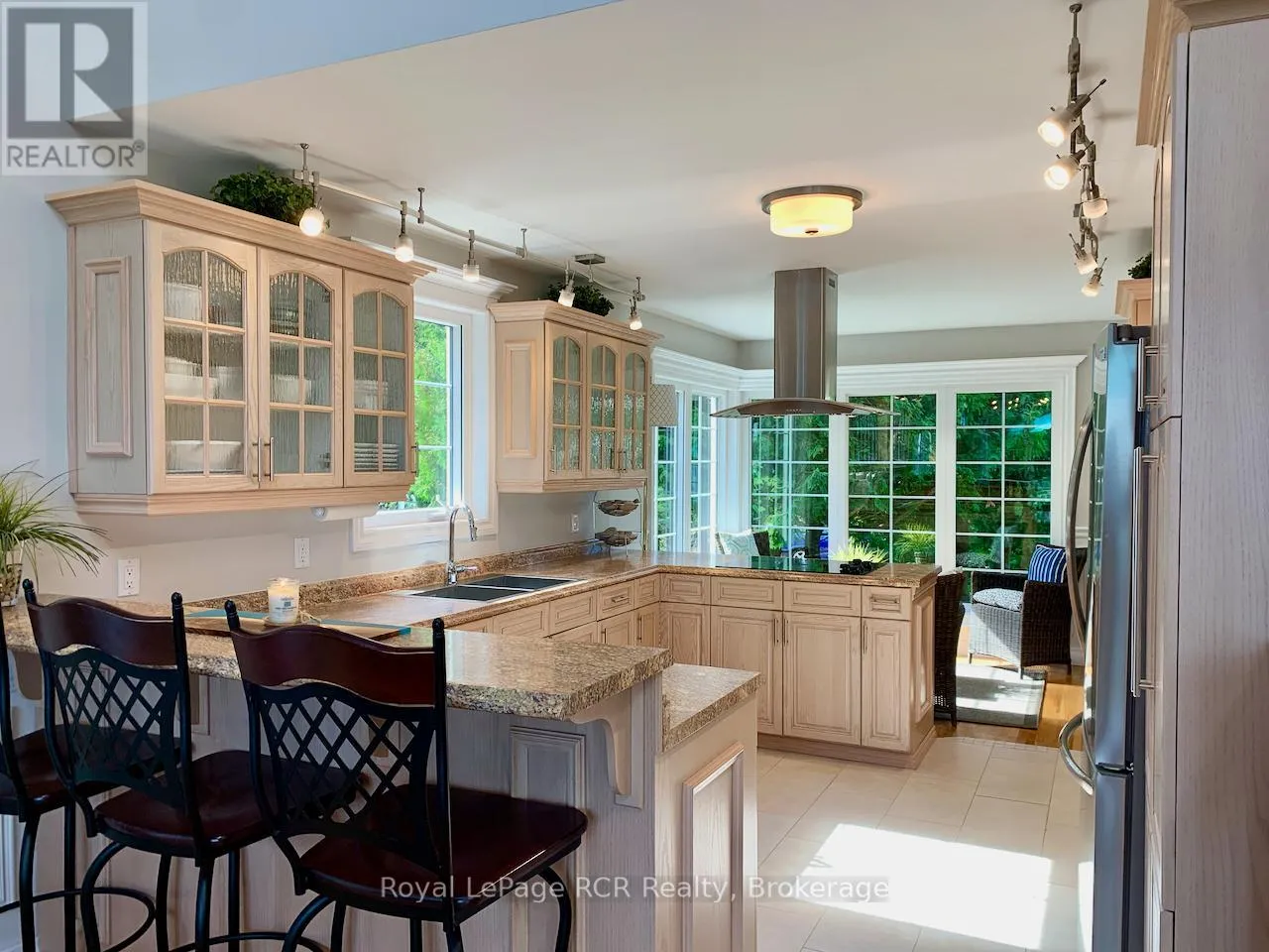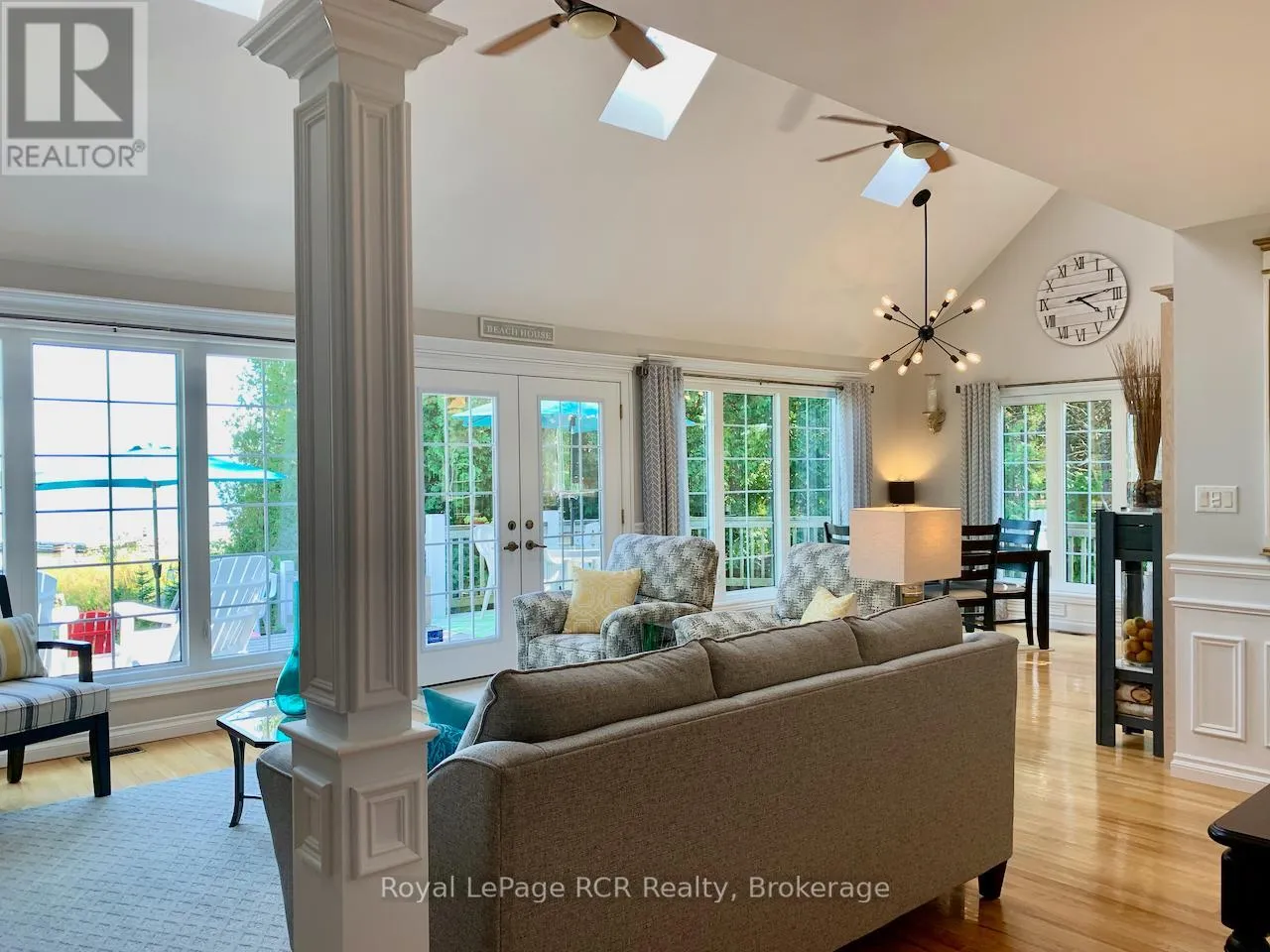 North on Hwy 6 from Wiarton to Lindsay Rd 30, turn left towards Lake Huron follow to stop sign, right on Pine Tree Harbour Rd and follow to #127 on left side. 127 Pine Tree Harbour Rd ... is this FABULOUS PROPERTY on the Shores of LAKE HURON on the Bruce Peninsula or Martha's Vineyard? With HIGH-LEVEL BEACH-HOUSE FINISHES inside and out ... at first glance it's hard to tell! OVER 3,000 SQ FT of designer interior finishes - each room impeccably transformed to a MAGAZINE WORTHY custom WATERFRONT home... COASTAL BLEACHED OAK CABINETRY in the open concept KITCHEN with BUILT-IN NEW APPLIANCES, Great Room with VAULTED CEILING & SKYLIGHTS, custom MODERN WOOD / METAL RAILINGS in loft & staircase, Crisp WHITE FINISHES throughout, 3 large bedrooms (2 w/PRIVATE BALCONIES), 3 full bathrooms, light-filled MASTER RETREAT with his/her walk-in closet area & ensuite privileges. 3 LEVELS of fully-finished living space. WATER VIEWS from most rooms. ALL NEW WINDOWS within 12 years, newer HIGH EFFICIENCY Forced air furnace & central air systems. Waterside ROOF NEW 2022. Almost a FULL ACRE property provides complete privacy. PROFESSIONALLY LANDSCAPED from road to shore with natural stone, greenery & tall grasses! 183ft of Lake Huron SHORELINE. CRYSTAL CLEAR swimming. Deep water with DOCKING AREA for boats. INCREDIBLE PROTECTED WATERFRONT area, offering open-water access boating exploration and inland areas for small craft exploration. Perfect mid-Peninsula location 20 mins to Lion's Head for shopping, 20 mins to Tobermory & Grotto, National Parkland right in Pine Tree area too. ATV and Snowmobile trails. Your new designer WATERFRONT HOME OR RETREAT awaits! (id:27476)