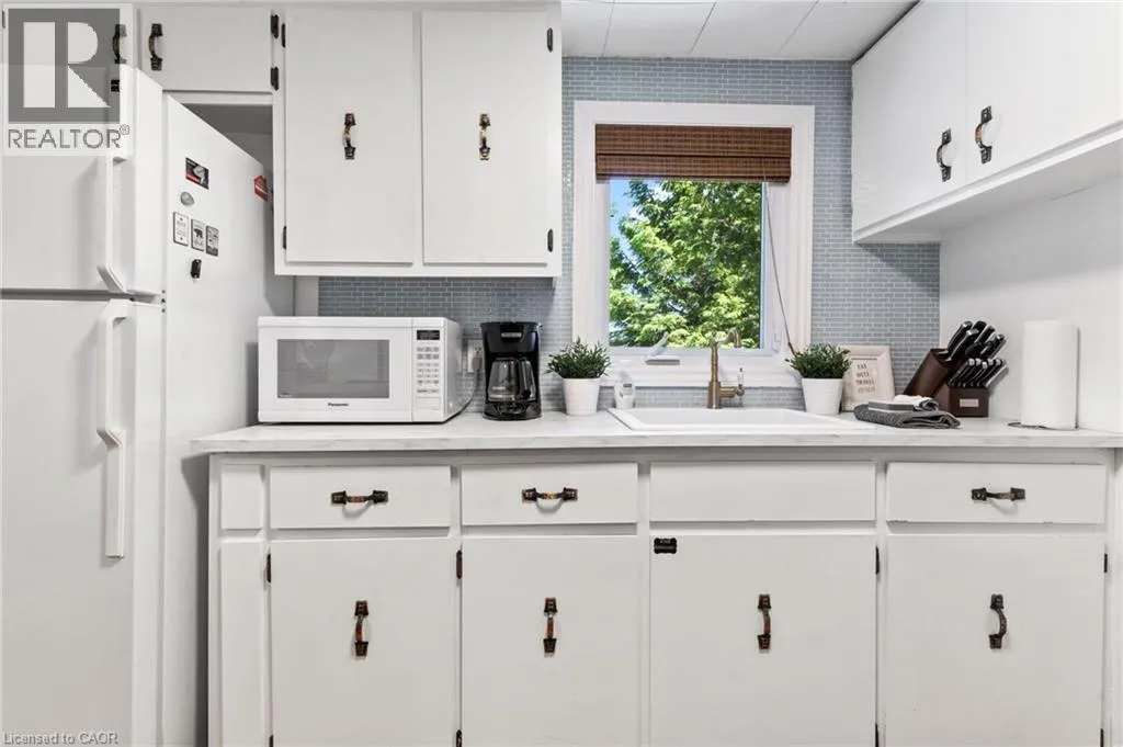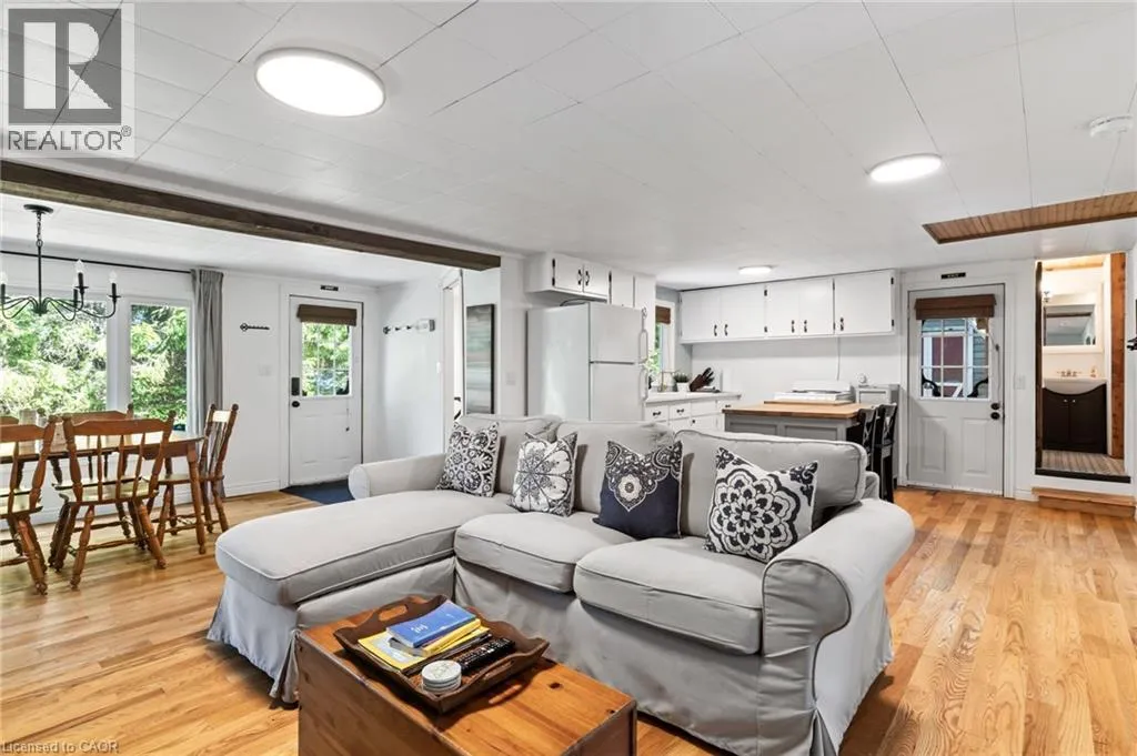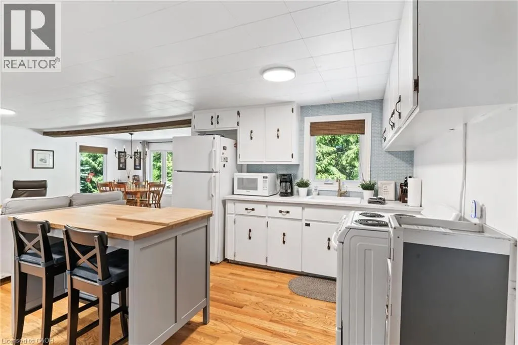 From Wiarton, turn left off of Hwy 6 onto Pike Bay Road, continue to the corner of Bear Track's Restaurant, turn left (also Pike Bay RD), turn right onto Widgeon Cove Road, continue towards the end. Welcome to your home away from home with stunning water views in Pike Bay. Situated towards the end of Widgeon Cove Road, stands this well-maintained 3-season cottage surrounded by the shores of Lake Huron, on a quiet road with no through traffic. Opportunities are plentiful as this property presents you the perfect getaway for you and your family. Enjoy the west facing views with perfect sunsets out back under the gazebo, and gorgeous sunrises out front. Water access is only steps away with surrounding water views, providing you the feeling of being waterfront in your own oasis. **Upgrades** 2023: Brand new Top-Of-The-Line Water Filtration System with Bradford White Hot Water Tank, Water Softener, Viqua UV, Air Over Media Filtration, 200 Gallon Holding Tank with Pump, New Well Pump & Pressure Tank. This cottage is Fully Furnished and ready for you to enjoy. (id:27476)