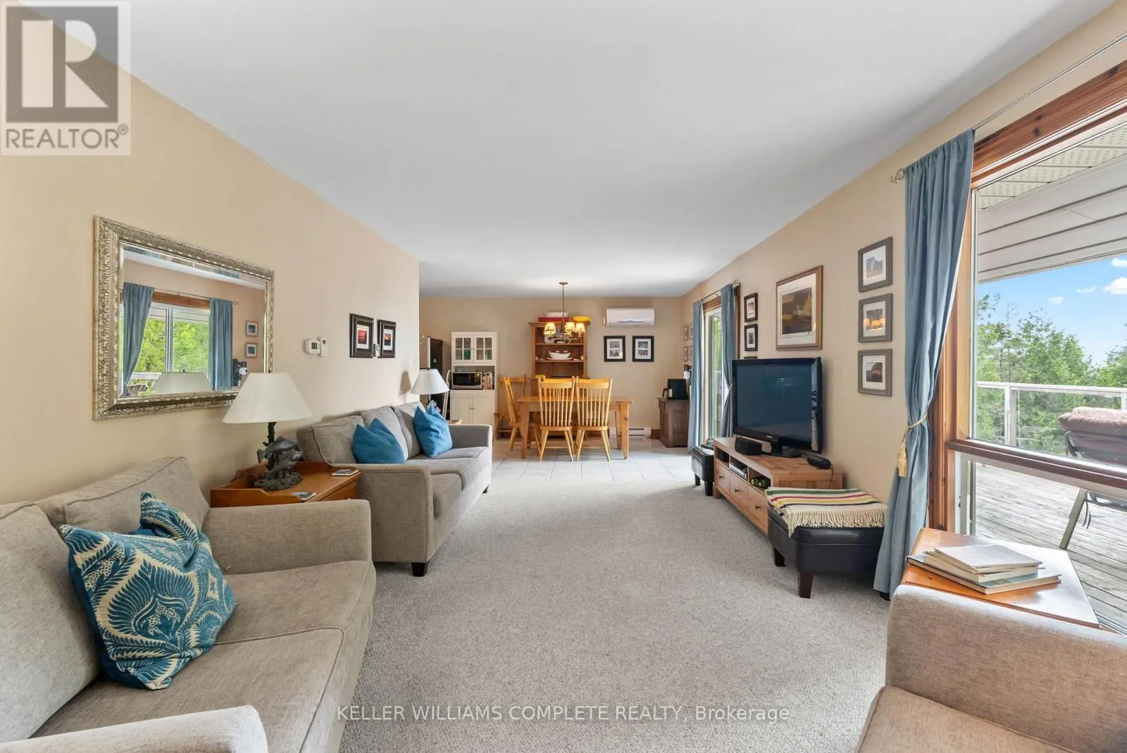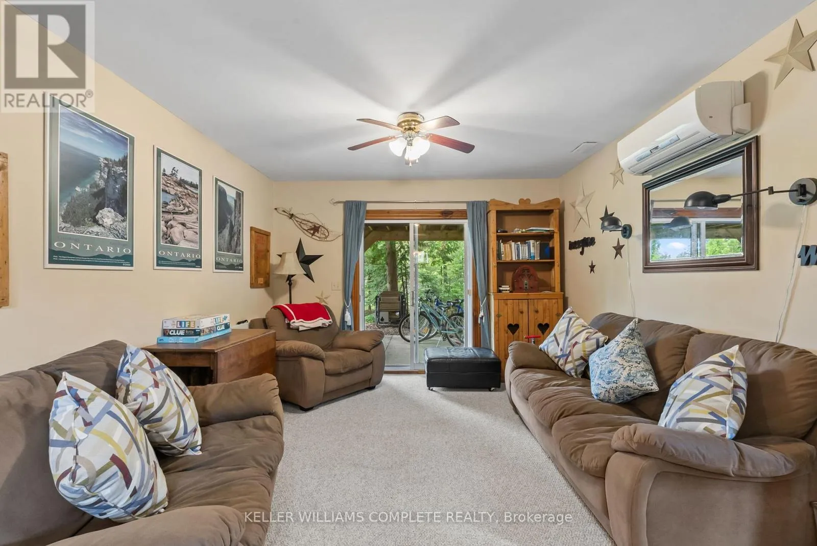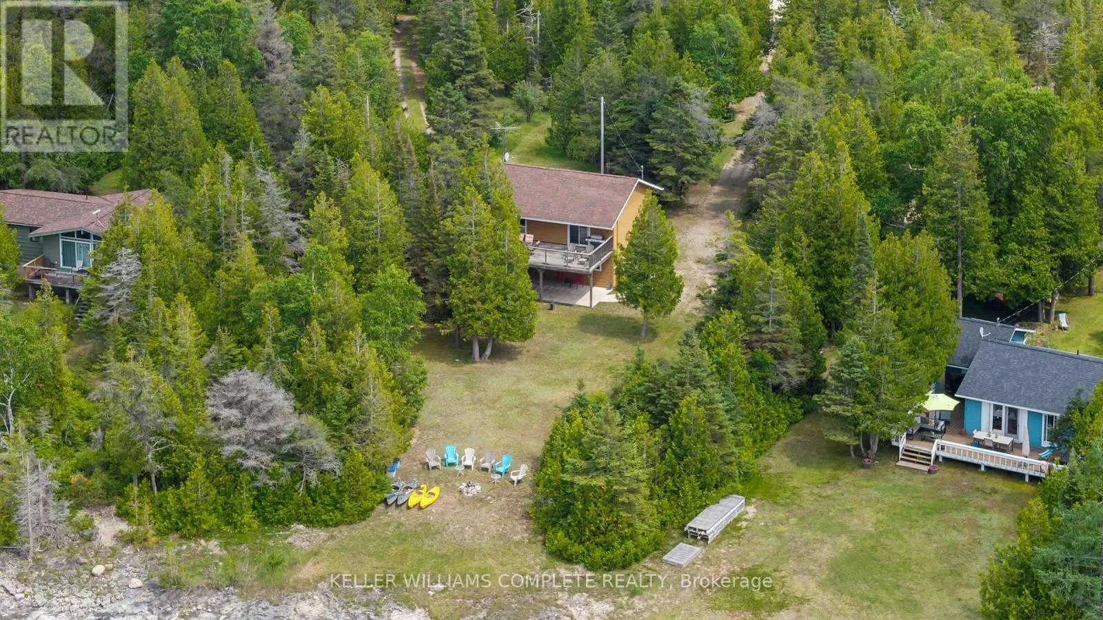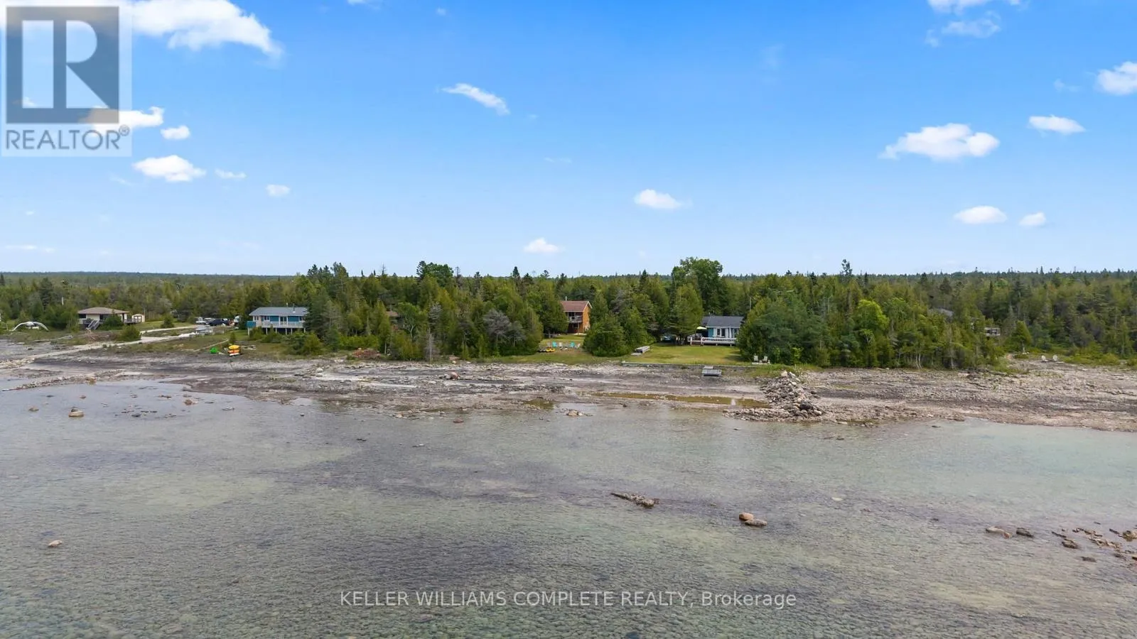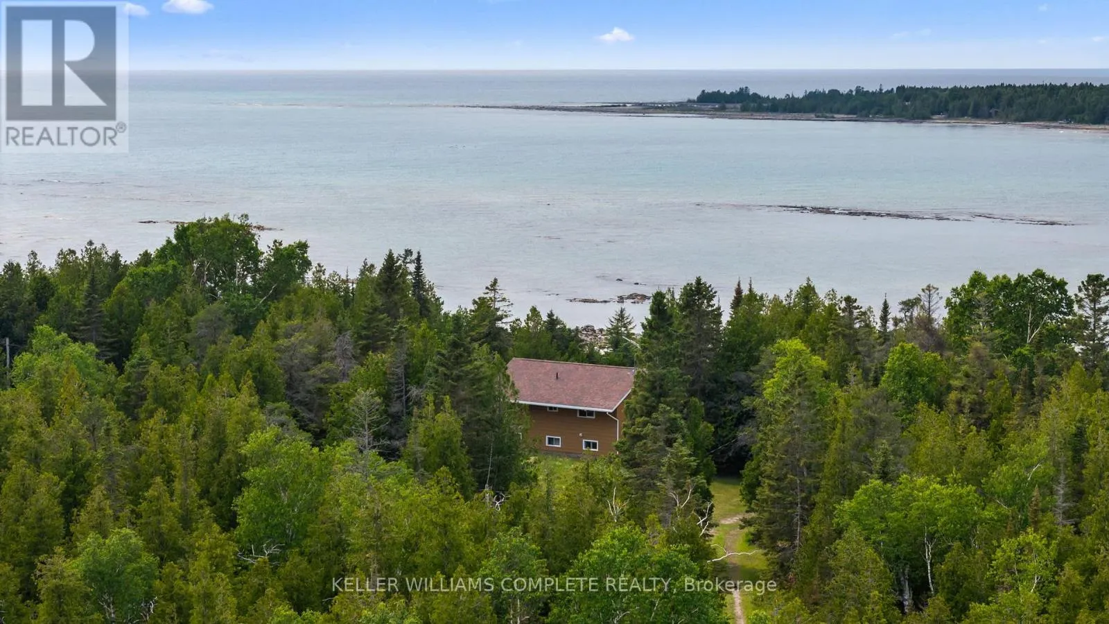Cross Streets: Johnsons Harbour Road. ** Directions: From Highway 6 N turn left on Johnsons Harbour Road then right onto Dorcas Bay Road. YEAR ROUND WATERFRONT LIVING IN TOBERMORY. This beautiful property is fully winterized and lovingly maintained by current owners, who have exclusively enjoyed it for their private use for many years. You'll have your own view of the Northern Bruce's famous stunning sunsets from your large back deck or seated by the fire right at the water. When you enter the residence from the spacious driveway you will find two bedrooms, an open living room, eating area and laundry space w/walkout to covered patio, plus a 3 pc bathroom. Upstairs is the large primary bedroom, recently renovated bathroom with heated floors, large, bright open living room/dining/kitchen that opens out onto your huge deck w/unobstructed views. All interior doors & trim handcrafted from local pine. The two levels could easily be separated for in-law suite. Heating and A/C provided by 3 high efficiency Mitsubishi mini-split air-sourced heat pumps. Heating back up provided by baseboard heaters & propane fireplace. Massive outdoor space with large flat open area suitable for outdoor sports & activities. Enjoy your own butterfly sanctuary in the large pollinator garden. New Roof in 2014, Exterior Professionally painted in 2025. Large Storage Shed. Most Furniture in included. Very quiet/private location & a short drive to the world famous Grotto, Singing Sands Beach or into town where you will find shopping, restaurants, boat tours & more. This is a truly exceptional property. (id:27476)