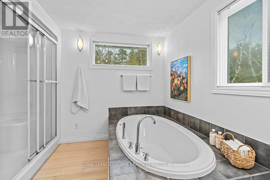 Cross Streets: Pedwll Dr. ** Directions: Heading North on Hwy 6 towards Tobermory, turn left onto Johnsons Harbour Road, then right on Dorcas Bay Rd. House will be on the left (water side. Wake up to the sound of waves & step from your lakeside deck into the crystal clear waters of Dorcas Bay, on Lake Huron. This is 4-season living at its most effortless. Set along one of the most cherished stretches of shoreline on the Bruce Peninsula, this 4 bedroom, 2 bathroom home offers a waterfront experience that feels peaceful & connected to nature. Mornings begin quietly at the water's edge. Days unfold with swimming, paddling & time spent outdoors. Evenings settle into soft light & unforgettable sunsets across the bay. Inside, the home is bright, open & welcoming. The kitchen, dining & living spaces all orient toward the water, allowing the view to become part of daily life. The main floor offers 2 comfortable bedrooms & full bathroom, creating an easy & functional layout for generational living. Upstairs is where the home really opens up. The generously sized primary suite has wall-to-wall windows, offering incredible lake views & private balcony. There's plenty of space to create a sitting area, making it feel like its own retreat. A 4th bedroom & large 5pc bathroom with jetted tub & separate shower completes the upper level. Outside, tiered decks lead toward the shoreline, creating spaces to gather & unwind. A 408sf bunkie provides exceptional additional sleeping space (currently sleeps 4, with a sitting area) or a quiet lakeside office, just steps from the water. Thoughtfully updated for year-round comfort, the home includes an updated propane furnace (2025), AC (2020), septic pump (2025) & UV system (2025), along with a spray foamed basement & backup generator for peace of mind in every season. In winter, the landscape becomes quiet, with snow, wildlife, & an ever-changing lake. With year-round road access, it remains easy to enjoy in every season. Just minutes from Tobermory & the Grotto, a place where summers linger, cozy winters feel calm & the rhythm of the lake becomes part of everyday life. A true piece of Canadiana, held right at the water's edge (id:27476)
