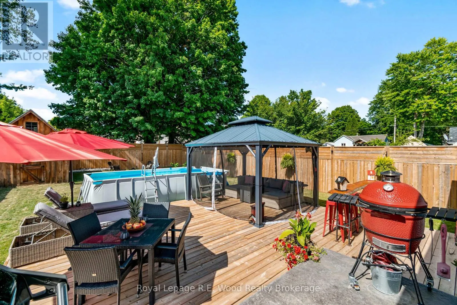 Cross Streets: John Street, Clyde Street. ** Directions: From Hwy 59 Stover Street, Head west on North Court Street. Property is on the North side of the road across from Harold Bishop Park. This modern bungalow built in 2021 is situated at a prime location in a well developed neighborhood. Your next address finds you at 16.5 North Court Street W in Norwich! The concrete pad driveway ushers you up the front porch with stamped concrete and welcomes you into the open concept main floor. The living room features a natural gas fireplace with stone surround, and a large front window overlooking the front yard and park. The custom kitchen features a large center island, black stainless steel appliances, and pantry for more storage. The open main living area includes a dining room perfect for hosting friends and family with room to add extra chairs and situated right next to the kitchen. The attached garage opens into the main floor laundry and convenient mudroom. There's a primary bedroom with access to the 5-pc bath featuring a double vanity, soaker tub, and walk-in shower. An additional bedroom completes the main floor. The finished basement features a unique bar area, as well as 2 guest bedrooms and a 3-pc bathroom. Outdoors you will find a real treat with a complete 8 foot fence around the backyard with 2 exit gates on either side of the yard! The large back deck includes a bar & TV area, BBQ area, and large pergola seating area. This is the ultimate space to entertain guests and host summer fun. The yard has low-maintenance landscaping, and exterior lighting as well. A large storage shed makes for the perfect space to store pool equipment, lawn equipment, and all your tools/toys. Don't wait to make this home yours! (id:27476)