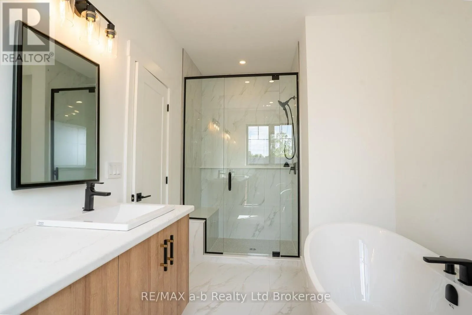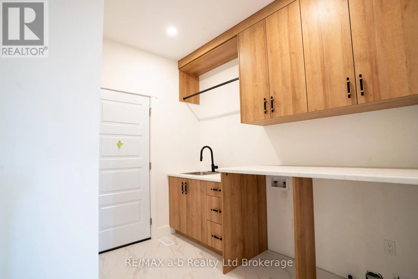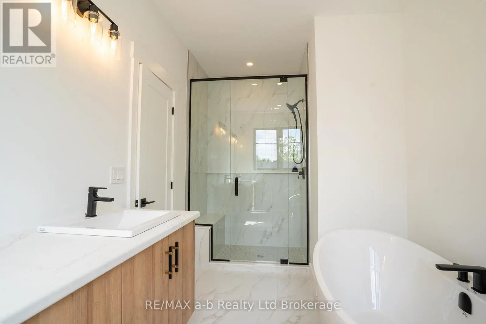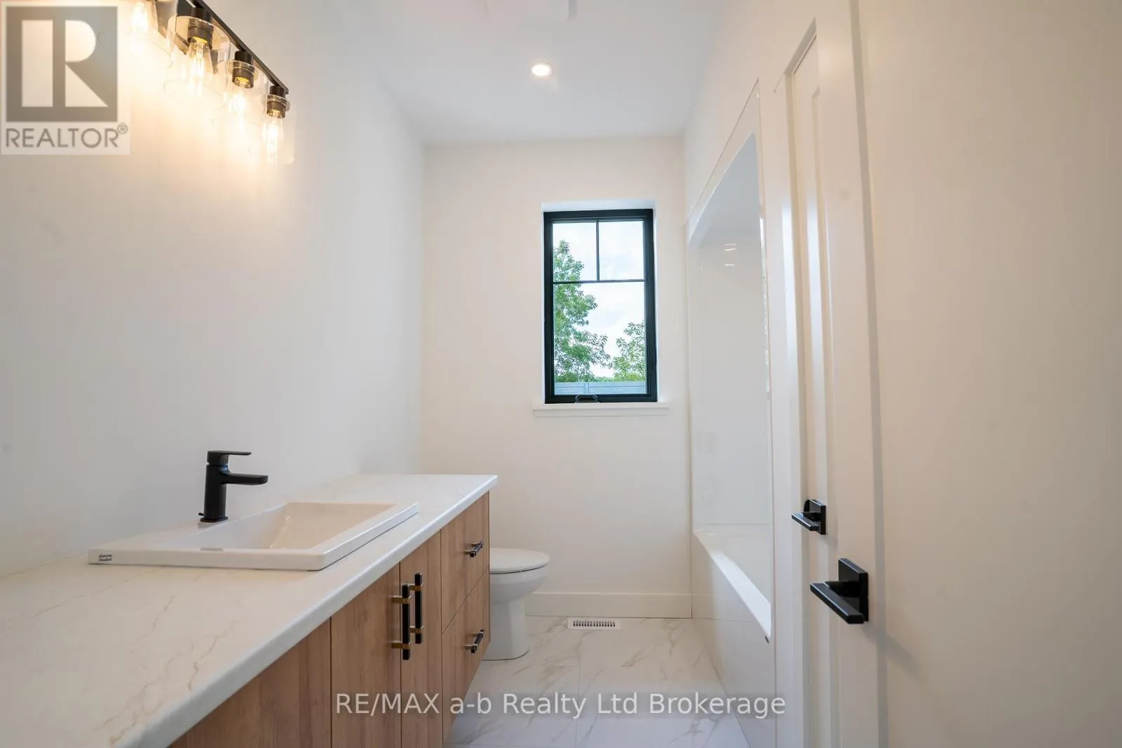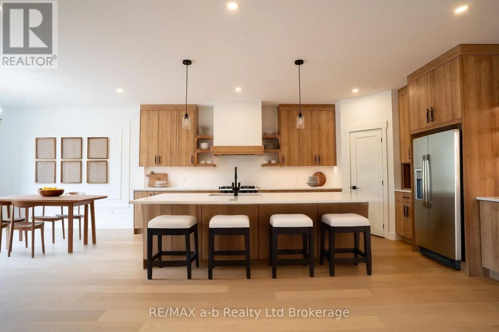 Cross Streets: Herb Street, Main Street. ** Directions: From Main Street in Norwich, south on Herb Street. Custom built by HEG HOMES, this is an all brick bungalow with a full walk out basement on a huge pie shaped lot at the end of a cul-de-sac. This home has a 3 car garage finished with Trusscore and the back deck looks over the read yard with timberwork finishes. The drive will be paved, the yard seeded with sod in the front. The main floor is open concept with a large natural gas stone fireplace, dual tone kitchen cabinetry, main floor mast bedroom with access to the deck and large ensuite. There is two more bedrooms on the main floor, powder room and laundry room. The basement is framed with a rec room, bedroom, and a wet bar. A third of the basement is a separate single in-law suite with outside access and its own bathroom, bedroom, kitchen and laundry room. The basement is plumed, wired and ready to drywall. The home is impeccable and perfect layout certainly worth a look! (id:27476)