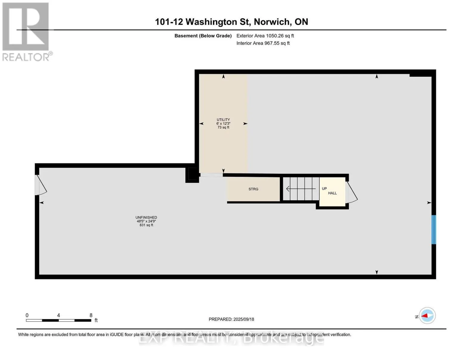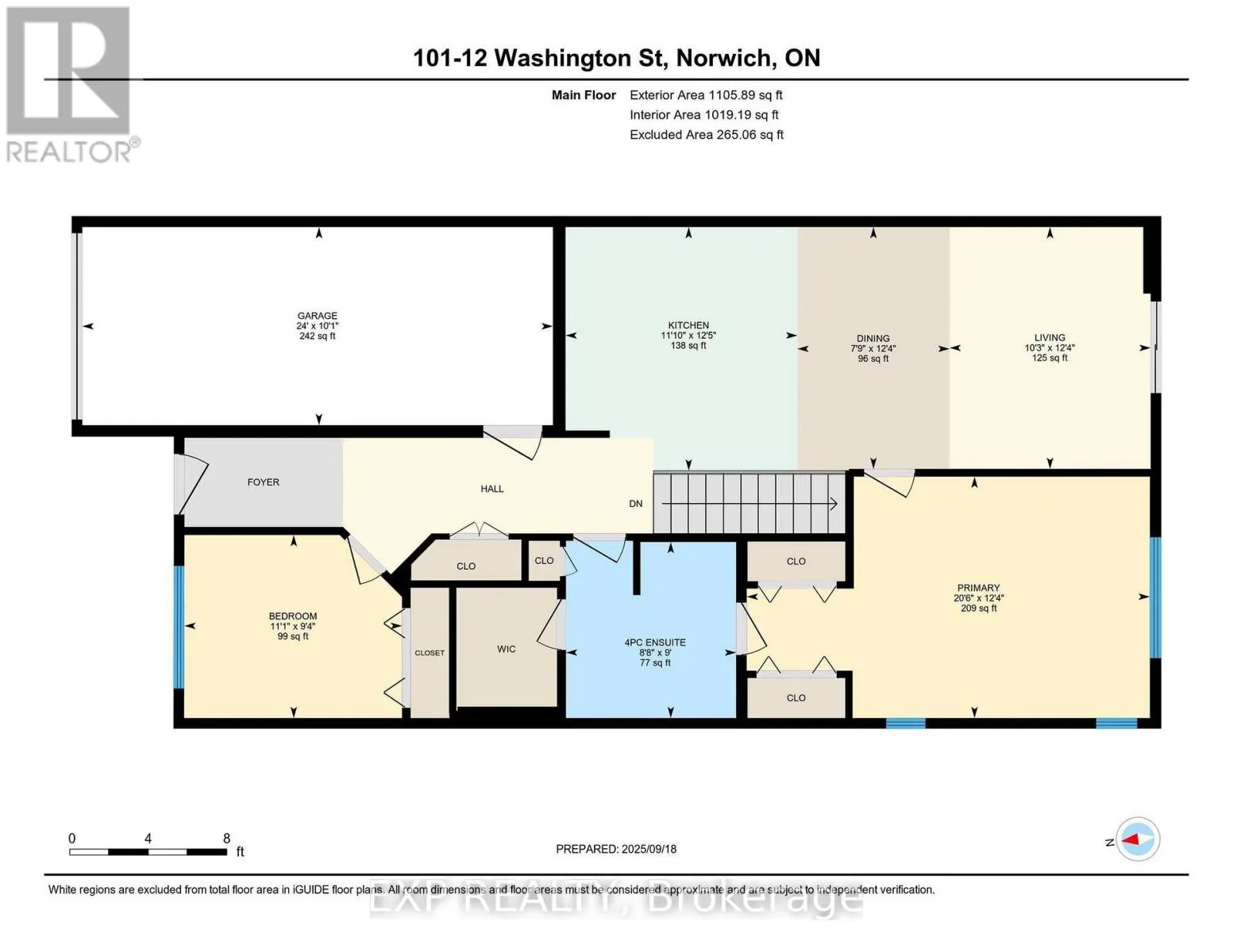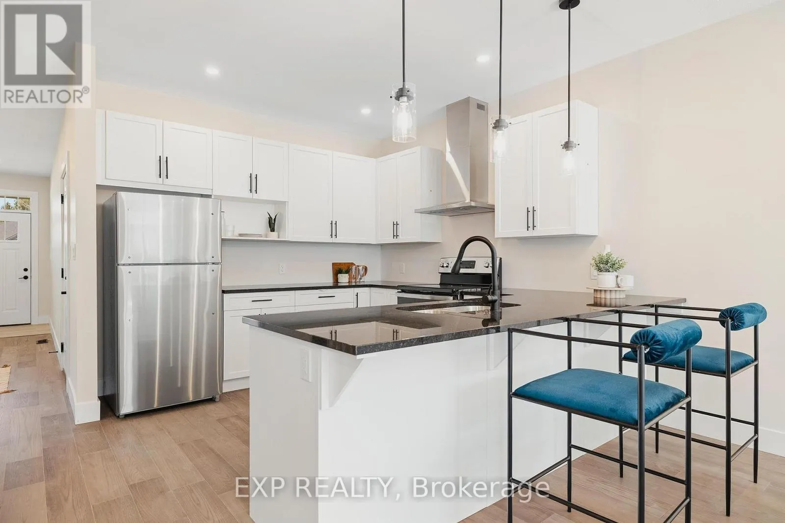 Cross Streets: Stover Street. ** Directions: turn off Stover Street, west on Elgin Street. Welcome to 12 Washington St, Unit 101 a beautifully staged end-unit bungalow townhouse offering the perfect blend of style, comfort, and convenience in the heart of Norwich. Step inside to find a bright and inviting kitchen, complete with quartz countertops, a sleek stove hood range, refrigerator, and dishwasher. The open-concept design is enhanced by 9-foot ceilings, pot lights, and elegant grey-toned hardwood flooring that flows throughout the main living space. Natural light fills the home, creating a warm and welcoming atmosphere. The primary bedroom is a true retreat, featuring two closets, a ceiling fan, and direct access to the spacious four-piece bathroom. The bathroom offers both a bathtub and a separate stand-up shower, and conveniently connects to the laundry room, which provides ample storage for everyday living. A second bedroom at the front of the home offers versatility for family, guests, or a home office. Downstairs, the unfinished basement presents incredible potential with a large egress window, a rough-in for a bathroom, an HRV system, and a 100-amp panel ready for your personal touch and future expansion. Outside, enjoy a private back deck with a privacy wall, perfect for relaxing or entertaining. The property also includes a one-car garage for added convenience. Located in a family-friendly neighbourhood, this home is close to all the necessities Norwich has to offer shops, schools, parks, and more. With its thoughtful layout and desirable features, this home is an excellent opportunity to enjoy comfortable living in a vibrant community. (id:27476)