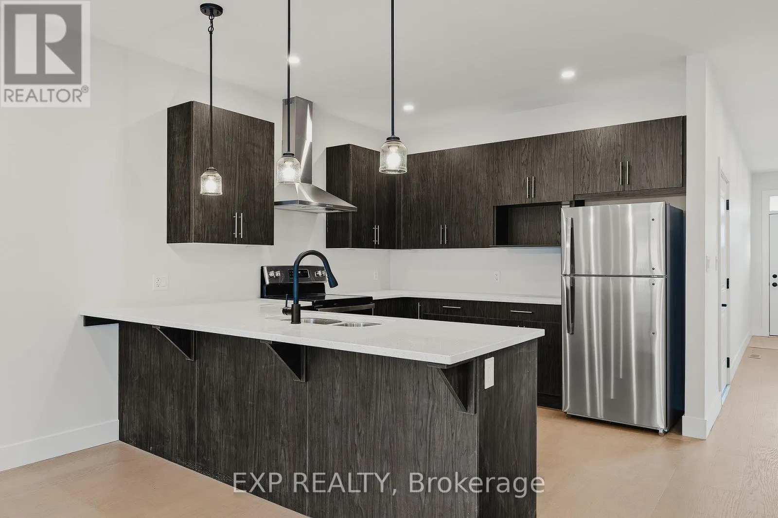 Cross Streets: Washington Street. ** Directions: From Stover Street, west on Elgin Street, just around the corner from Shoppers Drug Mart. Welcome to 12 Washington Street Unit #203 in Norwich a refined bungalow-style townhouse where modern design meets small-town charm. This elegant 2-bed, 1-bath residence is quietly tucked away on a cul-de-sac, offering both privacy and sophistication just 20 minutes from Woodstock and 30 minutes to London. Step inside to soaring 9-ft ceilings, a spacious foyer with direct garage access, and a versatile front bedroom perfect for a guest suite, office, or nursery. The open-concept living space showcases a gourmet kitchen with quartz countertops, custom cabinetry, stainless steel appliances, and a central island, flowing seamlessly into a light-filled living area. From here, walk out to your private deck an ideal retreat for relaxing evenings or weekend entertaining. The primary suite is complete with dual closets, a large window, and a spa-inspired 4-piece cheater ensuite. The lower level offers a bath rough-in and unlimited potential to design additional living space to your taste. Perfectly positioned near Norwichs finest amenities, schools, and parks, this residence blends comfort, convenience, and timeless style. An exceptional opportunity to own a luxury bungalow townhouse in one of Oxford Countys most desirable communities (id:27476)