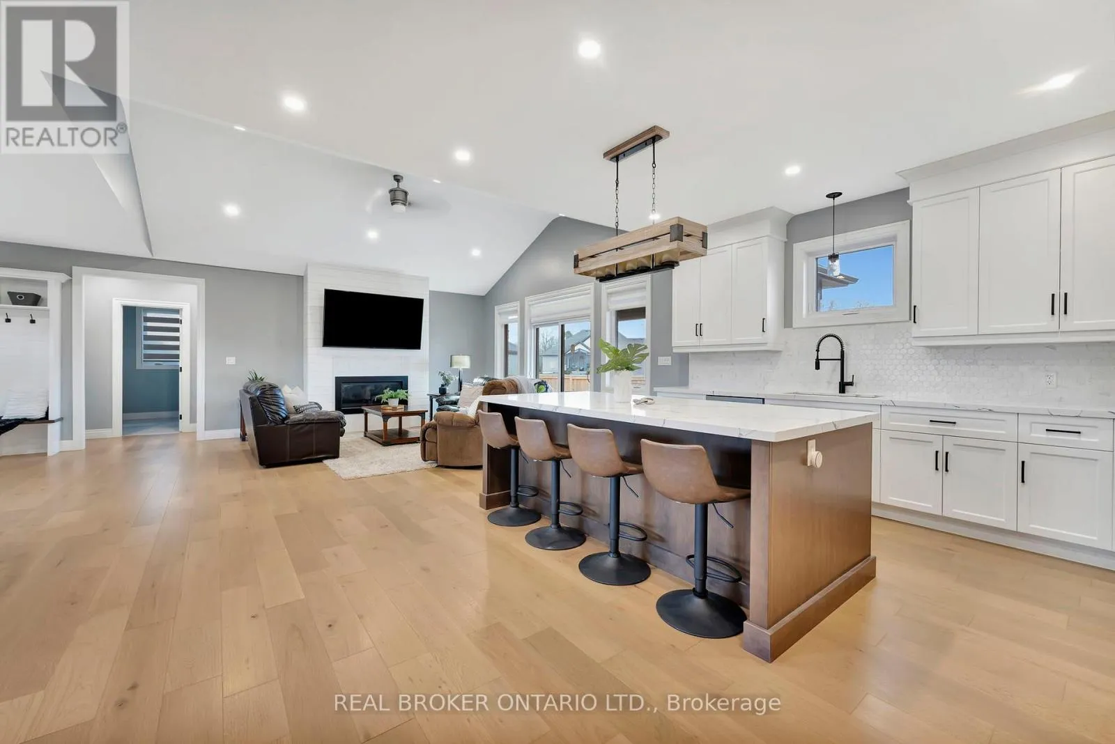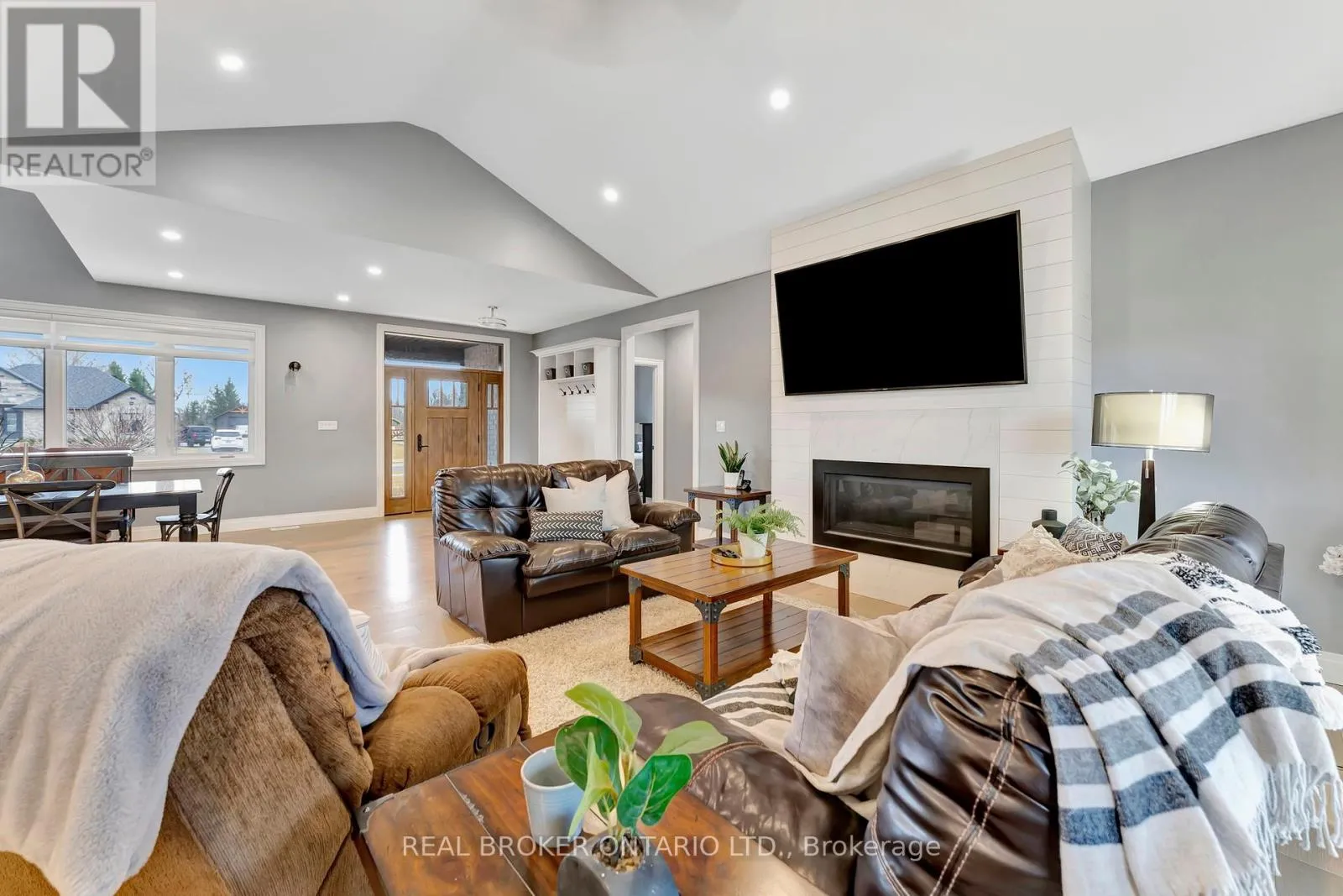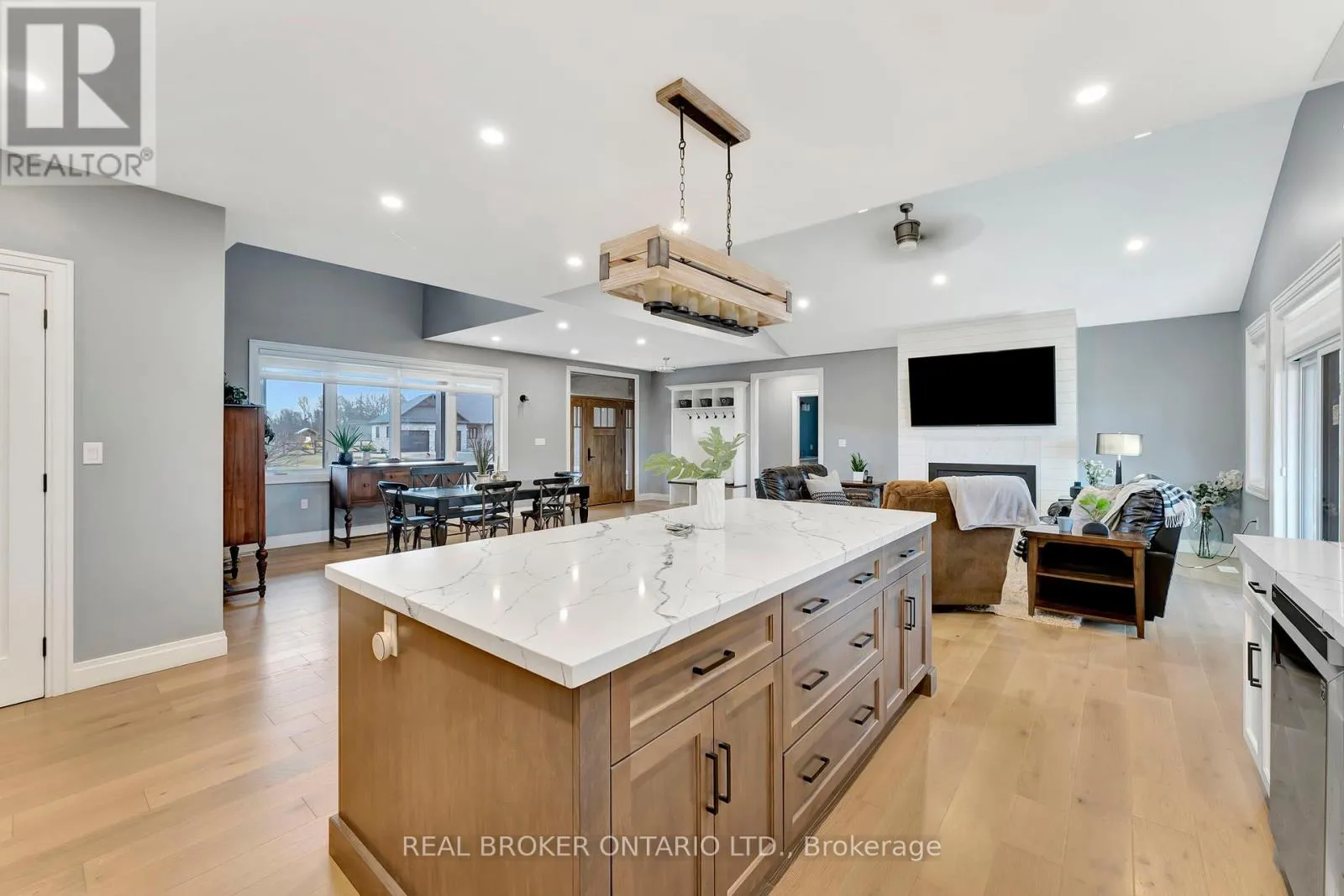 from Otterville Rd, north on Church St, west on North St, and north on August Cres Set on nearly a full acre in a peaceful, upscale neighborhood, this stunning all-brick bungalow offers the perfect blend of luxury, comfort, and space. From the moment you arrive, the triple-car garage and oversized driveway set the tone for the elegance that continues inside. Step through the front door into a grand open-concept living area highlighted by soaring cathedral ceilings, engineered hardwood flooring, and a striking shiplap and tile gas fireplace. The chef-inspired kitchen is the heart of the home, featuring quartz countertops, high-end appliances, and stylish lighting ideal for entertaining or enjoying family dinners. The spacious primary suite is a true retreat, complete with a luxurious five-piece ensuite and an impressive walk-in closet. Every detail has been thoughtfully designed to provide both function and sophistication. The lower level, filled with natural light, is ready for your finishing touches with a rough-in bathroom and central mechanical layout, it offers the potential to nearly double your living space. If youve been searching for a home that combines quiet small-town living with refined style and modern comfort, this exceptional bungalow is a must-see. (id:27476)