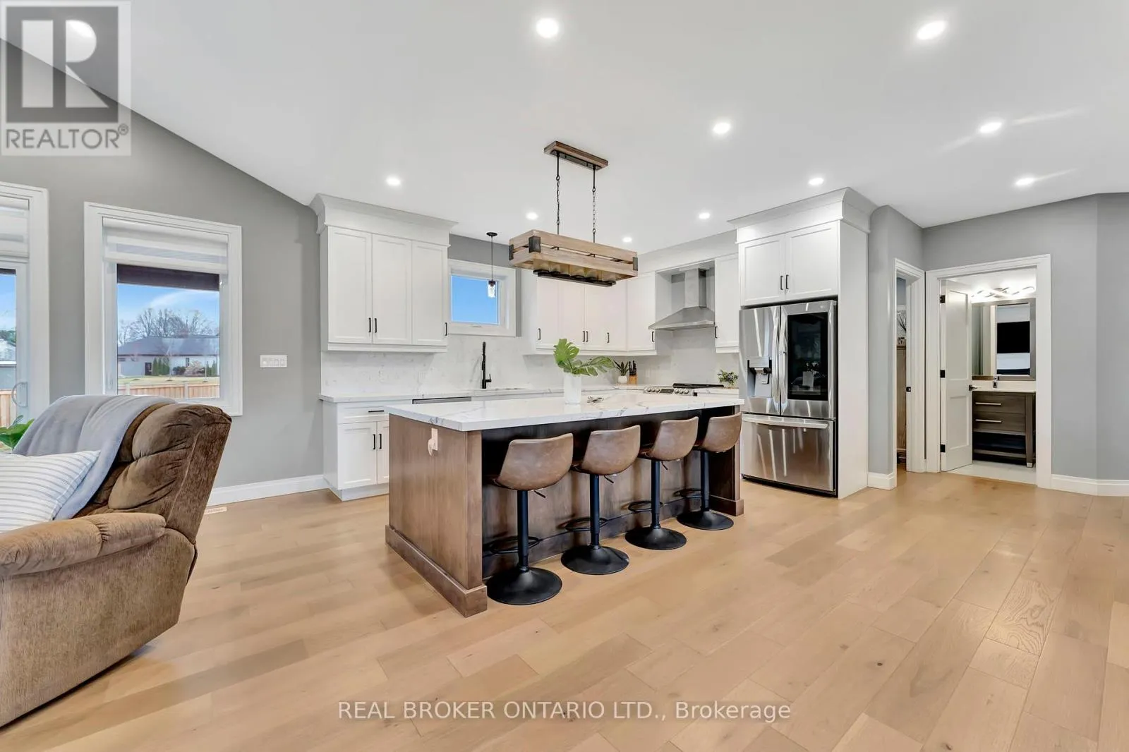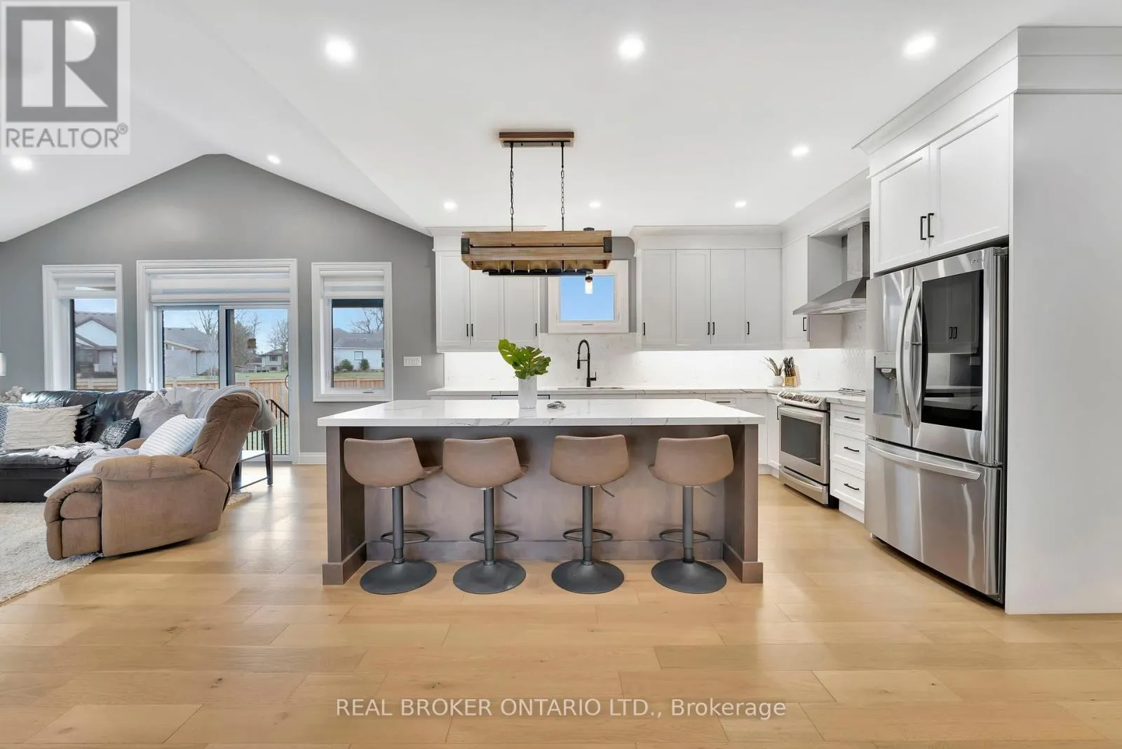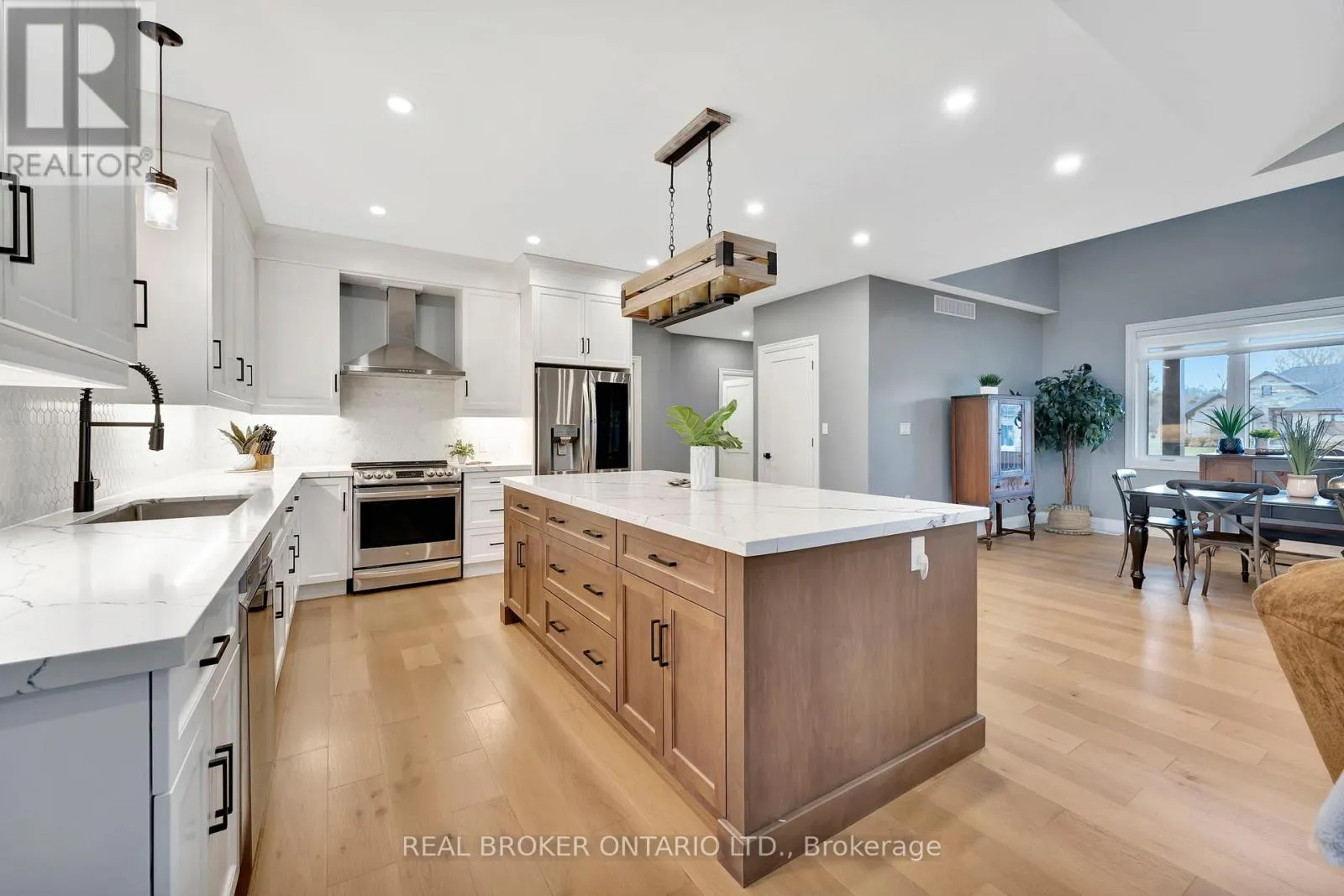 from Otterville Rd, north on Church St, west on North St, and north on August Cres Set on nearly a full acre in a peaceful, upscale neighborhood, this stunning all-brick bungalow offers the perfect blend of luxury, comfort, and space. From the moment you arrive, the triple-car garage and oversized driveway set the tone for the elegance that continues inside. Step through the front door into a grand open-concept living area highlighted by soaring cathedral ceilings, engineered hardwood flooring, and a striking shiplap and tile gas fireplace. The chef-inspired kitchen is the heart of the home, featuring quartz countertops, high-end appliances, and stylish lighting ideal for entertaining or enjoying family dinners. The spacious primary suite is a true retreat, complete with a luxurious five-piece ensuite and an impressive walk-in closet. Every detail has been thoughtfully designed to provide both function and sophistication. The lower level, filled with natural light, is ready for your finishing touches with a rough-in bathroom and central mechanical layout, it offers the potential to nearly double your living space. If youve been searching for a home that combines quiet small-town living with refined style and modern comfort, this exceptional bungalow is a must-see. (id:27476)