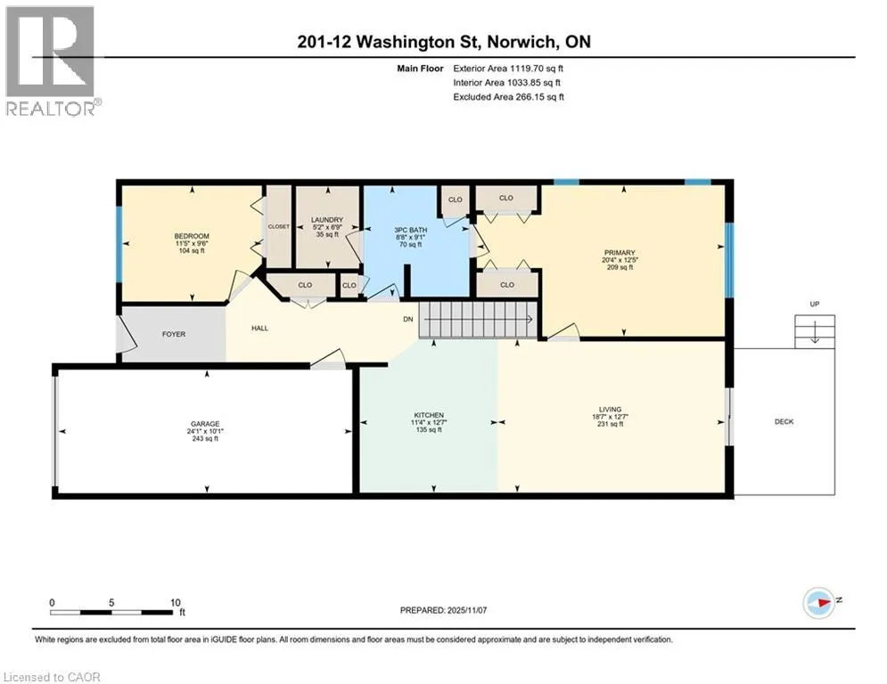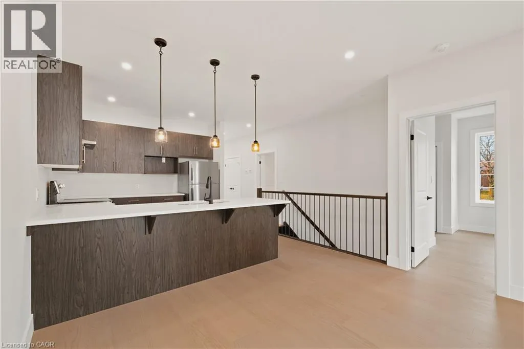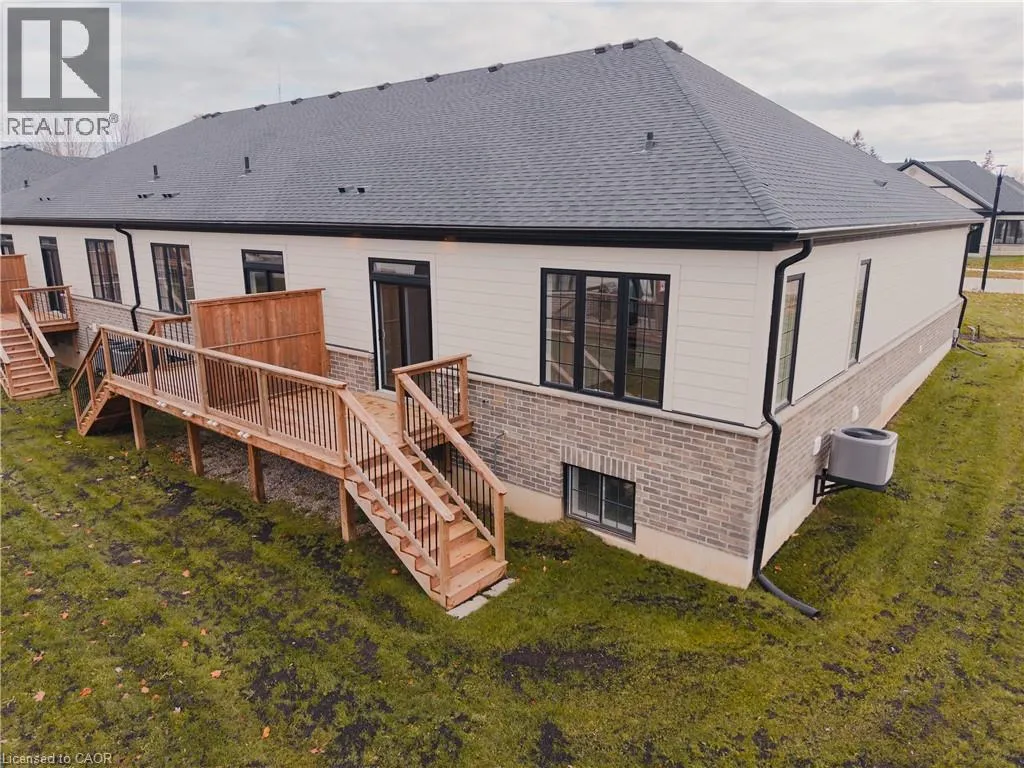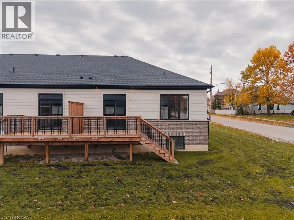 Turn off Stover Street, west on Elgin Street Welcome to 12 Washington St, Unit 201âa bright and inviting end-unit bungalow townhouse offering comfort, convenience, and modern living in the heart of Norwich. The stylish kitchen features quartz countertops, a sleek hood range, stainless steel appliances, and ample cabinet space. The open-concept layout allows the main living and dining areas to flow together seamlessly, enhanced by 9-foot ceilings and pot lights that create an airy and welcoming atmosphere. The primary bedroom offers both comfort and functionality with two closets and direct access to the spacious three-piece bathroom. The laundry room is conveniently located on the main floor, providing everyday practicality. A second bedroom on this level is perfect for family, guests, or a home office. The finished basement expands your living space with a large rec room ideal for relaxing, entertaining, or creating a cozy movie night setup. A third bedroom and a second full bathroom make the lower level a great space for guests or extended family, while still offering flexibility for your personal needs. Step outside to your private back deck, complete with a privacy wallâperfect for morning coffee, evening unwinding, or hosting a small gathering. The attached one-car garage adds convenience and storage. Situated in a friendly neighbourhood close to shops, schools, parks, and everyday amenities, this home blends comfort and low-maintenance living with a welcoming community feel. Unit 201 is the perfect opportunity for those seeking a well-designed home with functional space across both levels. (id:27476)