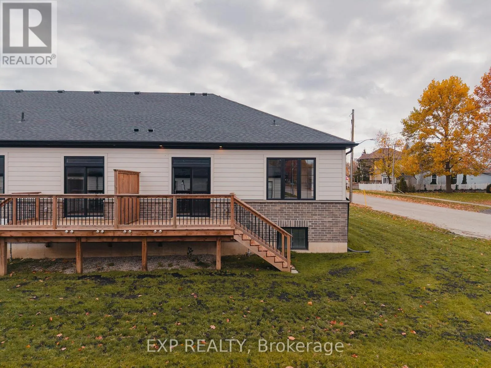 Cross Streets: Stover Street. ** Directions: Turn off Stover Street, west on Elgin Street. Welcome to 12 Washington St, Unit 201-a bright and inviting end-unit bungalow townhouse offering comfort, convenience, and modern living in the heart of Norwich. The stylish kitchen features quartz countertops, a sleek hood range, stainless steel appliances, and ample cabinet space. The open-concept layout allows the main living and dining areas to flow together seamlessly, enhanced by 9-foot ceilings and pot lights that create an airy and welcoming atmosphere. The primary bedroom offers both comfort and functionality with two closets and direct access to the spacious three-piece bathroom. The laundry room is conveniently located on the main floor, providing everyday practicality. A second bedroom on this level is perfect for family, guests, or a home office. The finished basement expands your living space with a large rec room ideal for relaxing, entertaining, or creating a cozy movie night setup. A third bedroom and a second full bathroom make the lower level a great space for guests or extended family, while still offering flexibility for your personal needs. Step outside to your private back deck, complete with a privacy wall-perfect for morning coffee, evening unwinding, or hosting a small gathering. The attached one-car garage adds convenience and storage. Situated in a friendly neighbourhood close to shops, schools, parks, and everyday amenities, this home blends comfort and low-maintenance living with a welcoming community feel. Unit 201 is the perfect opportunity for those seeking a well-designed home with functional space across both levels. (id:27476)