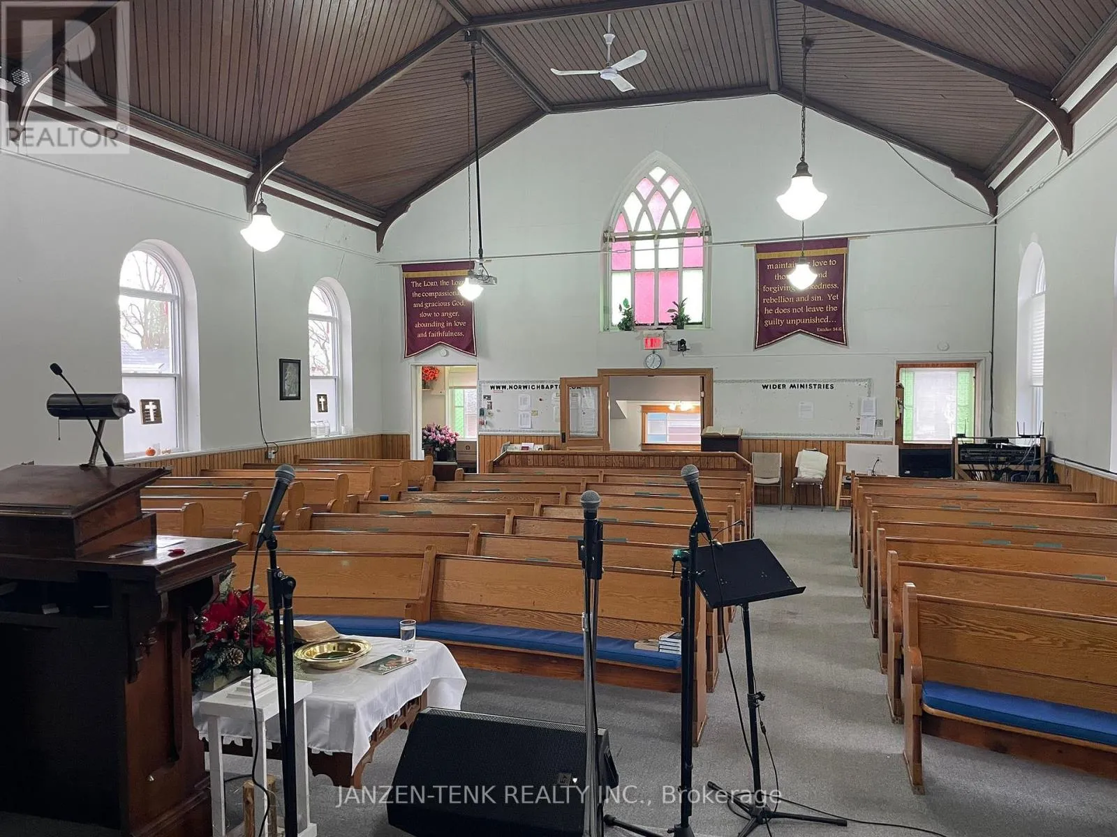 Cross Streets: Located at the corner of Elgin St E and Albert St. ** Directions: From Stover St N, turn east on Elgin St E. Discover a rare opportunity with this historic 1877 church, offering over 5,000 sqft of usable space across 2 levels and a location that places you close to the medical centre and just moments from downtown Norwich. This property offers both immediate functionality for a congregation and the potential for future vision - all while retaining the charm and character of its early craftsmanship. The main level features a welcoming sanctuary with seating for approximately 110 people. A soaring 21.5-foot ceiling, mostly updated large windows, and a built-in organ create a bright and inspiring atmosphere for weekly services and special gatherings. A study, nursery, and 2 bathrooms on this level make it easy to support a variety of ministries and programs. The raised-ranch design opens the door to impressive versatility in the lower level. Large windows bring abundant natural light into the expansive open space, ideal for community events, meetings, recreation, or expanded programming. This floor also includes a bathroom and a generous kitchen well suited for hosting meals or group functions. The building includes updates such a new furnace and air conditioning system (2020) and replaced shingles (2019). Outside, the gravel area is great for community functions and includes a shed positioned near electrical and natural gas hookups, adding convenience for storage or future improvements. With its central location, generous square footage, and adaptable layout, this property provides an appealing opportunity for a congregation, community group, or creative buyer. Whether continuing its long-standing role as a place of worship or exploring alternative possibilities, this building offers meaningful space in the heart of Norwich. (id:27476)