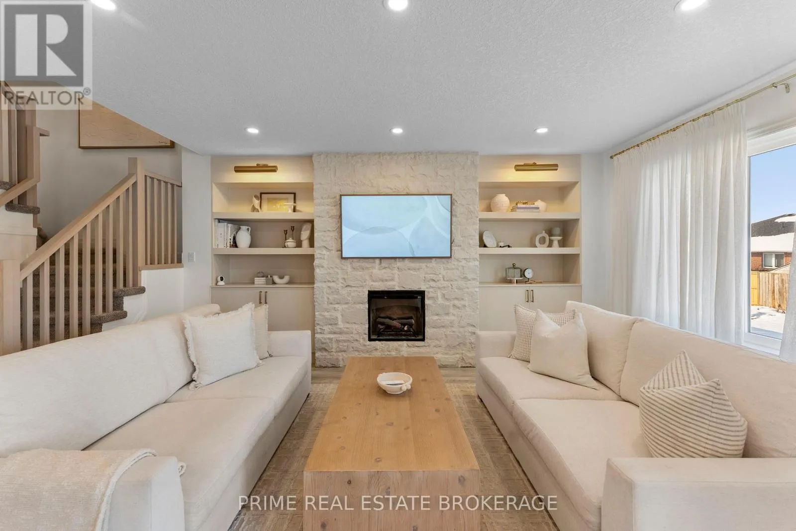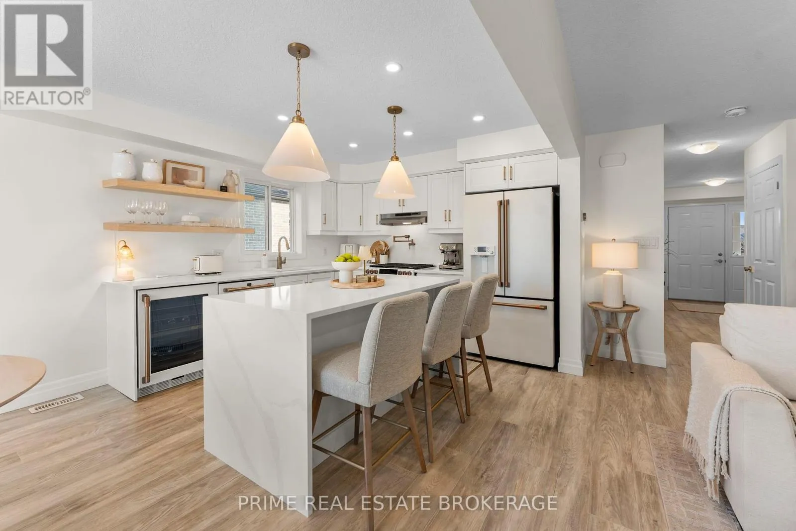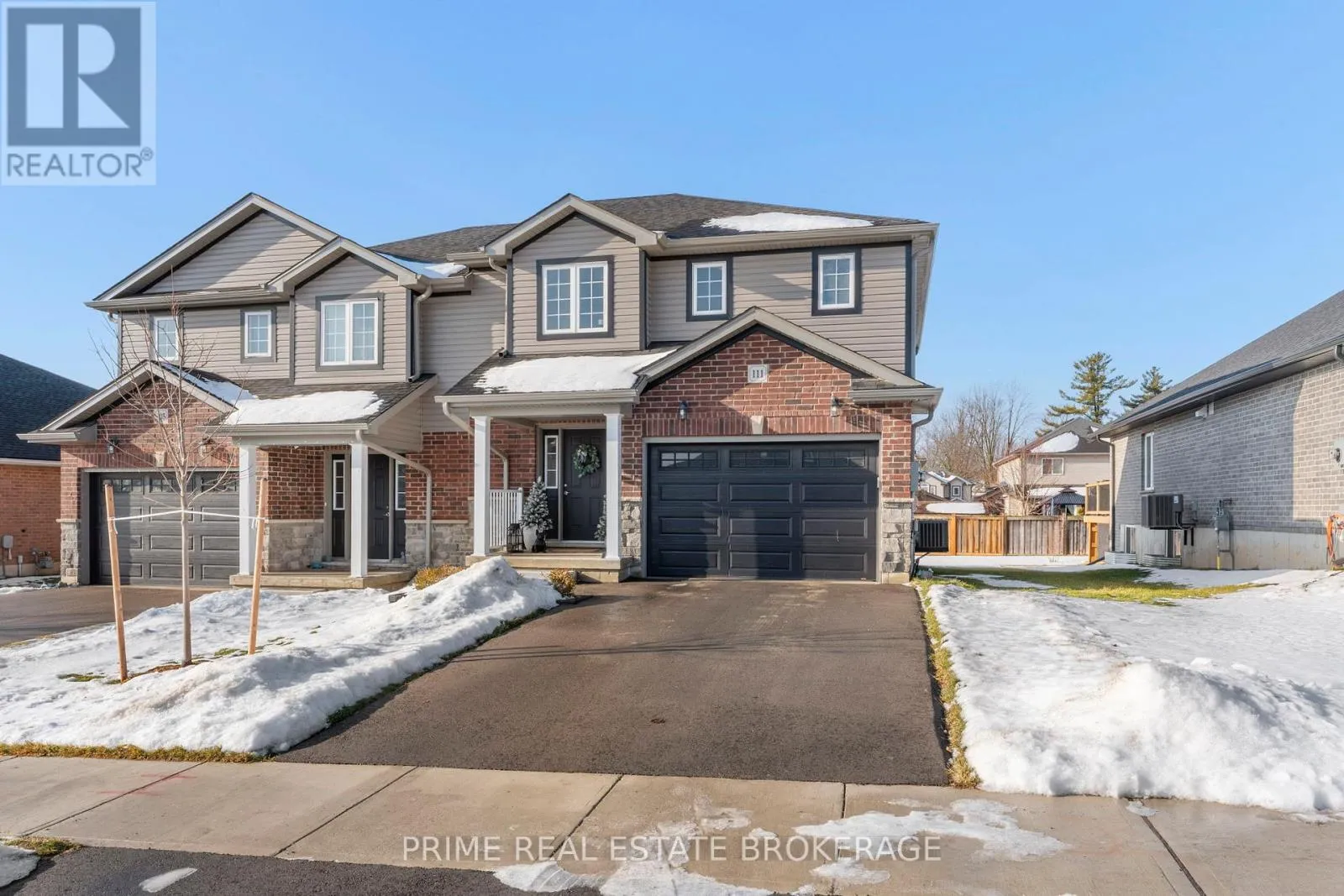 Lossing Drive & Poldon Drive Welcome to 111 Lossing Drive, a beautifully finished 2023 built semi detached home located in the heart of the family friendly community of Norwich.From the moment you step inside, the home makes a strong first impression. The welcoming foyer features a custom built-in bench with elegant gold sconce lighting on either side, immediately setting the tone for the thoughtful design carried throughout the home. Soft neutral tones, upgrades throughout, and an abundance of natural light create a warm, refined feel that is both stylish and inviting.The main living space is the heart of the home. A striking stone feature wall with a gas fireplace, paired with custom built-ins, anchors the room and creates a comfortable, visually impressive gathering space. The open concept layout flows naturally into the kitchen and dining area, which stands out with high-end GE Café appliances, quartz countertops, and a statement waterfall island that brings both style and everyday function together.Upstairs, the home offers three spacious bedrooms, including a primary suite with its own ensuite bathroom, along with a separate full bathroom serving the additional bedrooms which is an ideal layout for growing families and guests alike.The partially finished basement adds valuable living space and is currently set up as a home gym, but could easily be used as a rec room, home office, or media space to suit your needs.Set within a quiet, welcoming neighbourhood, 111 Lossing Drive offers the rare combination of nearly new construction, thoughtful upgrades, and move-in-ready living... An exceptional opportunity to own a home where comfort, style, and functionality come together effortlessly. (id:27476)
