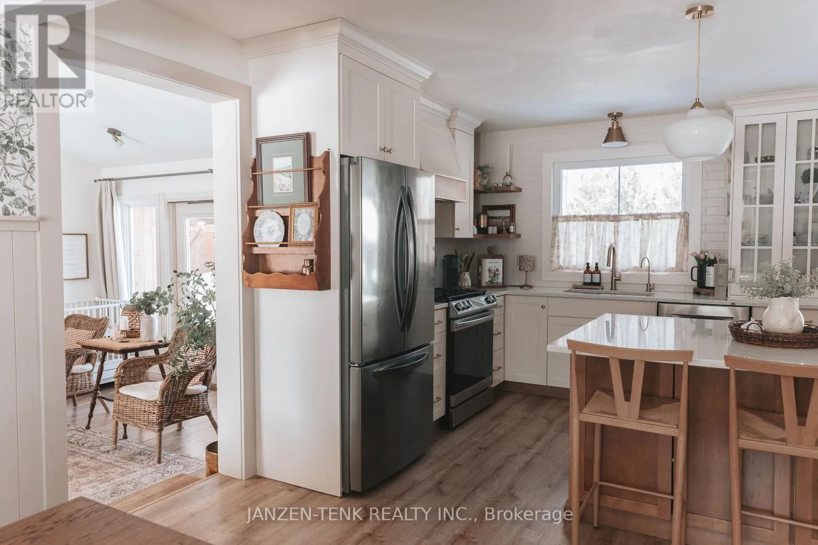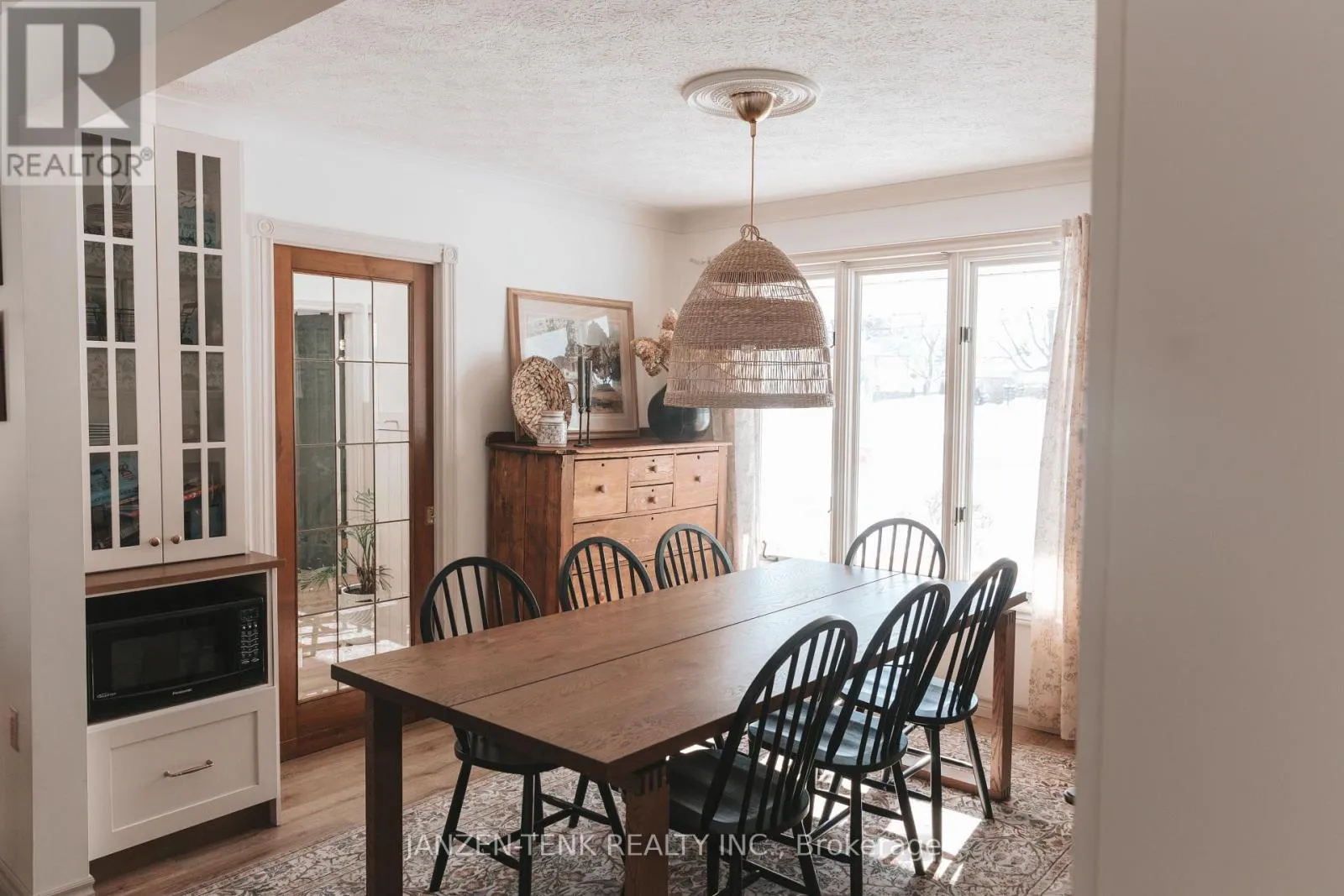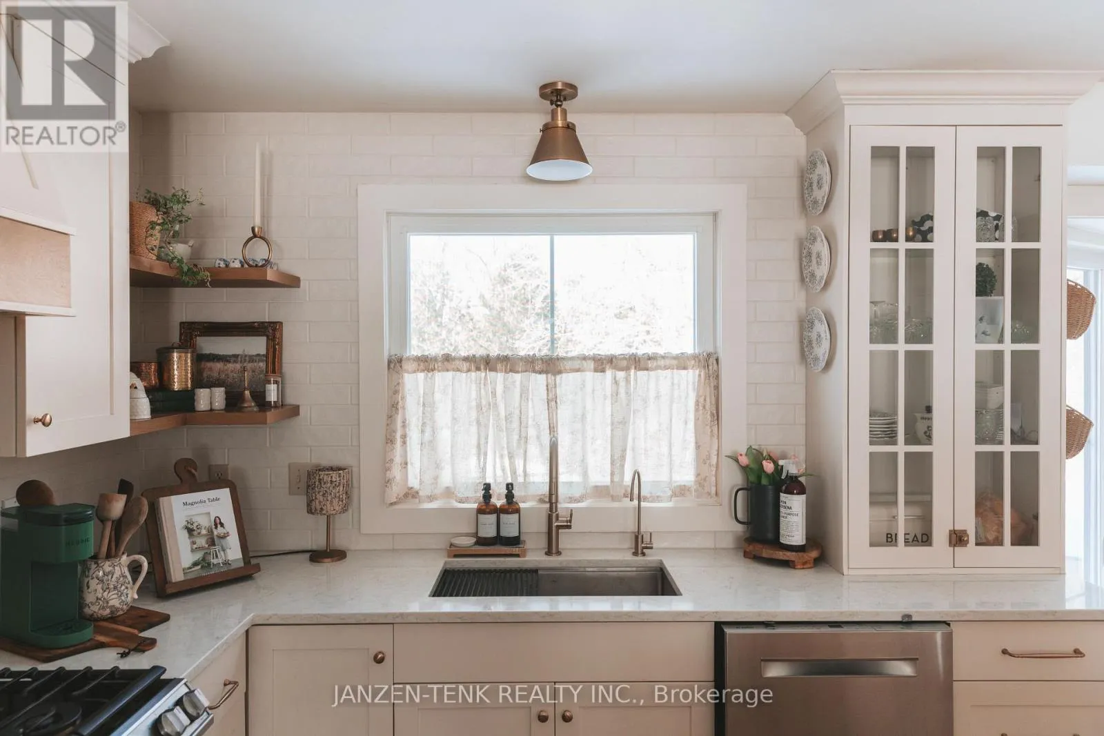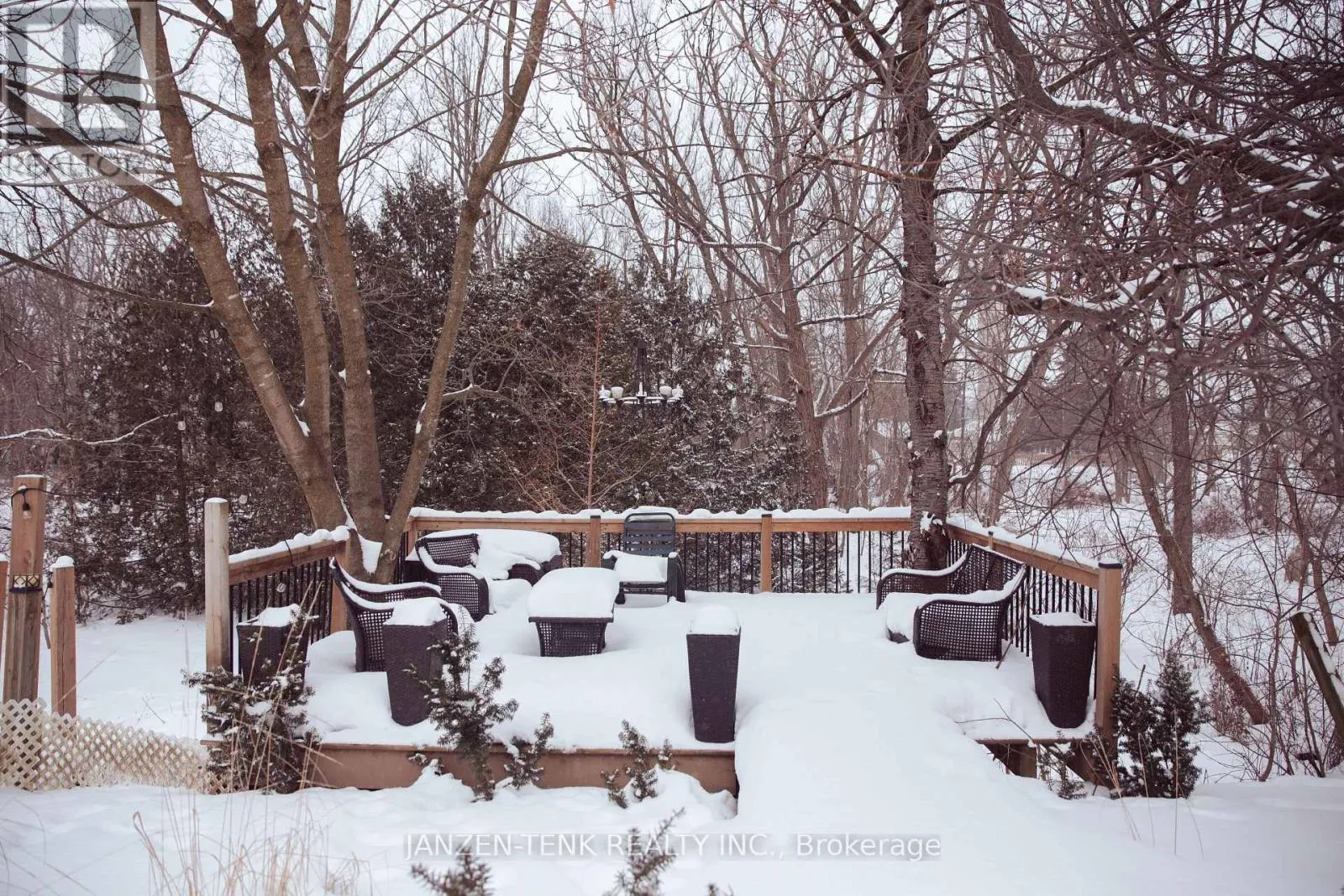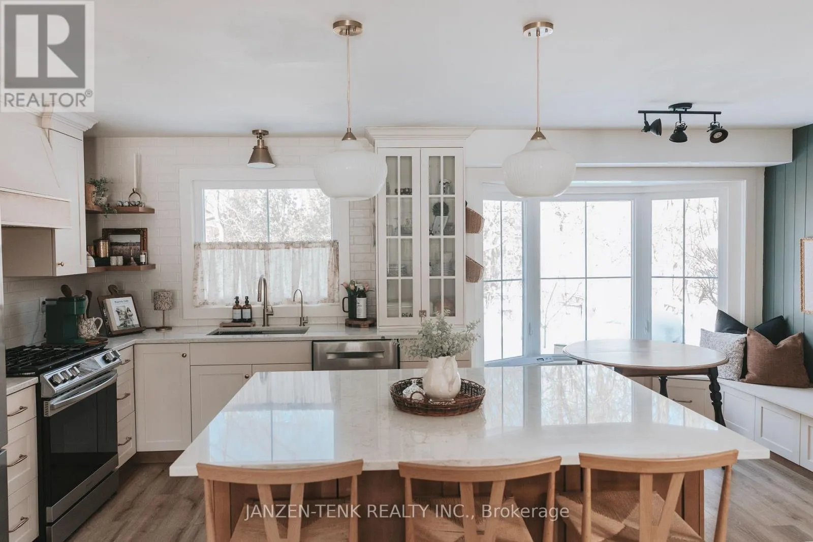 Cross Streets: Carman St & Pitcher St. ** Directions: From the main corner on Norwich, travel south on Stover St S. Turn west on Carman St. Property located in the 2nd block, on the north side of the street. This truly unique home blends thoughtful updates with warmth and character, all set on a private lot backing onto a conservation area. The main floor is anchored by a beautifully updated kitchen featuring quartz countertops, a large island, a built-in pantry, and generous cabinetry. A cozy breakfast nook with built-in seating creates a natural gathering spot, while a separate dining room with a large window offers space for more formal meals. The living room is bright and welcoming with cathedral ceilings, a welcoming fireplace with a wood-burning stove, and an abundance of natural light. Completing this level are a discreet main floor laundry with built in cabinetry, a 2-piece bath, and a convenient family entrance from the two-car garage. A flexible room off the front entrance adds even more versatility and could be used as a home office, additional bedroom, or creative space. Upstairs, the primary bedroom offers a private 3-piece ensuite, while two additional bedrooms are served by a recently updated family bath with a deep soaker tub. The finished basement extends the living space further with two bedrooms, one offering its own 3-piece ensuite, a large rec room, cold cellar, and an additional 2-piece bath. Over the past five years, this home has seen extensive updates including all new flooring throughout, a new kitchen, an updated family bathroom, and a new furnace and central air system. Outside, enjoy complete privacy with no rear neighbours. The beautifully landscaped yard is filled with perennial gardens and features a large deck with a gas BBQ hookup, a sunken above-ground pool, and a six-person hot tub, all easily accessed from the main outdoor living space. Terraced steps lead down to a built-in fire pit, while a heated 12x8 backyard studio with power adds flexible bonus space. The entire setting is ideal for relaxed summer evenings and quality time with family and friends. This is a home with space, personality, and a setting that is truly hard to find. (id:27476)
