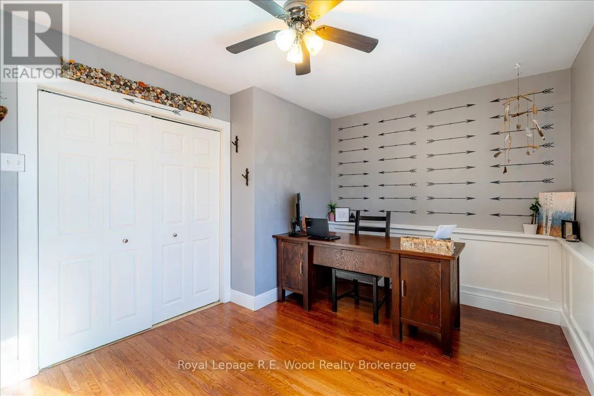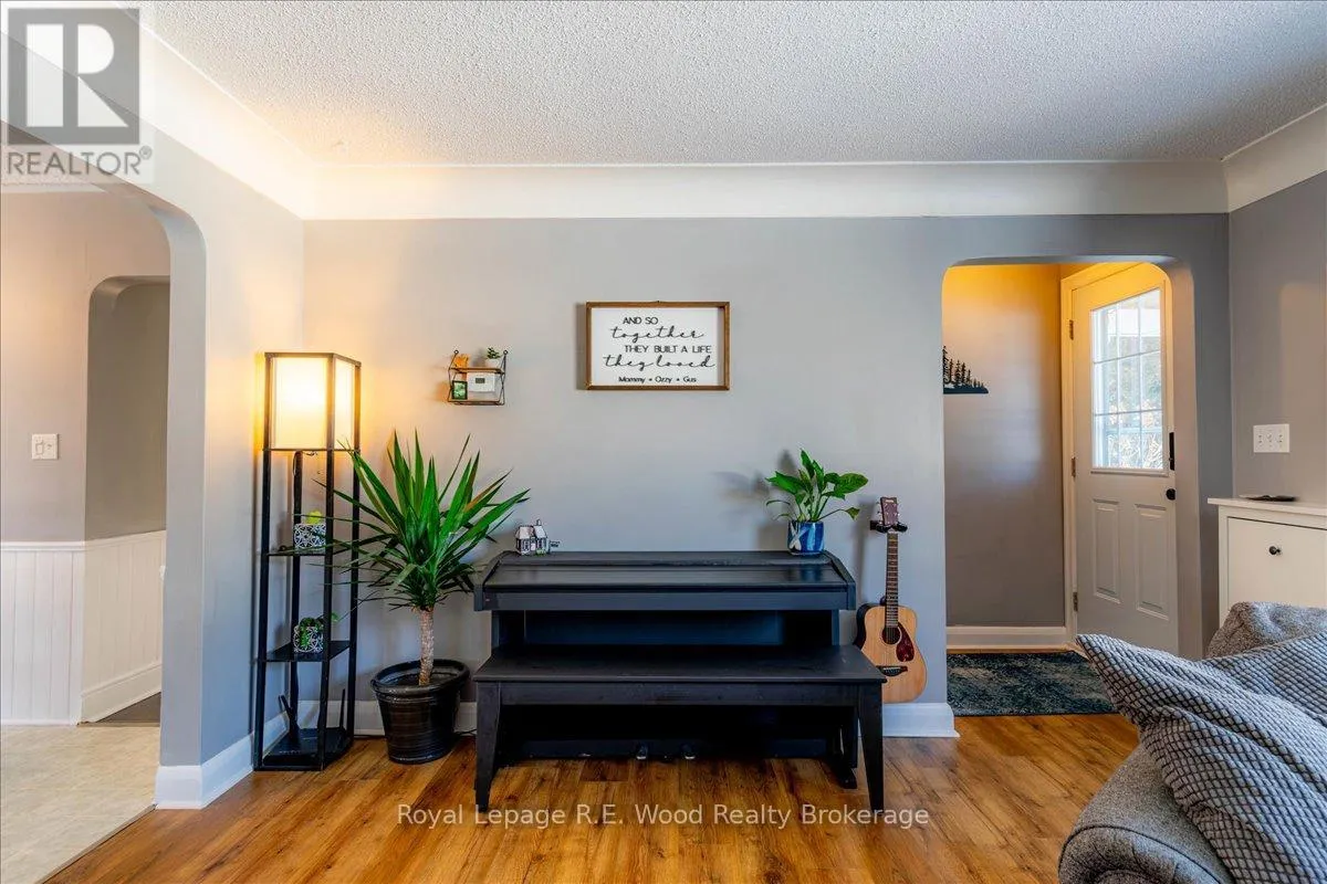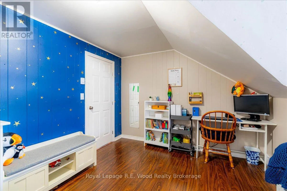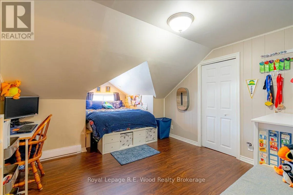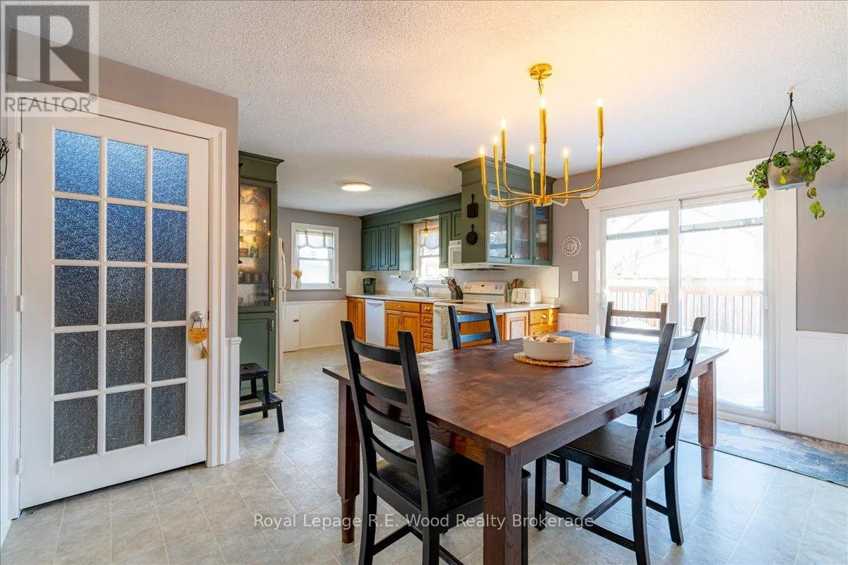 Cross Streets: South Court/ Hwy 59. ** Directions: South on Hwy 59 from Burgessville, East on South Court, south on Albert. Property is east side of the road. Welcome to this well-maintained 1.5-storey home situated on a 100 ft x 116 ft lot on a quiet street in the small, quaint town of Norwich. This residence features a 2+2 bedroom, 2-bathroom layout. The main level offers a practical floor plan with an eat-in kitchen, separate living room, 4-piece bathroom, and two generously sized bedrooms. Arched interior doorways and a mix of laminate, linoleum, and hardwood flooring run throughout. Laundry hookups are available in a main floor bedroom closet. The second floor includes two additional bedrooms, a 3-piece bathroom, and extra storage space. The home is heated by a boiler system with lines running through the main level subfloor, supplemented by electric baseboard heating on the second floor. The partially finished basement features painted concrete floors and walls, housing a laundry area, gym/playroom, and large storage room. Exterior features include aluminum siding, a fully fenced rear yard with mature trees, and an attached wood deck off the kitchen. A detached, insulated 2-car garage (currently fitted with a single door) serves as a garage/gym area, complemented by a paved double driveway. Located within walking distance to downtown Norwich. Only 16 minutes to Woodstock on the 401. (id:27476)
