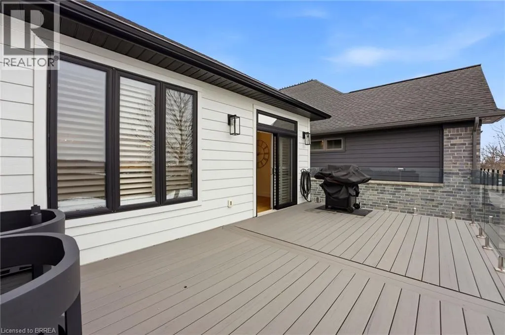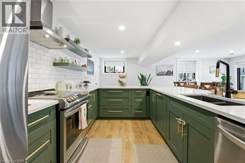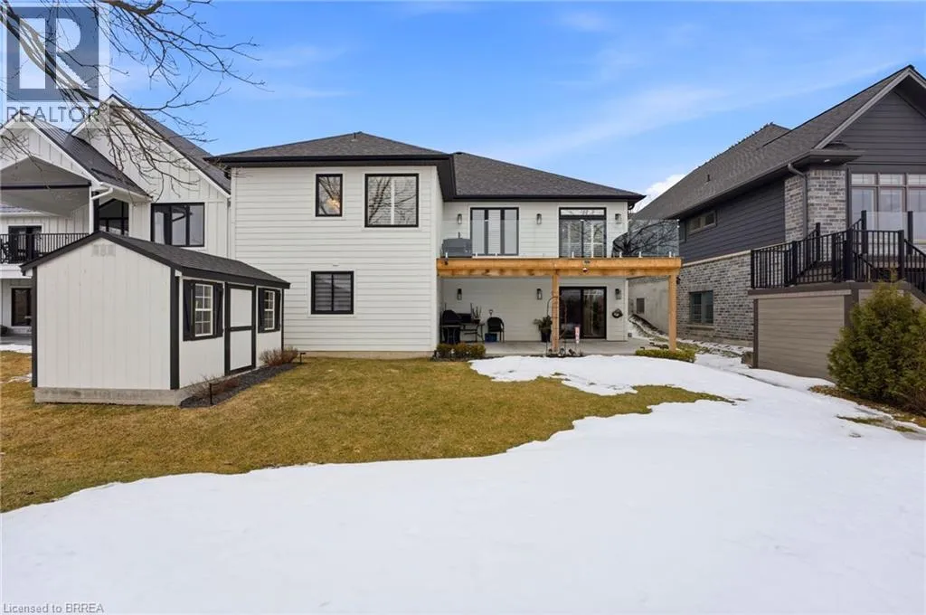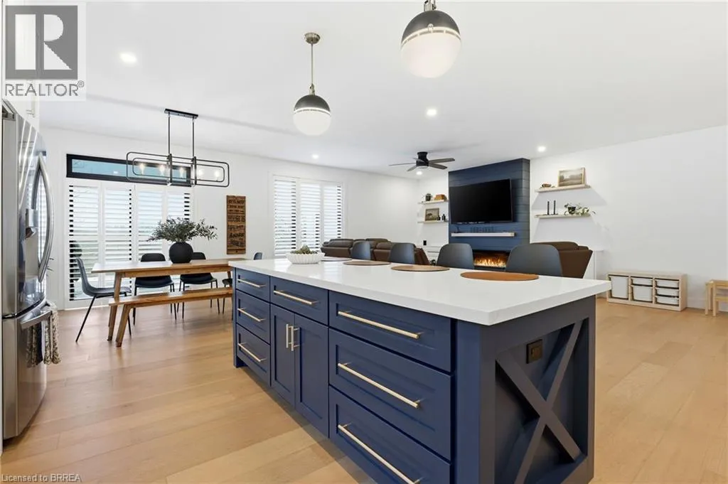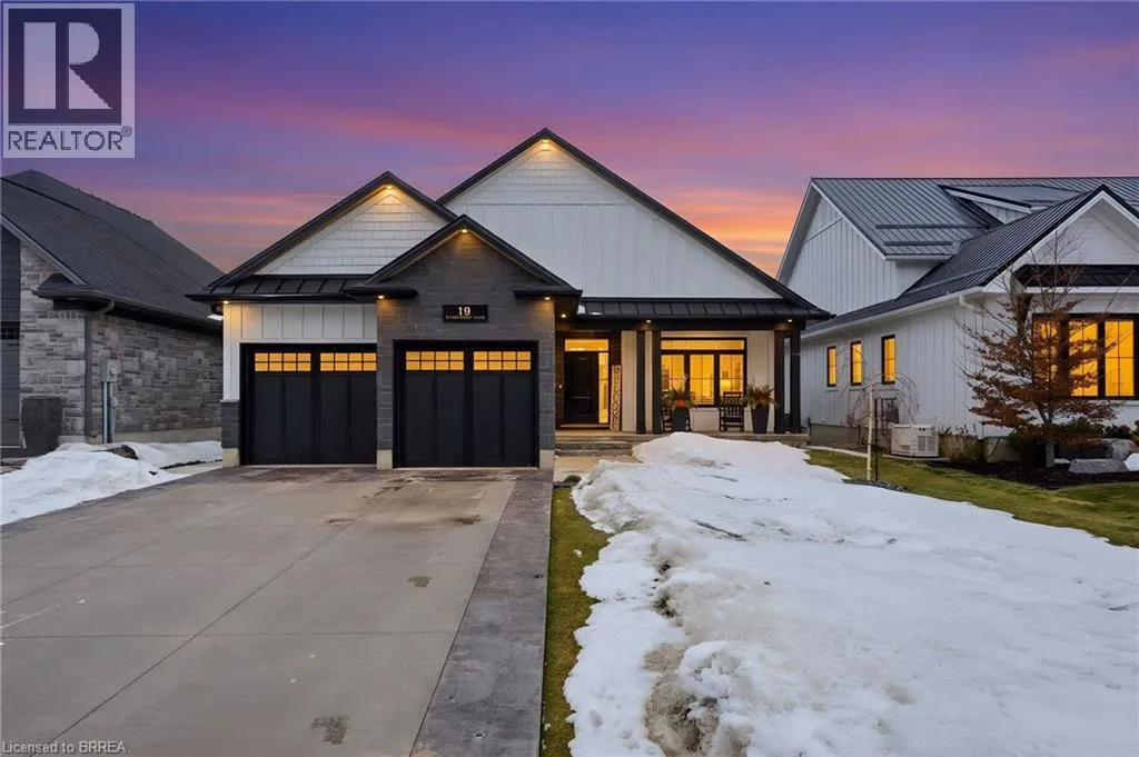 Dufferin St. to Sunview, to Windywood Welcome to 19 Windywood Ln., Norwich. An elegant bungalow built in 2021, offering a walkout basement with a fully finished in-law suite, tucked away on a quiet dead-end street with no rear neighbours. Step through the foyer and discover a bright open-concept living area showcasing stylish modern finishes throughout, highlighted by a gas fireplace set against a shiplap feature wall with a built-in entertainment center, creating a warm and inviting gathering space for family and friends. The tour continues into the beautifully designed kitchen where custom cabinetry, gold accents, a matte sued-blue island, and crisp white quartz countertops blend together for a striking look, while thoughtful additions such as a walk-in pantry, built-in appliances, and a convenient pot filler make this space a true dream for home chefs. Down the hall youâll find two bedrooms and a full bathroom, while the primary suite serves as a relaxing retreat complete with a walk-in closet and a luxurious ensuite featuring a soaker tub, spacious walk-in shower, and double vanity. The fully renovated basement (2021) has been transformed into a bright and upscale in-law suite with its own full kitchen, full bathroom, and two generously sized bedrooms. Additional recent upgrades include a sprinkler system, concrete driveway, concrete walkway leading to the backyard, and a new shed on a poured pad (2021)âsimply move in and enjoy. (id:27476)