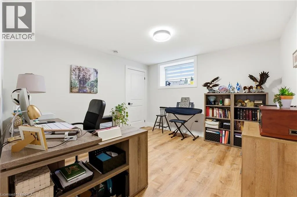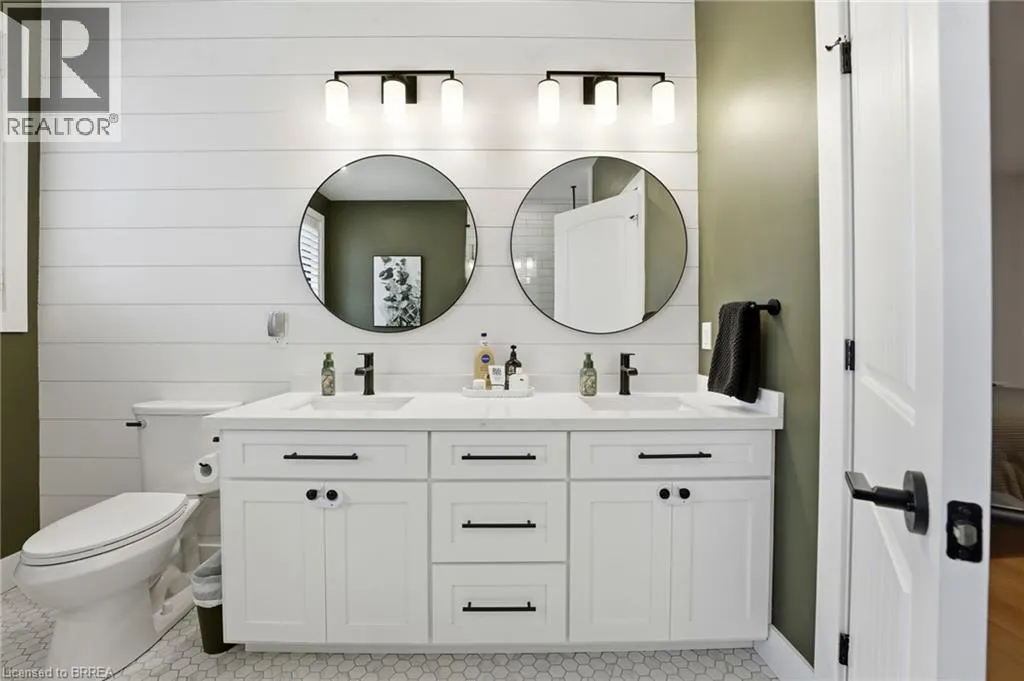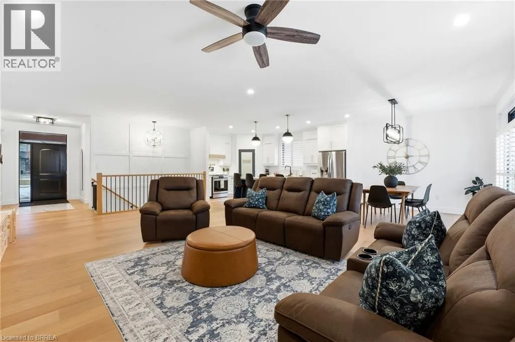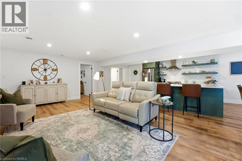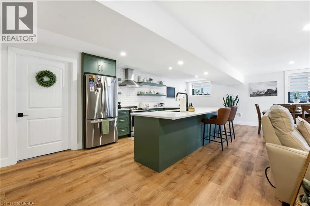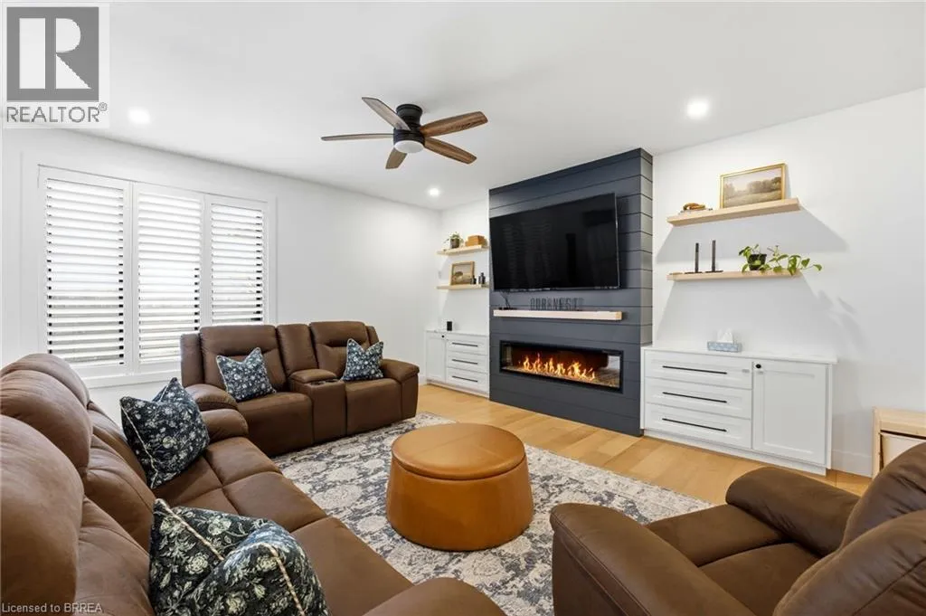Dufferin St. to Sunview, to Windywood Welcome to 19 Windywood Ln., Norwich. An elegant bungalow built in 2021, offering a walkout basement with a fully finished in-law suite, tucked away on a quiet dead-end street with no rear neighbours. Step through the foyer and discover a bright open-concept living area showcasing stylish modern finishes throughout, highlighted by a gas fireplace set against a shiplap feature wall with a built-in entertainment center, creating a warm and inviting gathering space for family and friends. The tour continues into the beautifully designed kitchen where custom cabinetry, gold accents, a matte sued-blue island, and crisp white quartz countertops blend together for a striking look, while thoughtful additions such as a walk-in pantry, built-in appliances, and a convenient pot filler make this space a true dream for home chefs. Down the hall youâll find two bedrooms and a full bathroom, while the primary suite serves as a relaxing retreat complete with a walk-in closet and a luxurious ensuite featuring a soaker tub, spacious walk-in shower, and double vanity. The fully renovated basement (2021) has been transformed into a bright and upscale in-law suite with its own full kitchen, full bathroom, and two generously sized bedrooms. Additional recent upgrades include a sprinkler system, concrete driveway, concrete walkway leading to the backyard, and a new shed on a poured pad (2021)âsimply move in and enjoy. (id:27476)
