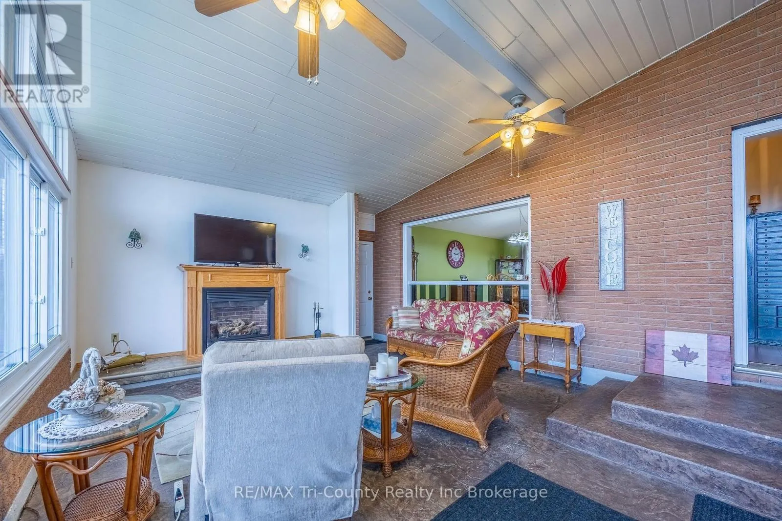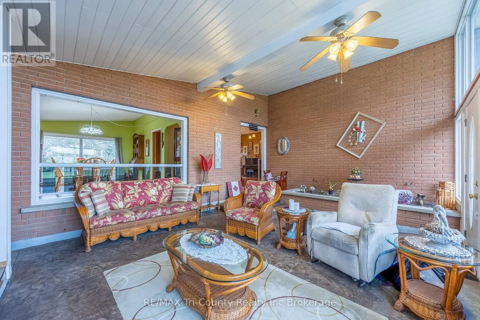Cross Streets: Simcoe Street. ** Directions: Broadway St S; turn left onto Oxford St (turns onto Simcoe St); turn left onto Mall Rd. Welcome to 124687 Mall Road. Located in a desirable area on the outskirts of Tillsonburg, this charming brick bungalow offers the perfect blend of convenience and privacy. Set on a spacious1/2 acre lot and backing onto open fields behind the cedars, you'll enjoy peaceful views right from your backyard. Situated behind the Norfolk Mall and along a bus route, the location is ideal for easy access to amenities. This home features 3 bedrooms and a functional layout highlighted by a large 3-season sunroom located at the front entrance an inviting space to relax and welcome guests. The finished rec room provides additional living and entertaining space. The property is serviced by municipal water, septic system. Additional features include an exterior electrical hookup at the rear ready for a hot tub, hydro in the shed, and a well in the backyard however, it has not been used by the Seller and its condition is unknown. (id:27476)