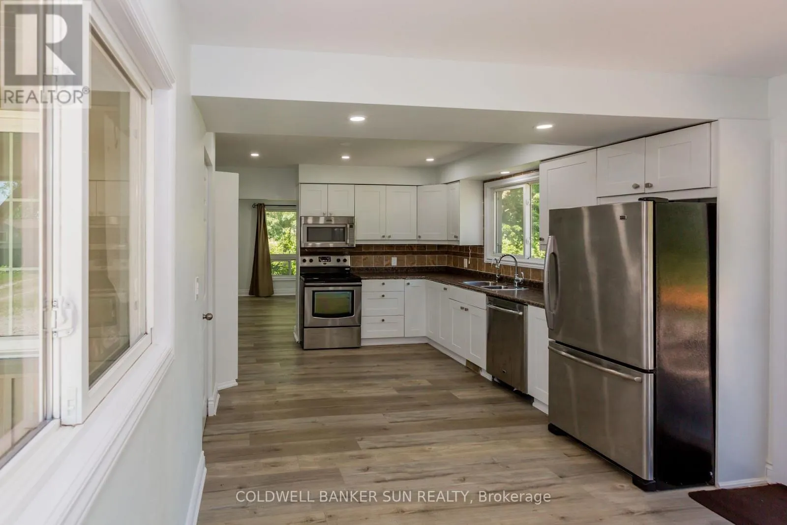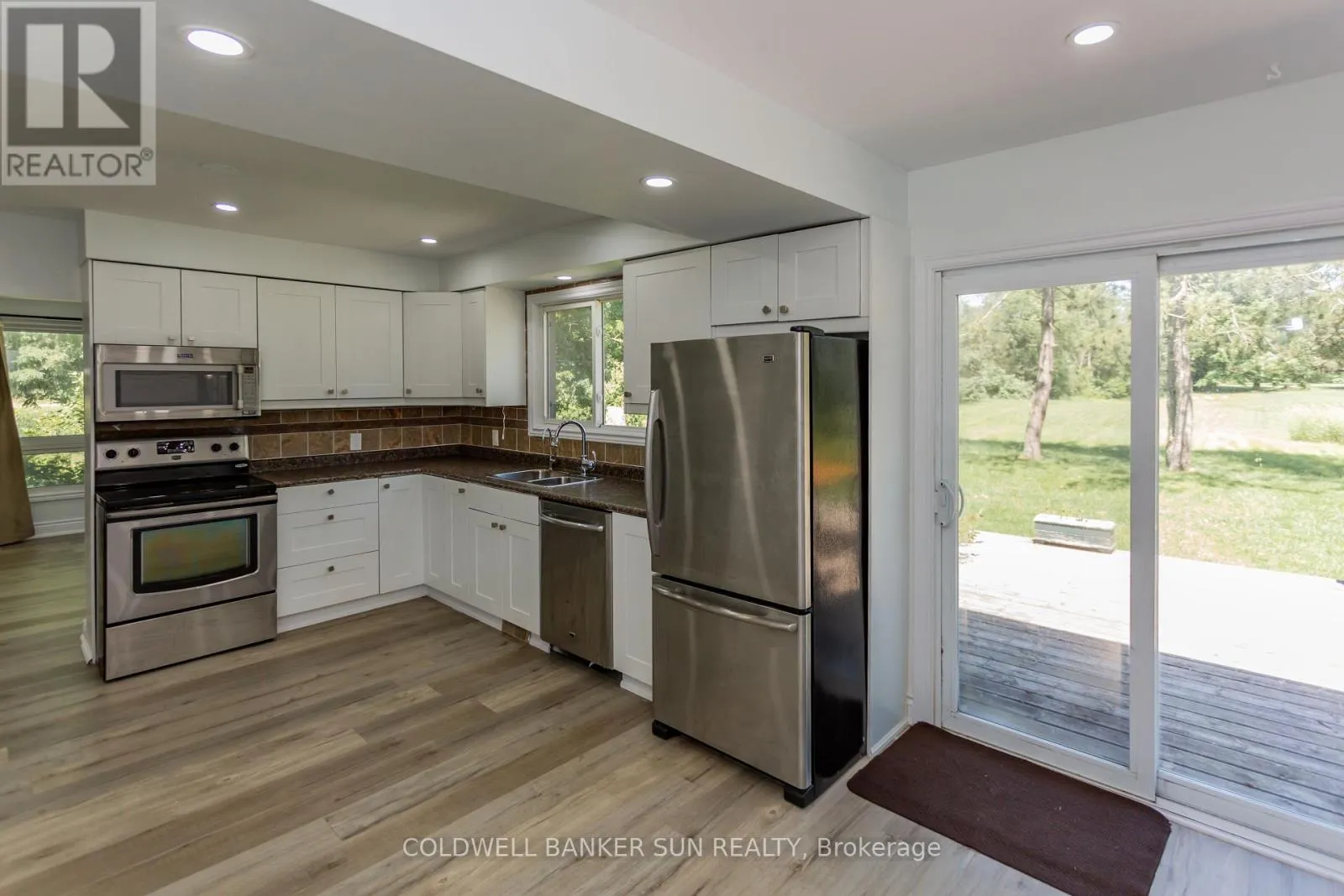 Cross Streets: Blandford Rd. ** Directions: OXFORD RD 2 AND BLANDFORD RD. Don't miss out on this stunning 2 bedroom Bungalow situated on a sprawling 3 plus acre lot in the desirable Woodstock area. This charming home is conveniently located near Hwy 401 and the Toyota plant, making it an ideal location for those who value convenience and accessibility. The property boasts many recent upgrades, including new vinyl flooring, fresh paint, an updated kitchen with S/S appliances, unlimited pot lights throughout. This turnkey property is perfect for those looking for a move-in ready home. walk out to deck overlooking 100's of feet of land and bush. The out building was built with storage containers and wood. (id:27476)