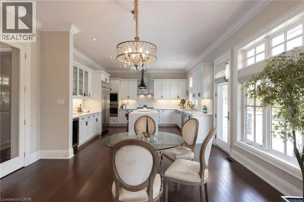 Lakeshore Road West & Lambert Common Elegant lakeside living in SW Oakville. Welcome to 21 Lambert Common! Tremendous opportunity to own a custom-built executive home by the water on a private road in the highly sought-after & exclusive community of Edgewater Estates. Just a stones throw away from the highly esteemed Appleby College. Enjoy the peace of mind that comes with an overnight neighbourhood security patrol. Discover over 6,700 sq.f t. of refined living space in this updated residence. Step into the grand foyer feat. 20' ceilings & heated porcelain floors that set the tone for this exceptional home. The formal LIV & DIN rooms showcase 10' tray ceilings, elegant wall paneling & moldings, while oversized windows bathe these spaces in natural light. The chef-inspired kitchen boasts premium Wolf B/I appliances & stovetop, complemented by a generous island and servery. Enjoy casual meals in the breakfast area w/ a W/O to a stone patio. The open, bright & spacious great room is surrounded by LRG windows, centers around a gas fireplace & flows seamlessly to an office w/ cathedral ceiling. Step down into the remarkable glassed-in sunroom - perfect for those special morning coffee moments w/ loved ones. Surround yourself in natures beauty & simply enjoy. A powder room, mudroom w/ separate entrance & laundry area (garage access) add convenience to the main floor plan. Upstairs, the primary impresses w/ 12 ceilings, a gas fireplace, LRG W/I closet & 5PC ensuite feat. a steam shower, soaker tub & heated floors. 3 additional bedrooms, each with W/I closets & private or shared ensuite privileges complete this floor. The lower level with W/O to rear yard offers a recreation area, fireplace feature wall, exercise room, games area w/wet bar, 2nd laundry, den, powder room, bathroom and 5th bedroom w/ ensuite.The backyard retreat includes an outdoor kitchenette, waterfall feature wall & decorative concrete fire bowl. Privacy, security, luxury, quality, beauty & comfort. This is 21 Lambert Common. Luxury Certified (id:27476)