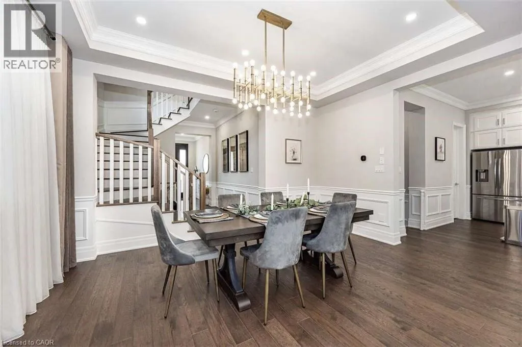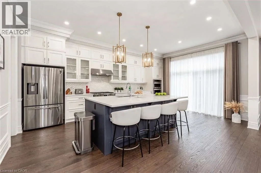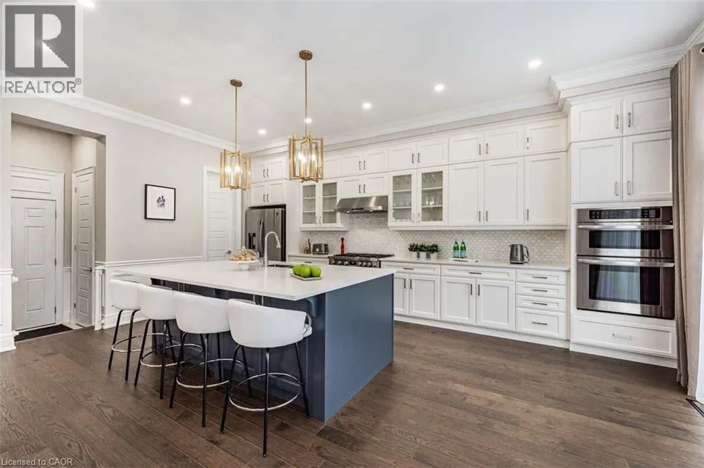 Turn north at the intersection of Dundas St and William Cutmore Boulevard, then turn right at the intersection of William Cutmore and Everest Crescent. For more info on this property, please click the Brochure button below. Welcome To 1437 Everest Crescent, A Luxurious 2-Storey Mattamy Home In Oakvilleâs Upper Joshua Creek. Situated On A Premium Lot Facing A Pond, This Property Offers Quick Access To Hwy 403, 407, QEW, And Nearby Plazas. This Meticulously Maintained Property Has Been Finished Top To Bottom Both Inside And Outside. The Home Features 10' Ceilings On The Main Floor And 9' Ceilings On The Upper Levels And Basement, Creating A Bright, Airy Atmosphere. The Open-Plan Main Floor Includes A Spacious Kitchen With A Large Island, Pantry, Powder Room And Formal Living And Dining Areas. Upstairs, Youâll Find 4 Bedrooms, 3 Bathrooms (2 Ensuites), And A Convenient Laundry Room. The Fully Finished Basement Offers A Home Gym, Family Room W/ Gas Fireplace, Wet Bar, And A Games Room. The Garage Boasts Epoxy Flooring, Slat Walls, And Overhead Storage. The Front Yard Features Extensive Hardscaping With A Natural Stone Porch And Frameless Glass Railings, While The Backyard Is Completely Maintenance-Free With A 3-Season Pergola, Composite Deck, Artificial Turf, And An 8-Burner Grill. Over $500K In Upgrades (Feature Sheet Available). (id:27476)