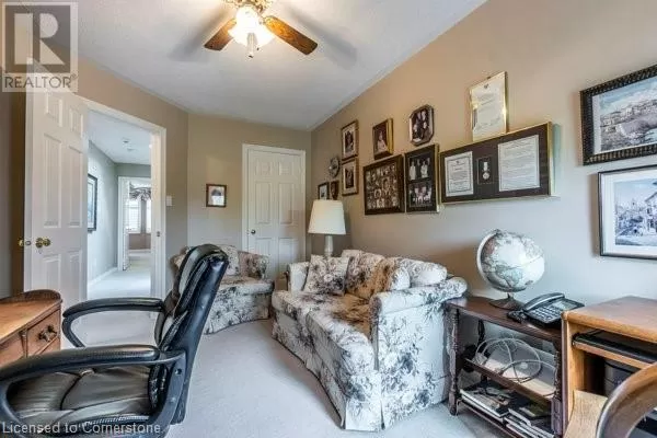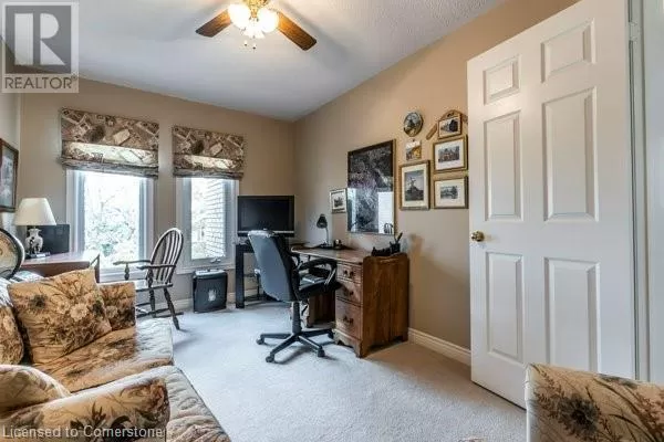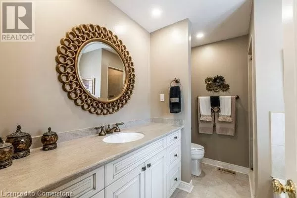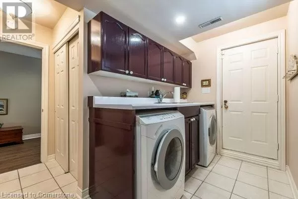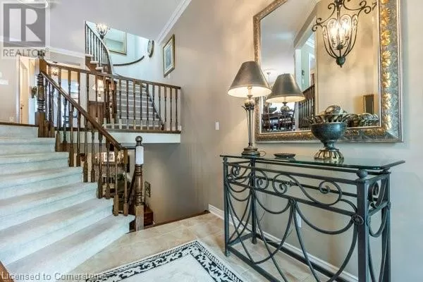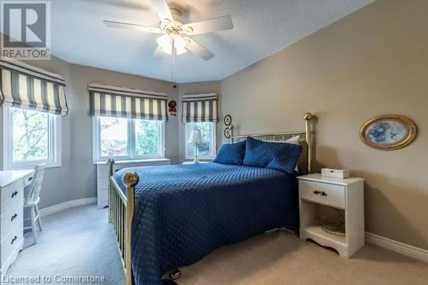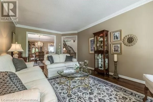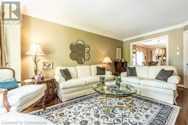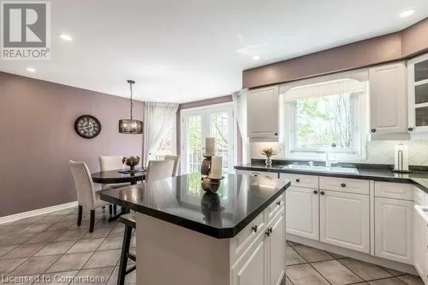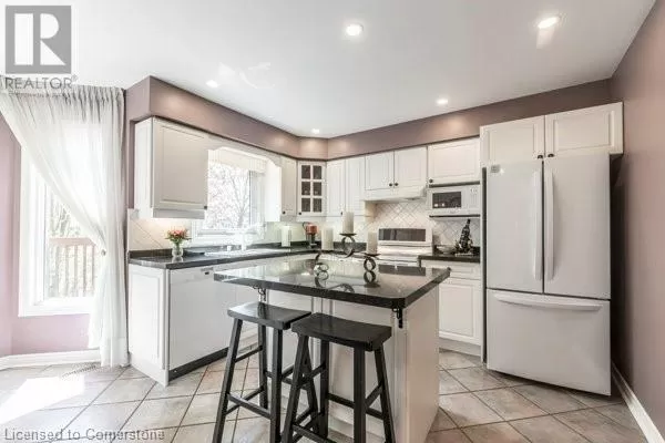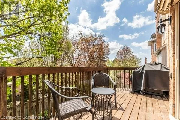 Third Line to Kings College Rd to Blacksmith Lane Desirable 3 storey Mattamy built link home in the coveted community of Glen abbey. Meticulously maintained 3 bedroom, 4 bathroom home offers 2500sq ft of finished living space and a beautifully landscaped lot. Upper level back deck overlooking the lovely yard. Gleaming hardwoods grace the main floor and complements the elegant crown moulding. fabulous large formal living room and separate dining room perfect for gatherings. Bright white kitchen and breakfast area features quartz, granite countertops, breakfast bar, high-end appliances. The fully finished lower level family room boasts loads of natural light and a walkout through French doors to patio. Two piece powder room and laundry room with stainless steel utility sink. Upstairs features a spacious primary bedroom suite with extended sitting area plus two more generously sized bedrooms. The 5 piece ensuite has a glass-enclosed shower, quartz countertops and a jetted soaker tub. Tiled garage floor keeps clean plus single drive for a total of 3 parking spaces. An in-ground sprinkler system. Embrace the elaborate trail system for nature walks or biking. Just minutes to the Glen Abbey Community Centre, Glen abbey Golf Club, top notch schools, shopping and abundance of parks and of course the iconic Monastery Bakery. Easy access to Highway and GO station. Everything you need to live your best upscale suburban life! (id:27476)