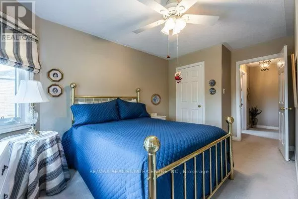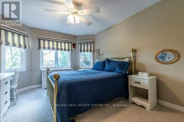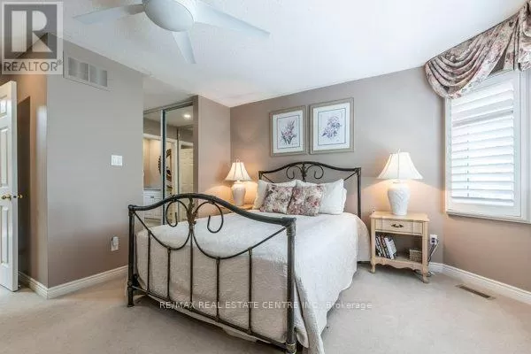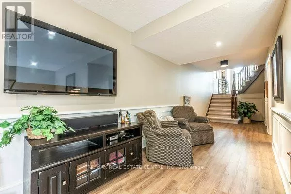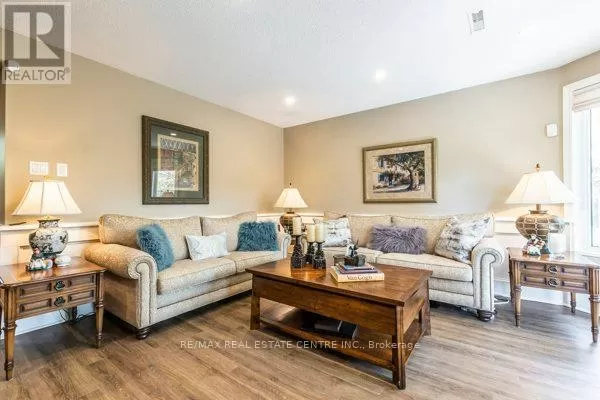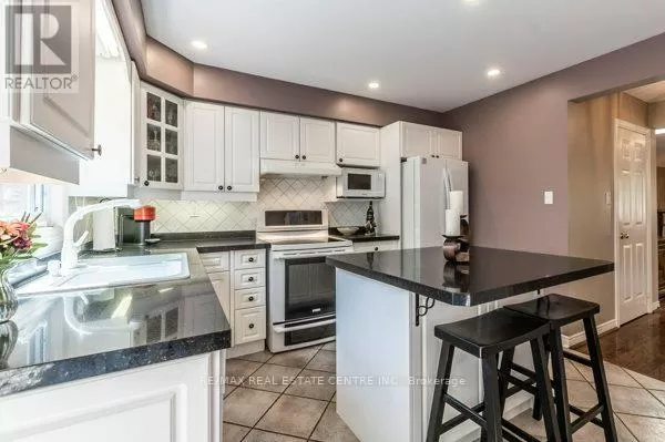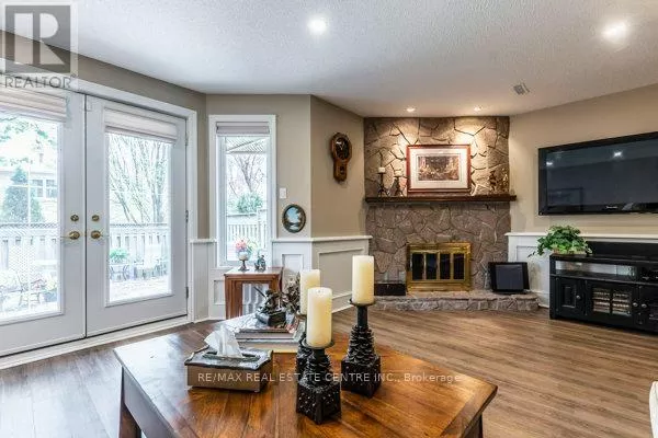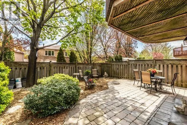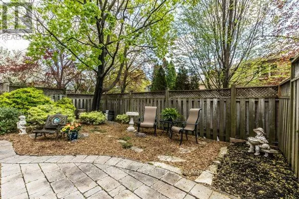 Third Line & Kings College Desirable 3 storey Mattamy built link home in the coveted community of Glen Abbey. Meticulously maintained 3 bedroom, 4 bathroom home offers 2500 sq ft of finished living space. Upper level deck overlooks the lovely backyard. Gleaming hardwoods grace the main floor and complements the elegant crown moulding. Fabulous large formal living room and separate dining room perfect for family or large gatherings. Bright white kitchen cabinetry and breakfast area features quartz, granite countertops, breakfast bar and high-end appliances. Delightful kitchen French doors lead to balcony retreat complete with retractable awning. The fully finished lower level family room boasts loads of natural light with walkout through French doors to patio, two piece powder room and laundry room with stainless steel utility sink. Upstairs features a spacious primary bedroom suite with extended sitting area plus two more generously sized bedrooms. The 5 piece ensuite has a glass-enclosed shower, quartz countertops and a jetted soaker tub. Single car garage with tiled garage floor for easy clean up plus single driveway accommodating 3 parking spaces. Features an in-ground sprinkler system. Many tasteful updates throughout this impeccably maintained home. Enjoy the mature trees and shaded backyard or embrace the elaborate trail system for nature walks and biking. Just minutes to the Glen Abbey Community Centre, Glen abbey Golf Club, top notch schools, shopping and abundance of parks and of course the iconic Monastery Bakery. Easy access to Highway and GO station. Everything you need to live your best upscale suburban life! (id:27476)
