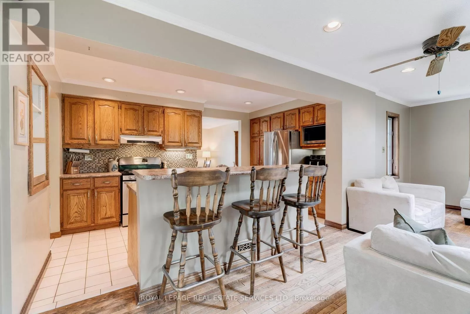 Cross Streets: Duncan & Avon. ** Directions: Cornwall/Maple Grove/Duncan/Avon. Fabulous opportunity in highly-desirable Morrison area of SouthEast Oakville. Situated on a 9,009 sqft lot on a gorgeous street, this bungalow is ideal for renovation or building your dream home. The irregular shaped lot is approximately 107.85ft x 43.20ft x 24.08ft x 125.20ft x 97.33ft, with RL3-0 zoning. The main floor has a formal dining room, kitchen with centre island and breakfast bar that opens to the spacious living room with gas fireplace and walk-out to the back deck. There are also 3 bedrooms on this level (one is currently used as a closet) all with hardwood floors, and a 4pc main bath. The basement is finished with a rec room, bar, 2 bedrooms, 3pc bath, laundry room and large utility room. There is a detached garage and parking for 4 cars in the double driveway. The backyard has a wood deck and natural gas hookup for the BBQ. Don't miss your chance to live in one of Oakville's most sought-after neighbourhoods close to top-rated schools, parks, Lake Ontario and more. (id:27476)
