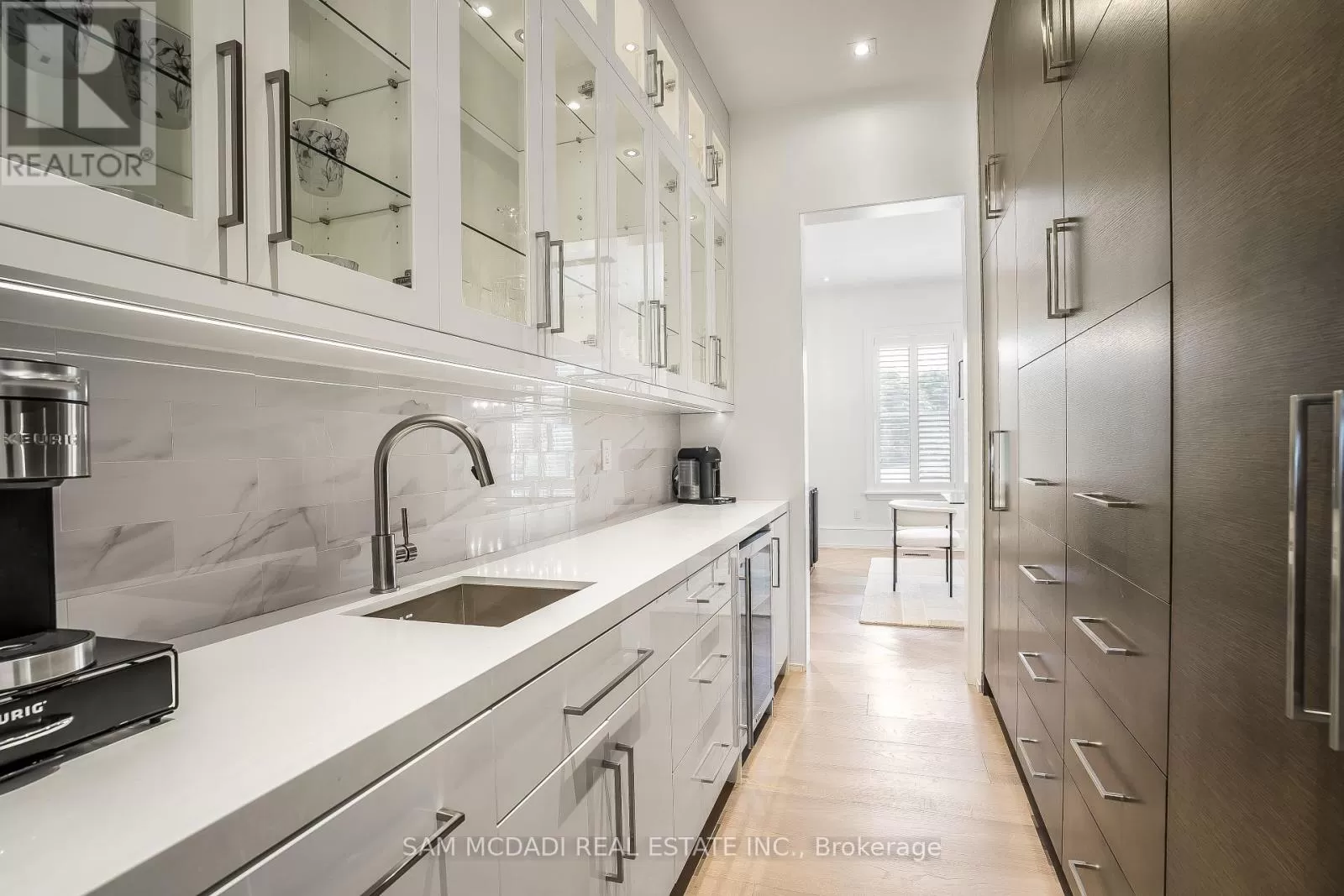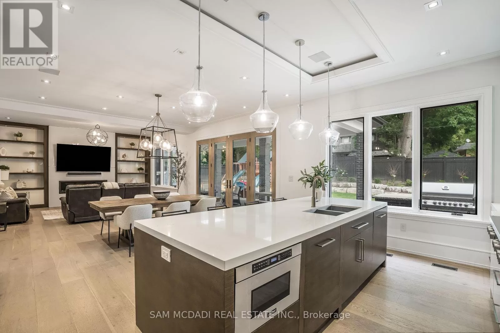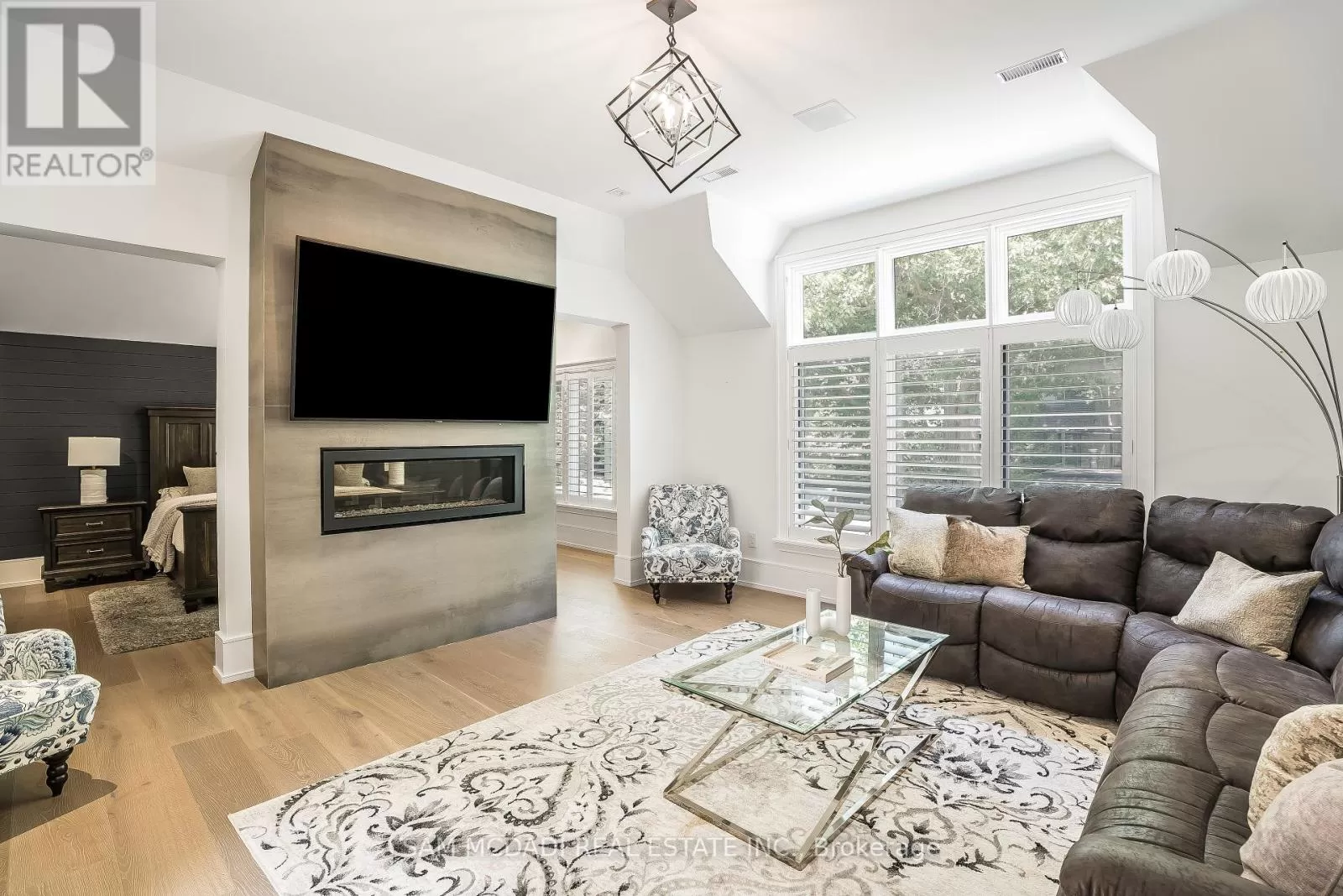 Cross Streets: Morrison Rd / Lakeshore Rd E. ** Directions: Take Ford Dr/Halton Regional Rd 13 and Cornwall Rd to Wedgewood Dr. Welcome to an approx. 7,500 sq ft of exceptional living in Southeast Oakville! Set on a professionally landscaped almost half-acre lot in the prestigious Eastlake, this custom Hightower-built estate offers thoughtfully designed luxurious space. The crown jewel of the home is a newly upgraded, million-dollar backyard oasis. Including a 600 sq.ft covered patio with built-in kitchen with a Napoleon BBQ, a gas fireplace, a saltwater pool with spillover spa, a dedicated play area, and lush perennial gardens. Retreat to an 800 sq ft primary retreat, delivering privacy and true wow factor with vaulted ceilings, two-sided fireplace, wet bar, sitting area, boutique walk-in closet, and a spa-like ensuite featuring heated floors, a soaker tub, and a glass shower. The main floor is designed for both grand entertaining and everyday comfort with natural light pouring through oversized windows. Interior features include 10-foot ceilings, chevron-patterned wide plank hardwood, LED pot lights, built-in speakers, and designer chandeliers. The chef's kitchen is finished in dual-tone lacquered cabinetry with Caesarstone counters, premium Dacor appliances, a bright breakfast area, and a butlers servery that connects to the sophisticated dining room. A sleek linear fireplace anchors the family room. The home office stands out with 15-foot cathedral ceilings, a fireplace, custom built-ins, and a walkout to the gardens. Above, you'll find three generously sized bedrooms, each with radiant heated ensuite baths and custom closets. Downstairs, the walk-up lower level is built to impress with a full wet bar, wine cellar, large rec room, two guest bedrooms, a gym with cushioned flooring, cedar infrared sauna, and a new two-tiered home theatre. Additional features include a Control4 smart home system, a two-car garage with car lift potential, and a location just minutes from top-rated public and private schools, lakefront parks, downtown Oakville, and QEW access for a seamless Toronto commute. (id:27476)