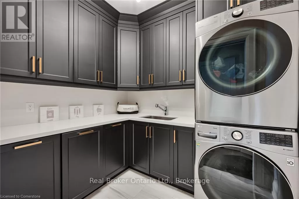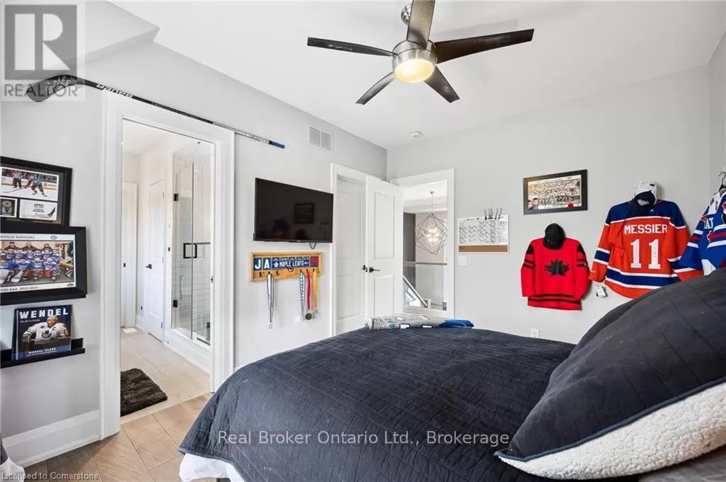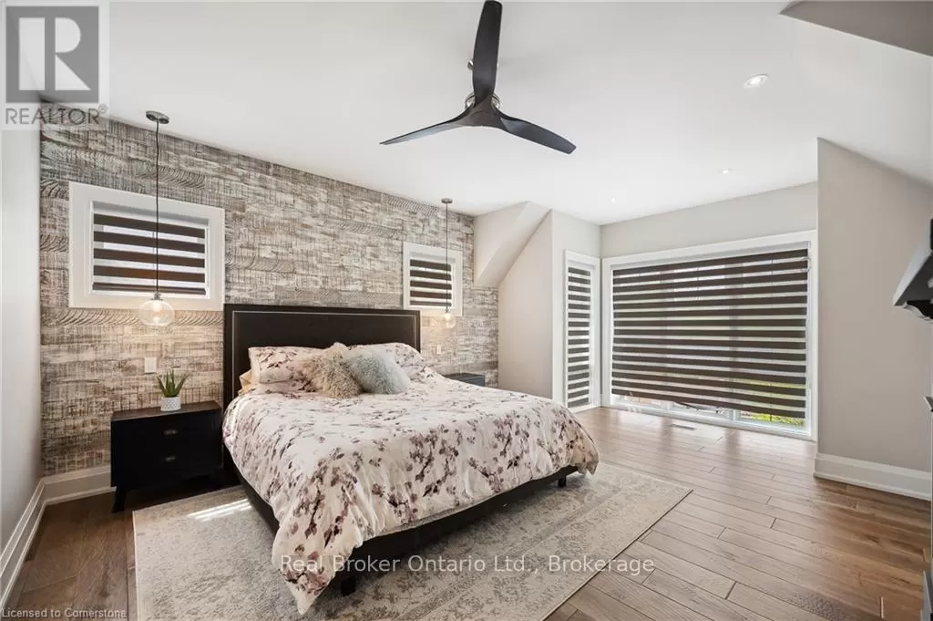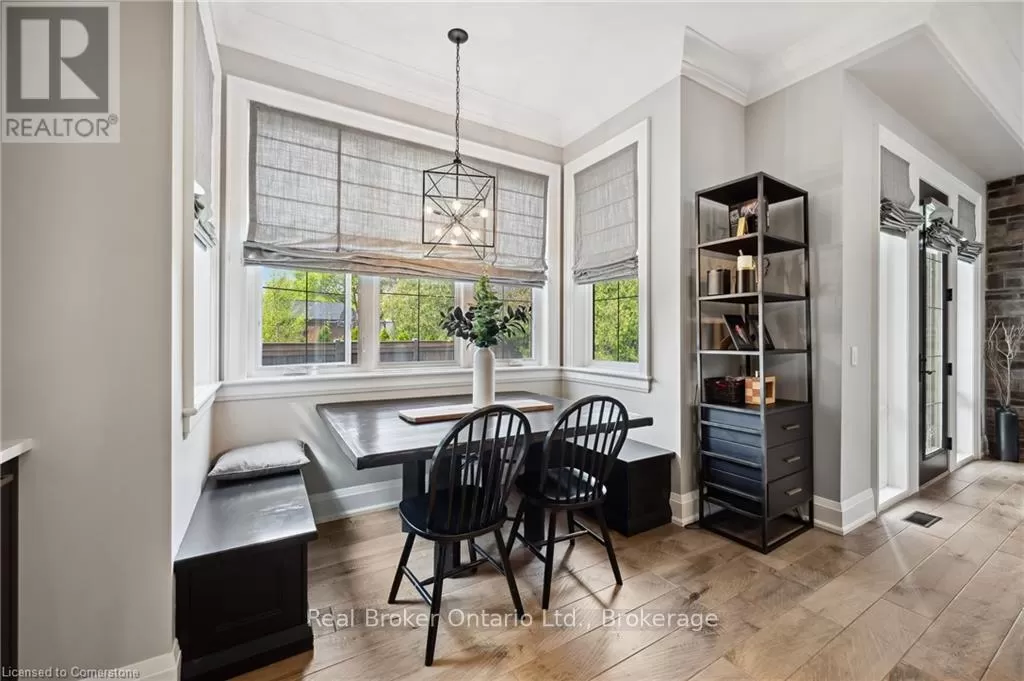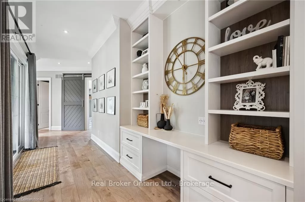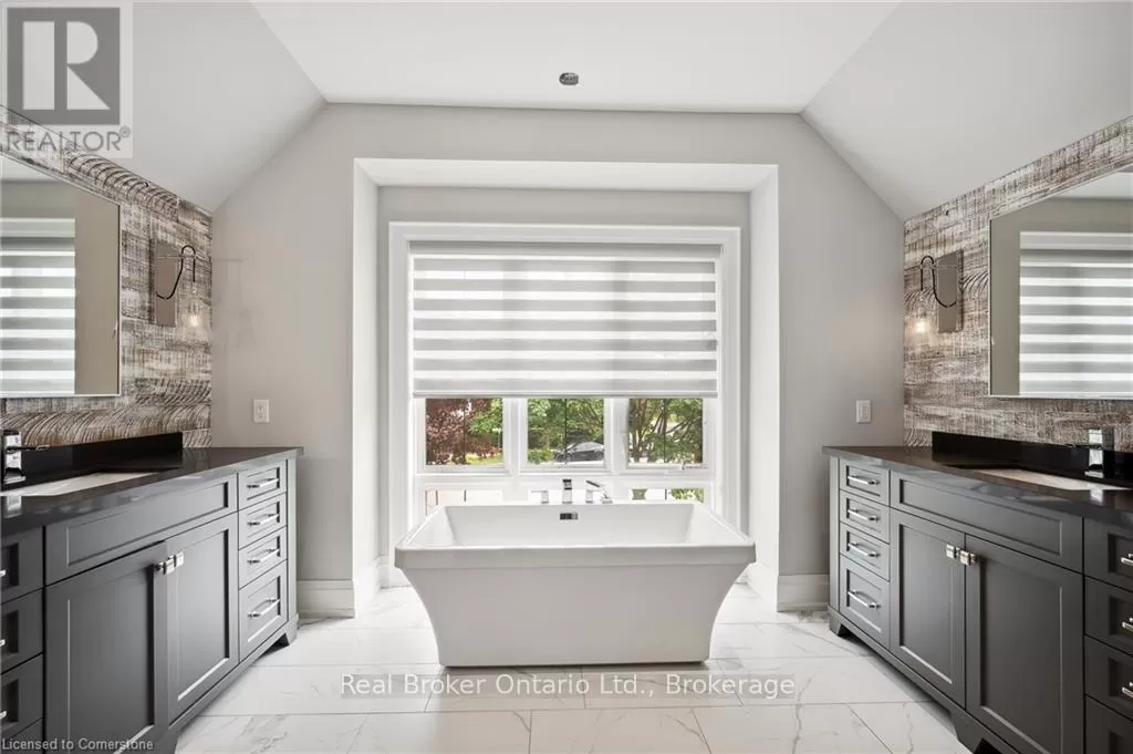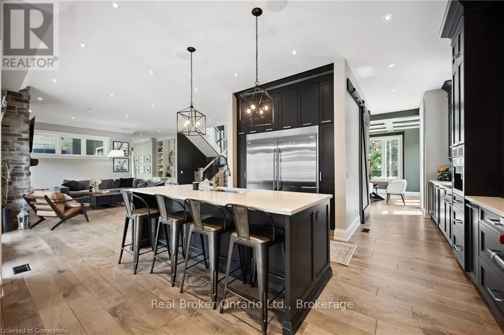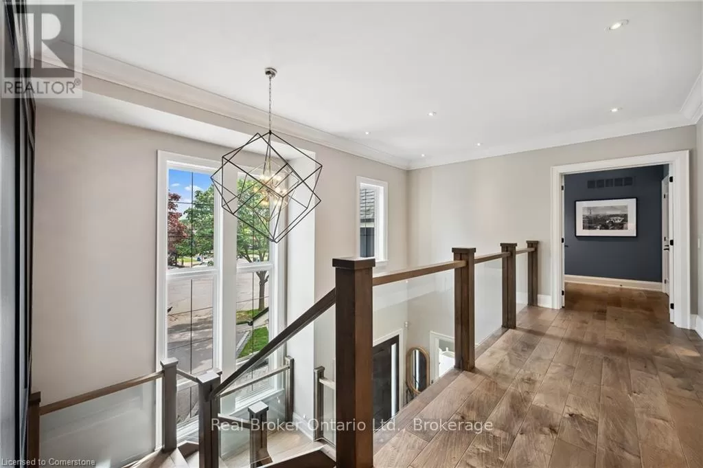 Rebecca to Lees Lane to Wood Place Welcome to 1247 Wood Place a stunning custom home. Architects Willmott & Strickland designed this incredible home. Nestled on a premium pie-shaped lot, this luxurious 2-storey detached home offers approx. 3,879 sq. ft. above grade, plus a full (partially finished) basement with 2 additional bedrooms and a rec room. The main level impresses with a grand 2-storey foyer, hardwood floors, a gourmet kitchen with quartz counters, high-end appliances (Wolf, Miele, Electrolux, KitchenAid), butlers pantry, and built-in wine fridge. The living room features floor-to-ceiling windows, gas fireplace, and walkout to a professionally landscaped backyard with covered lounge, gas fireplace, hot tub, and concrete deck. Upstairs, the primary suite offers 2 walk-in closets, 5-pc ensuite with heated floors, gas fireplace, and French doors. Three additional bedrooms include a Jack-and-Jill bath and a private ensuite. A main-floor bedroom doubles as a home office with custom cabinetry. The finished basement includes a 3-pc bath, media-ready rec room with built-in sound system, and full home automation infrastructure. Additional features: double garage with 2 Tesla chargers, 200-amp service, Vantage home automation, ELK security with GSM backup, Generac generator switch, VanEE air exchange, Ubiquity Wi-Fi system (6 pods), central vac, and 175 LED pot lights. Located on a quiet street with exceptional curb appeal, this home is the perfect blend of modern design, comfort, and technology. Overall, 1247 Wood Place offers a blend of peaceful residential living with convenient access to several top schools, recreational facilities, shopping centers, and transportation, making it a highly desirable location in Oakville. (id:27476)