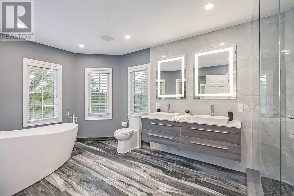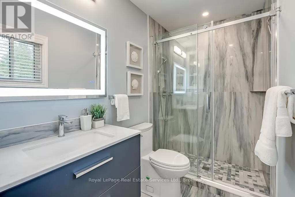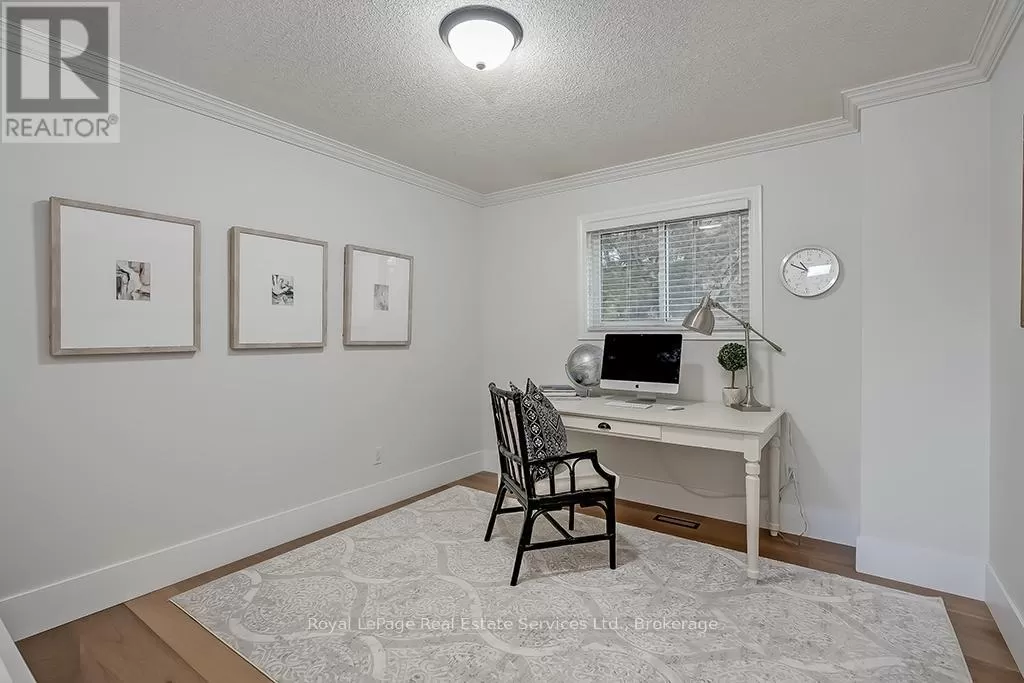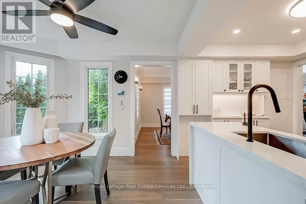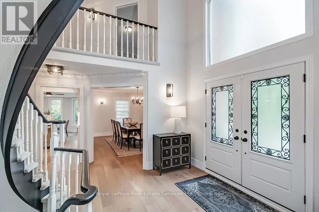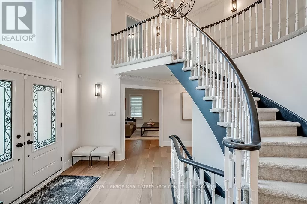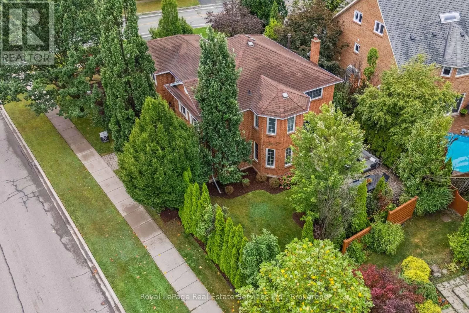 Cross Streets: Eighth Line & Upper Middle Rd E. ** Directions: Eighth Line to Upper Middle Rd E to Grosvenor Street. Beautiful Executive Colonial Residence Recently Upgraded Offering over 4,600 sq ft of Refined Living Space on a Stunning Corner Lot. Meticulously maintained and thoughtfully upgraded, this home is the epitome of comfort and elegance. Step into the grand foyer with soaring 16-foot ceilings and be instantly impressed. The main level features expansive principal rooms, including a formal living room with a cozy gas fireplace and a sophisticated dining room with direct access to the renovated chefs kitchen. The kitchen is a showstopper with custom white cabinetry, quartz countertops and backsplash, a breakfast bar, and high-end stainless-steel appliances. The adjoining breakfast area opens to the backyard patio, ideal for entertaining. Unwind in the spacious great room with a wood-burning fireplace and oversized window that floods the space with natural light. The main floor also includes a private home office, renovated powder room, and a convenient laundry room with access to the double garage. Upstairs, retreat to the luxurious primary suite featuring double door entry, dual walk-in closets, and a spa-inspired 5-piece ensuite with heated floors, a glass-enclosed shower, double vanity, and a relaxing soaker tub. Three additional generously sized bedrooms and a renovated 4-piece bath complete the second level. The fully finished basement offers incredible in-law potential with a large recreation room (complete with a gas fireplace), a full second kitchen, an exercise room, a spacious 5th bedroom, and a 4-piece bath. Enjoy beautifully landscaped front and backyards with interlocking stone walkways, a large patio, and lush green space perfect for relaxing or entertaining. Located close to parks, trails, a rec centre, library, shopping, and just a 5-minute walk to one of Ontarios top-ranked high schools. This is your opportunity to own an exceptional home in a premier location. Dont miss out on this is executive living at its finest! (id:27476)