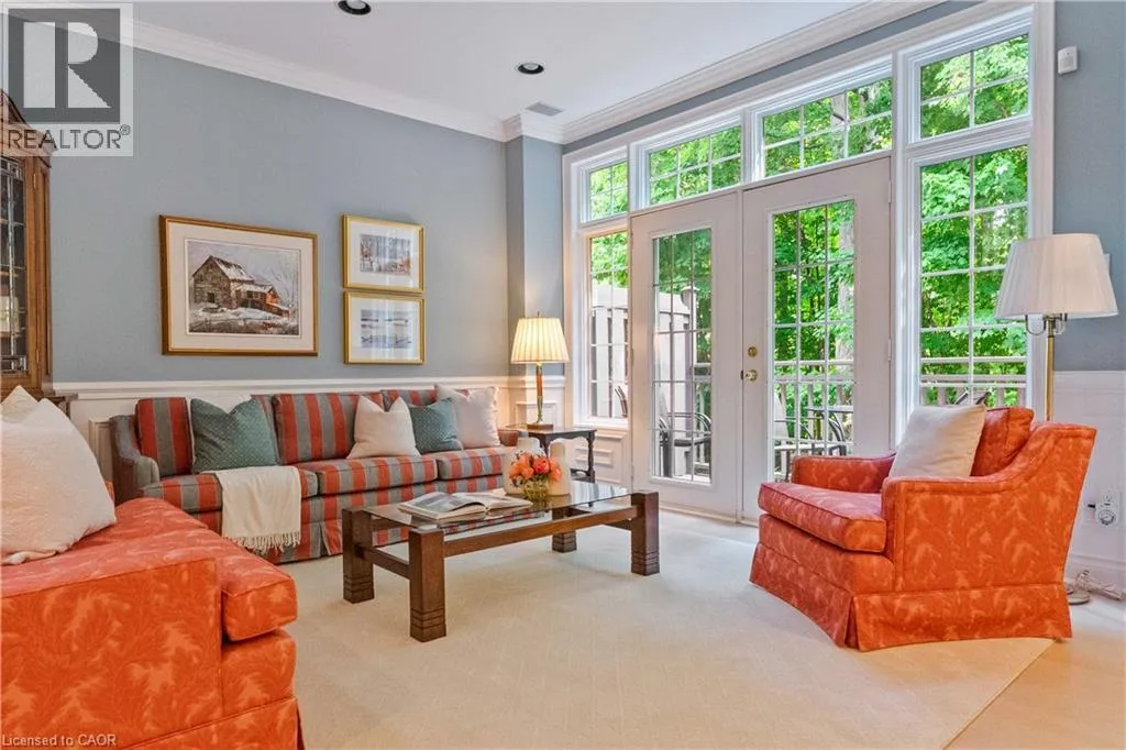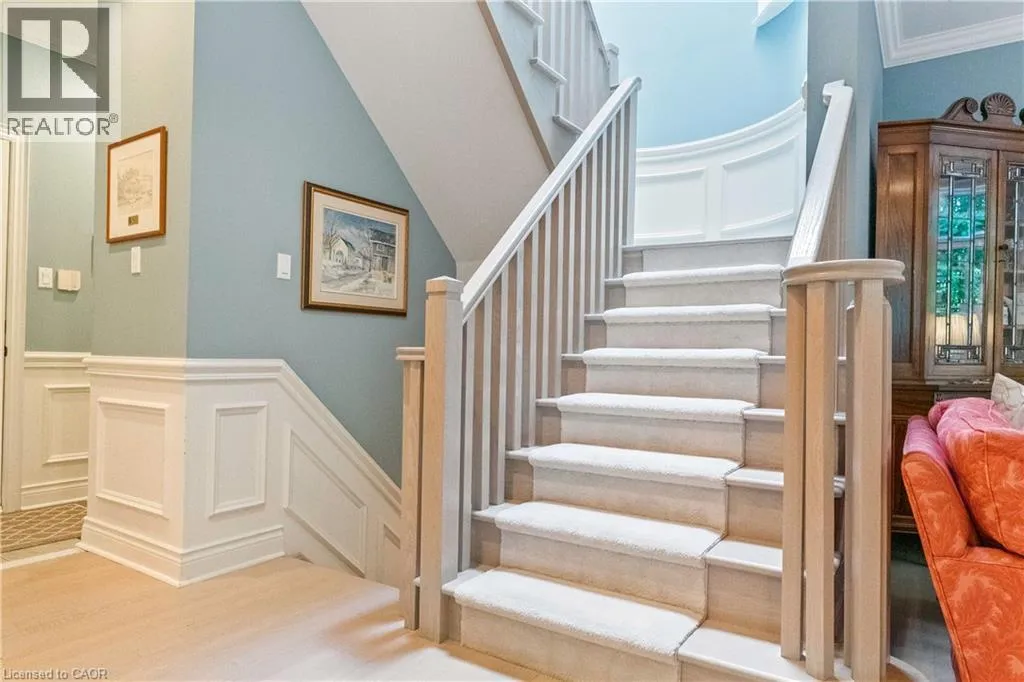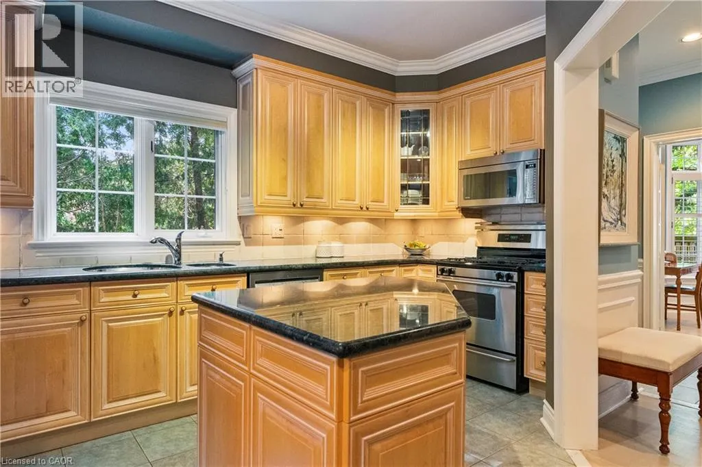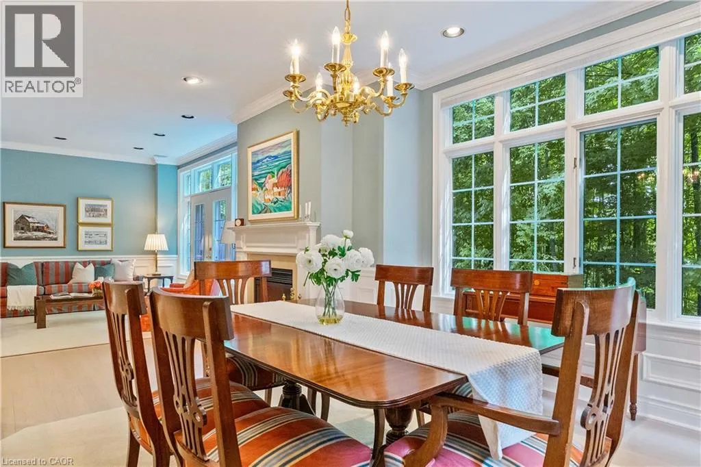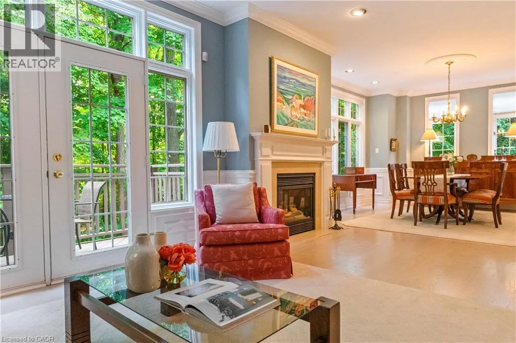 WESTOAK TR/ RIDGE LNDG/ SHELTRD OAK Discover this rare gem in the exclusive West Oak Trails community, where only twenty-one fortunate homeowners get to call this secluded oasis home. This executive end unit townhome offers a perfect blend of privacy and sophistication, backing directly onto the trails of tranquil Sixteen Mile Creek. With four spacious bedrooms and four plus 1 bathrooms spread across a total of 3,716 square feet of thoughtfully designed living space, including a convenient elevator ensuring effortless access to all levels. This home welcomes you with nine-foot ceilings and an open concept main floor with serene treed views creating a peaceful backdrop throughout. Step onto the balcony off the living room and breathe in the serenity of your private backyard. Upstairs, the generous primary suite features a cozy gas fireplace, five-piece ensuite, and walk-in closet. Three additional bedrooms offer comfort and convenience, two with access to ensuite bathrooms. The fourth is set as an office with built-ins perfect for those who work from home. The walk-out basement leads to your personal outdoor haven, complete with a stone patio perfect for entertaining or quiet morning coffee moments. The two-car garage and additional driveway parking ensure practicality meets luxury. This lovingly maintained home is move-in ready or add your own personal touch to transform it into something truly extraordinary. With exceptional privacy, it's an opportunity that rarely presents itself in this sought-after community. Your chance to own a piece of tranquil luxury is here. (id:27476)